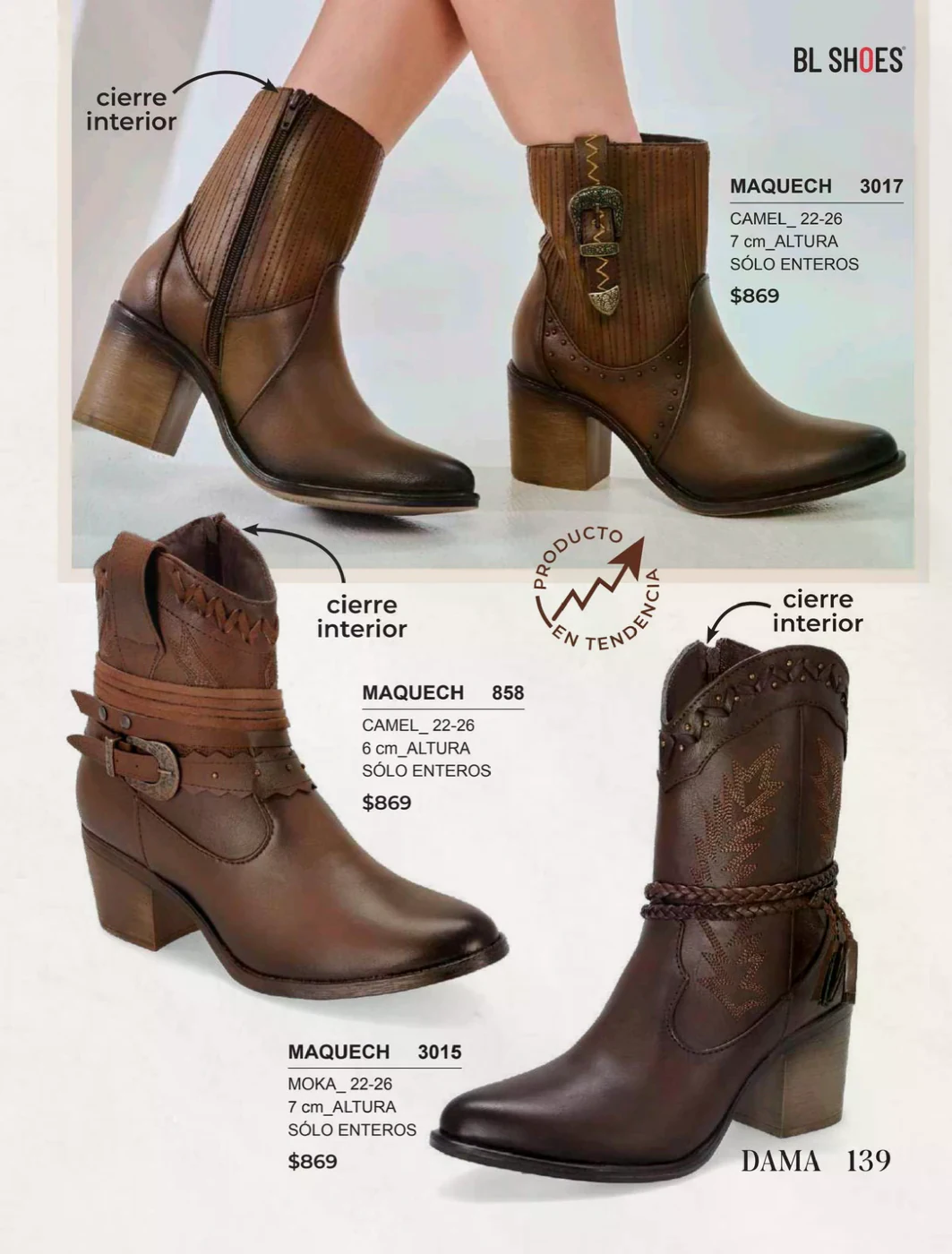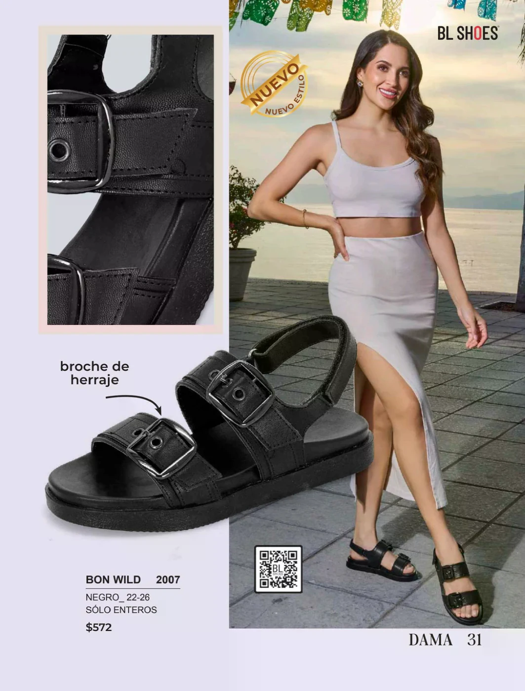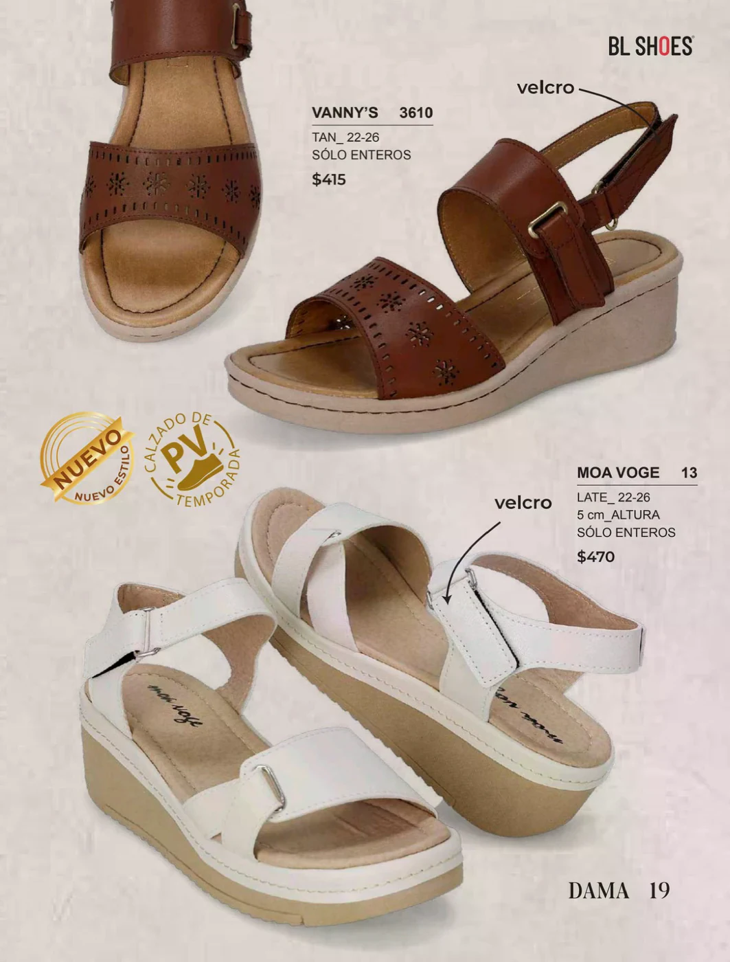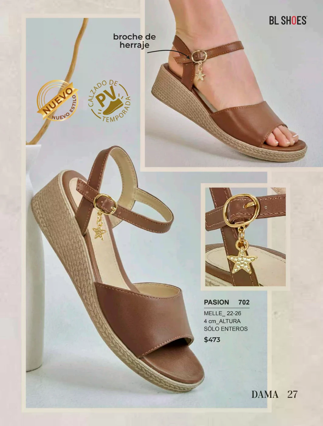 Consulta desde la página de este catálogo, y pide alguno de los variados modelos que te ofrece BL Shoes, elaborados con una piel transpirable y con detalles muy femeninos, como el modelo ETNIA 807.