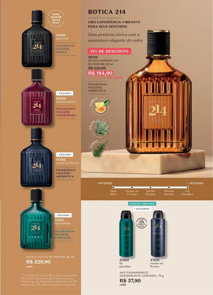 Ser fresco é sempre bom, mas com os aromas que a revista ciclo 14 boticário 2025 tem para lhe oferecer agora é ainda melhor. Sinta-se capaz de tudo, e mais confiante do que nunca cada vez que você sair, onde quer que esteja, oBoticario o acompanha fazendo sentir sua presença graças a nossas incríveis fragrâncias.