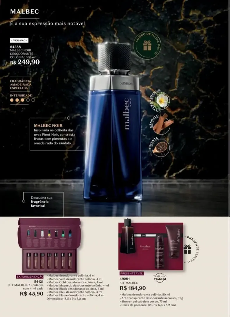 • Colónia de desodorante Malbec Bleu. 100ml.