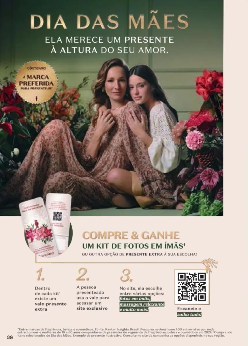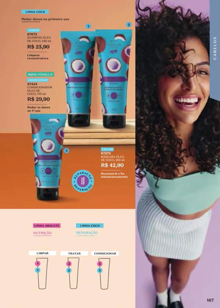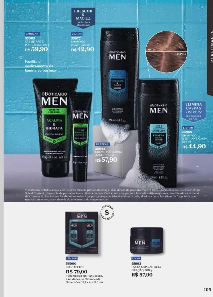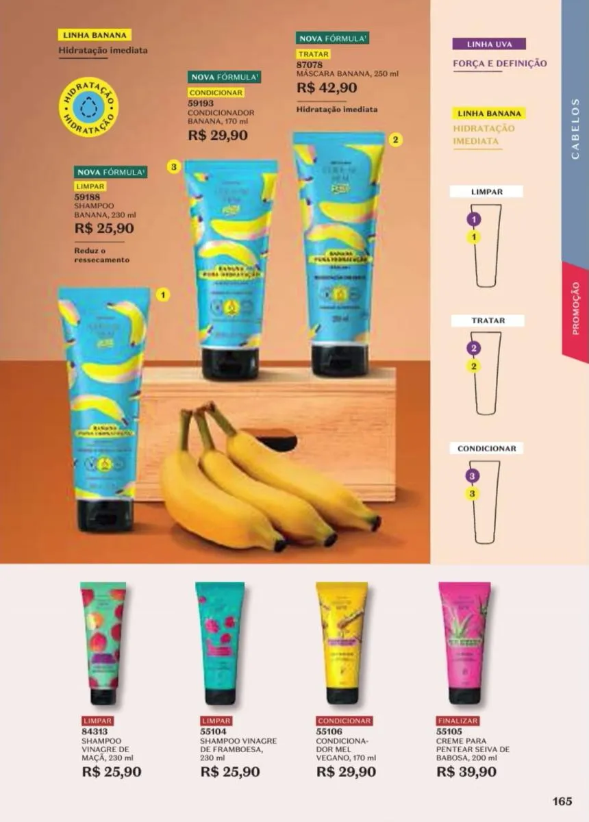 Na revista ciclo 5 boticário 2026 Brasil você encontrará disponível uma seção de produtos para uso diário ideal para a manutenção e regeneração do couro cabeludo danificado, elimina o frizz e restaura o fio de cabelo das primeiras aplicações. Escolha a que melhor se adapta às suas necessidades, encontre-a na páginas.