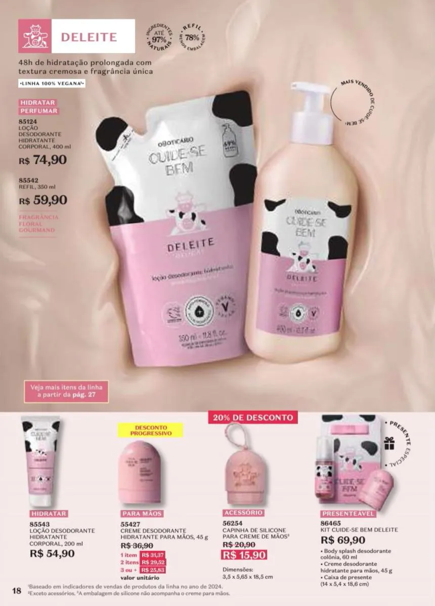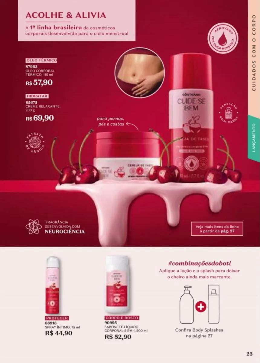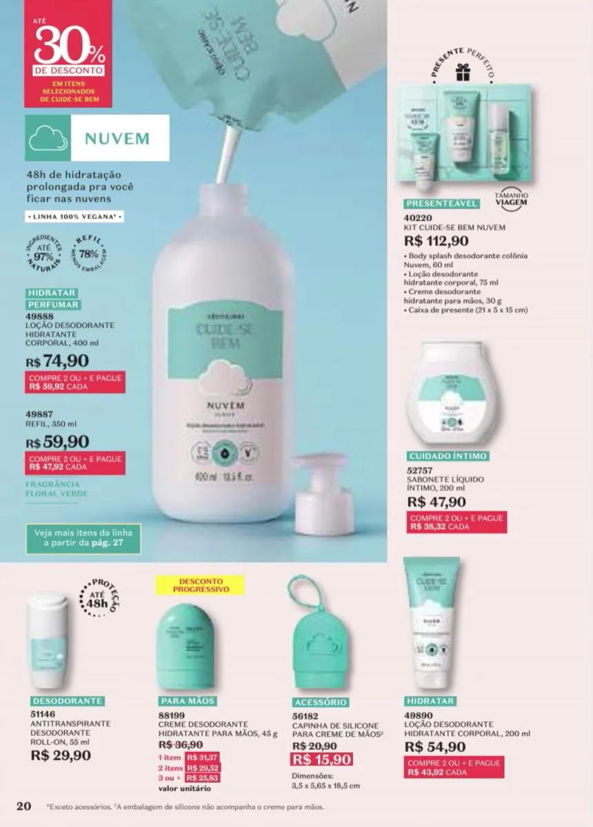 A nova fórmula com a qual os produtos exclusivos da linha Cuide-se Bem são elaborados trazem brilho e dão nova vida aos seus cabelos, encontre-os disponíveis no ciclo 5 Boticário 2026 pdf. Acrescente-os à sua rotina de manutenção e você verá que obterá resultados maravilhosos ao menor preço com um desconto de 20%.