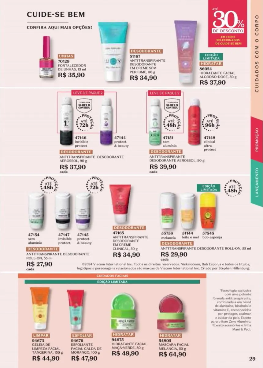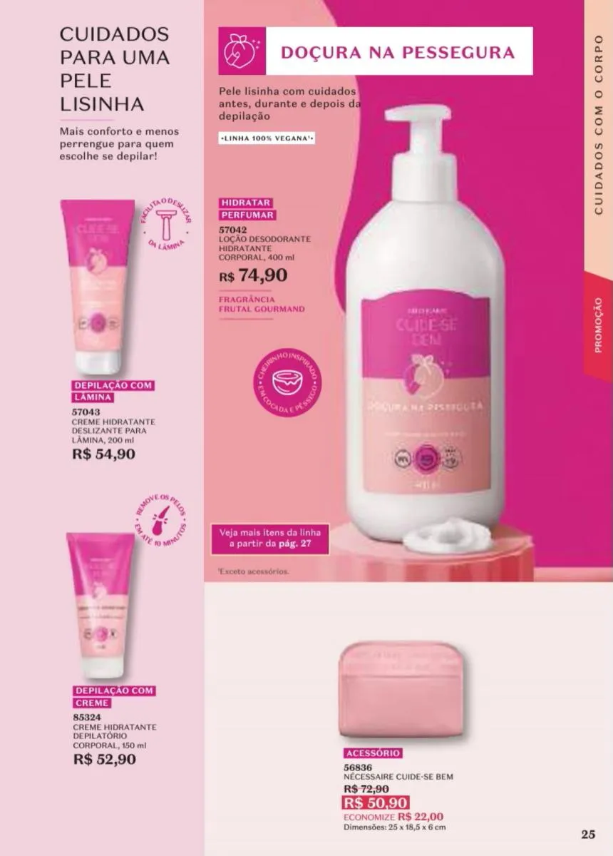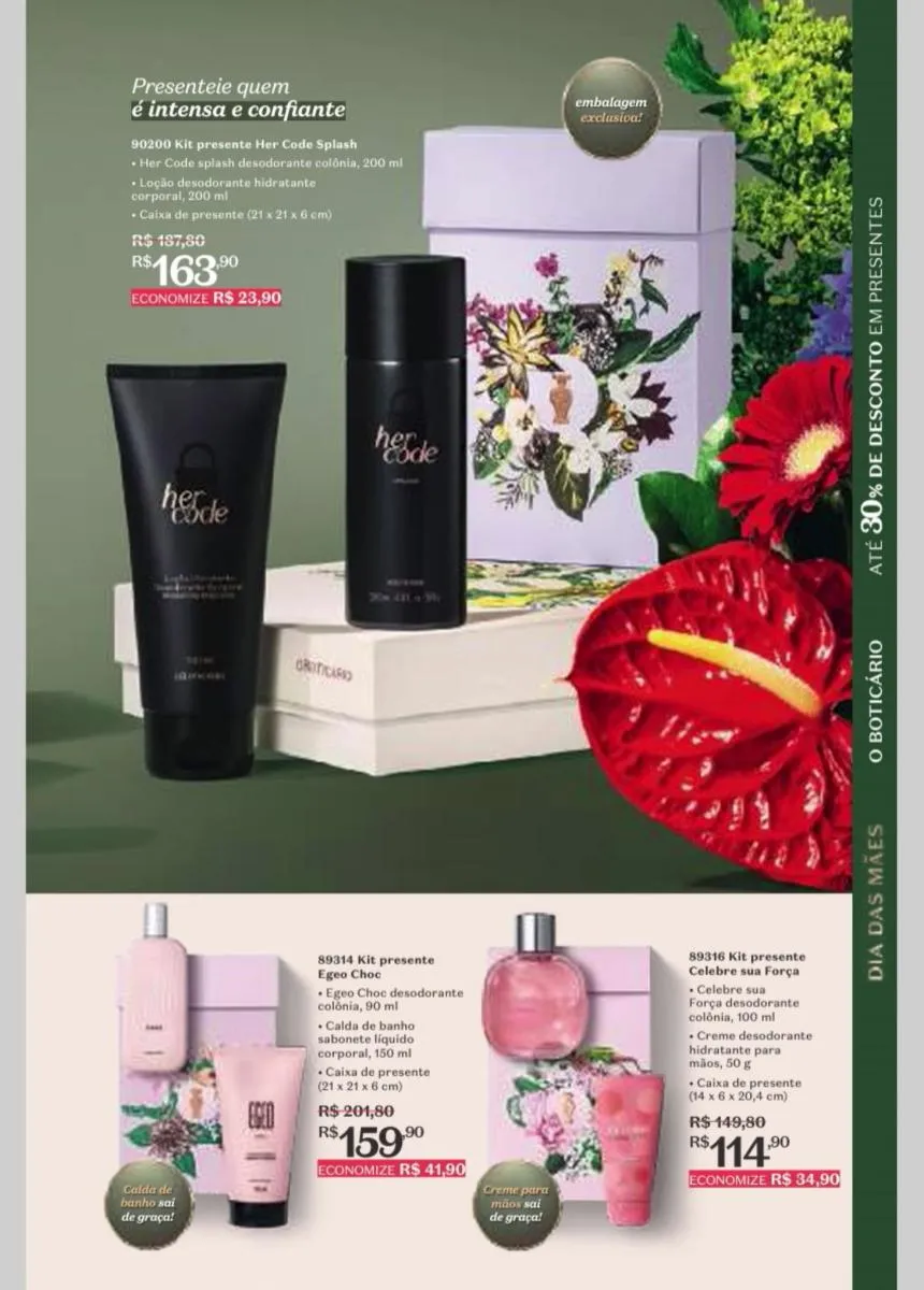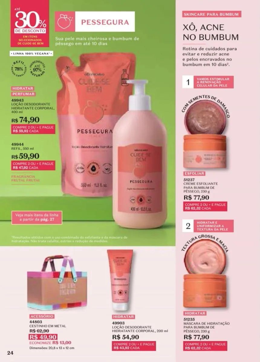 A nova fórmula com a qual os produtos exclusivos da linha Cuide-se Bem são elaborados trazem brilho e dão nova vida aos seus cabelos, encontre-os disponíveis no ciclo 5 Boticário 2026 pdf. Acrescente-os à sua rotina de manutenção e você verá que obterá resultados maravilhosos ao menor preço com um desconto de 20%.