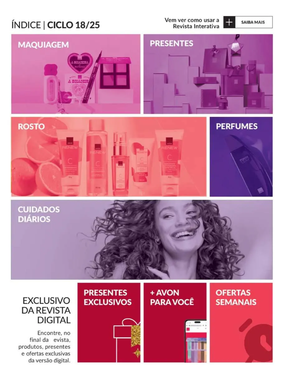 A contagem regressiva começa no revista Avon ciclo 18 2025 PDF Brasil. Nesta temporada você encontrará tudo o que precisa para entrar no mundo da maquiagem, assim como dicas e truques que você não pode perder. Vamos lá, o que você está esperando para usar uma maquiagem digna de uma mulher com seu próprio estilo.