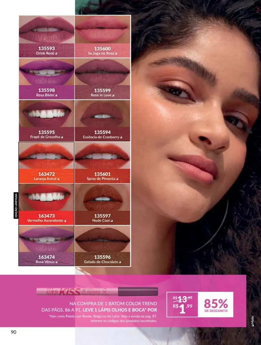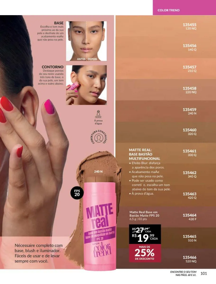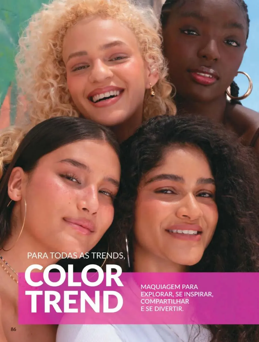 Gerar furor e desejo com a linha de cosméticos Color Trend Avon. No revista Avon ciclo 18 Brasil 2025 trazemos novos tons de acordo com a estação; contemple a maravilha de uma maquiagem com um acabamento único para que você possa projetar um estilo deslumbrante.