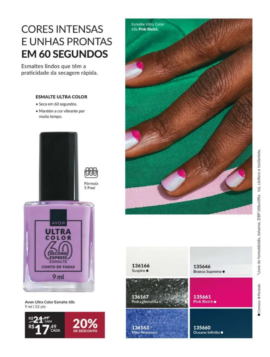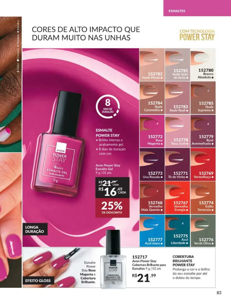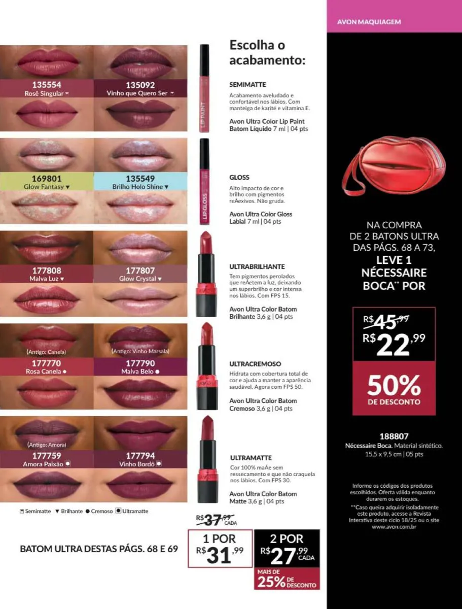 Gerar furor e desejo com a linha de cosméticos Color Trend Avon. No revista Avon ciclo 18 Brasil 2025 trazemos novos tons de acordo com a estação; contemple a maravilha de uma maquiagem com um acabamento único para que você possa projetar um estilo deslumbrante.