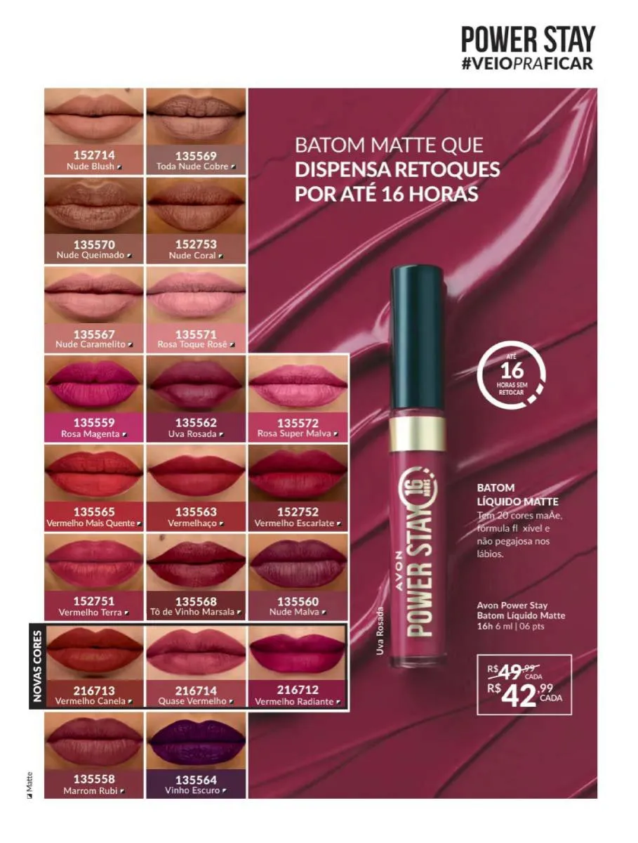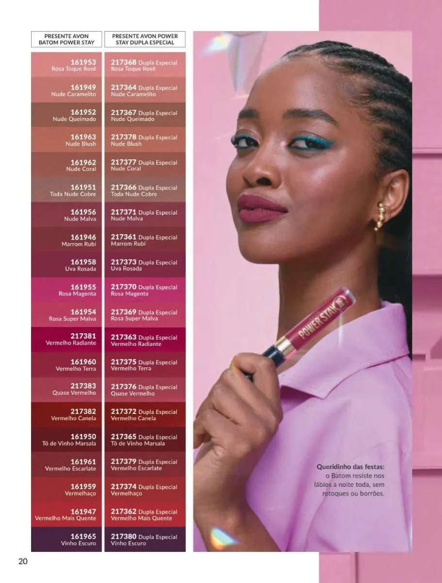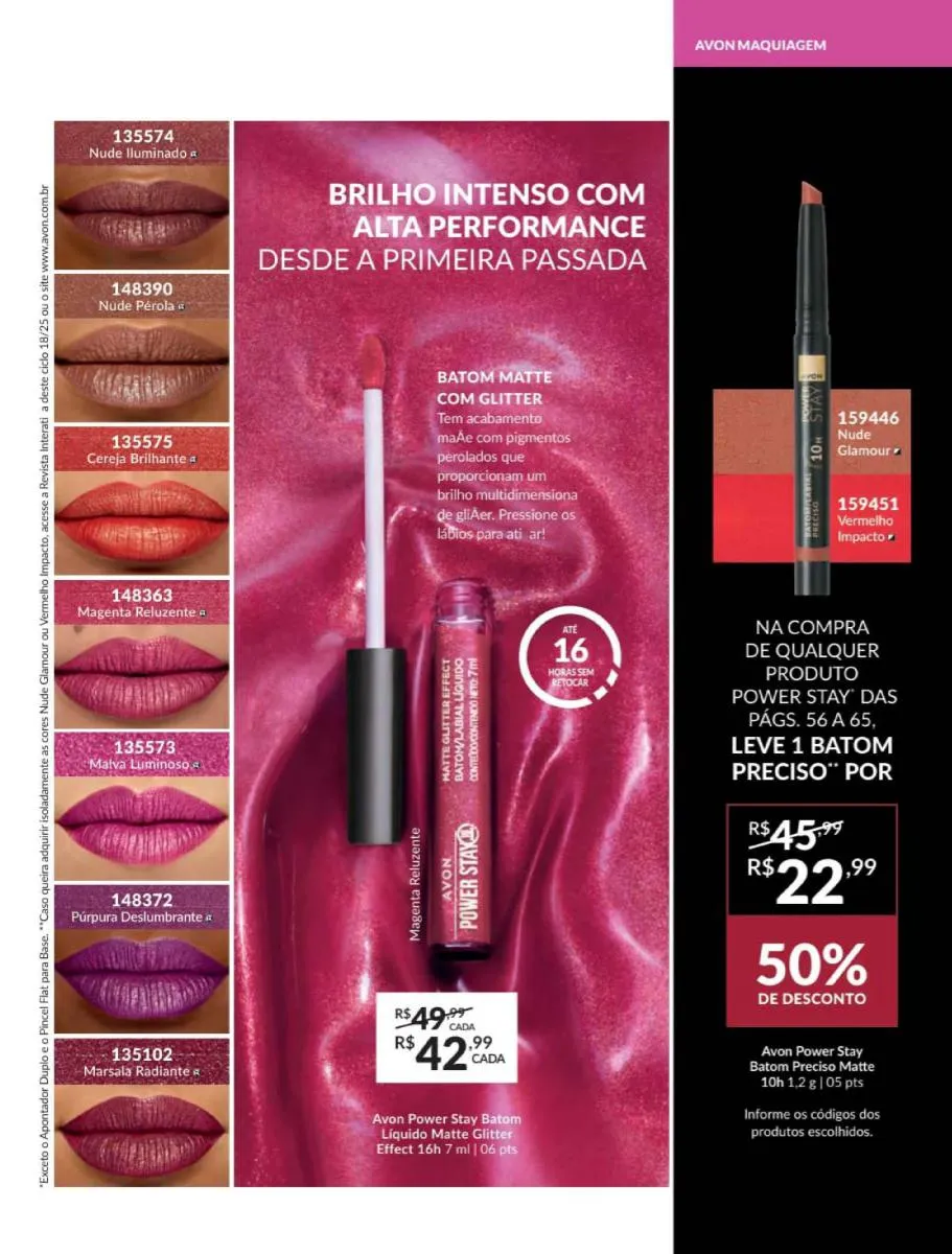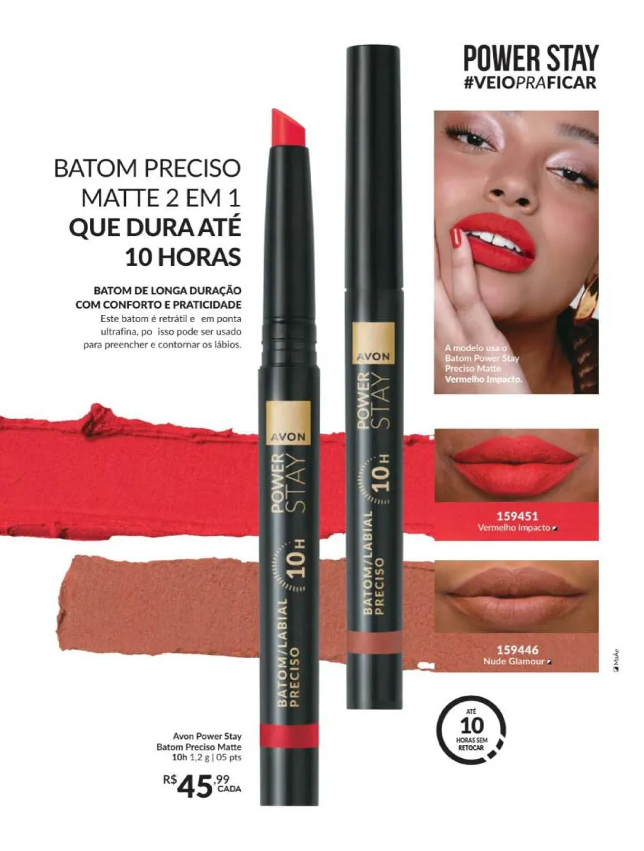 • Batom cremoso com efeito semi-matte de secagem rápida, disponível no Avon ciclo 18 2025 pdf em sua apresentação #Queridinho, em tonalidades variadas, 1, 5 g.