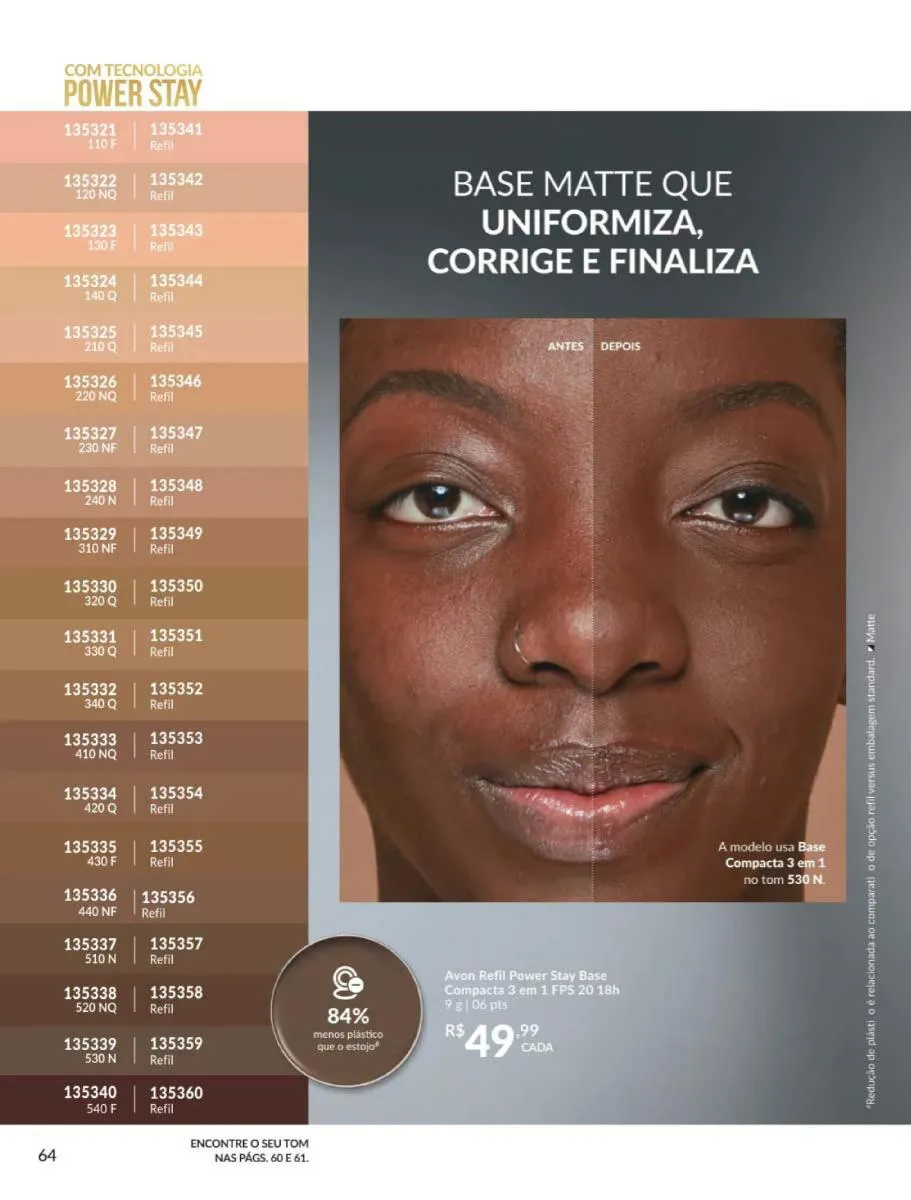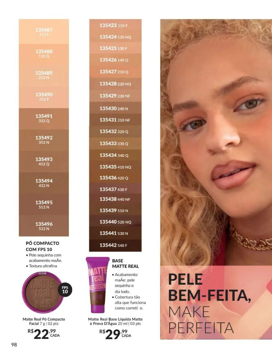 • Pó compacto de alta cobertura com textura ultra fina da linha Matte Real com proteção SPF 10, encontre-o na páginas com um desconto de 25%.
