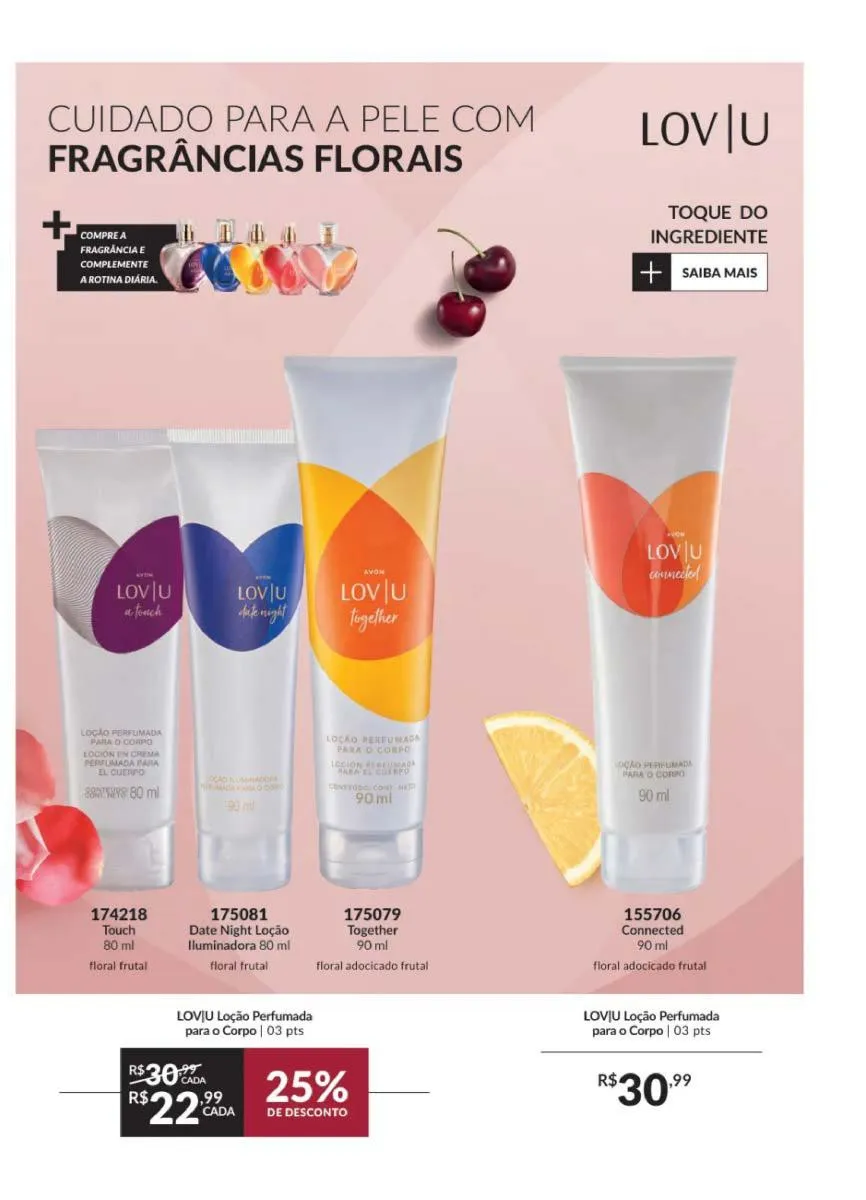 Descubra no revista Avon ciclo 4 Brasil 2026 a mais alta gama de cremes corporais com diferentes fragrâncias, para cada necessidade e com as melhores ofertas e descontos. Disponível a partir da páginas.