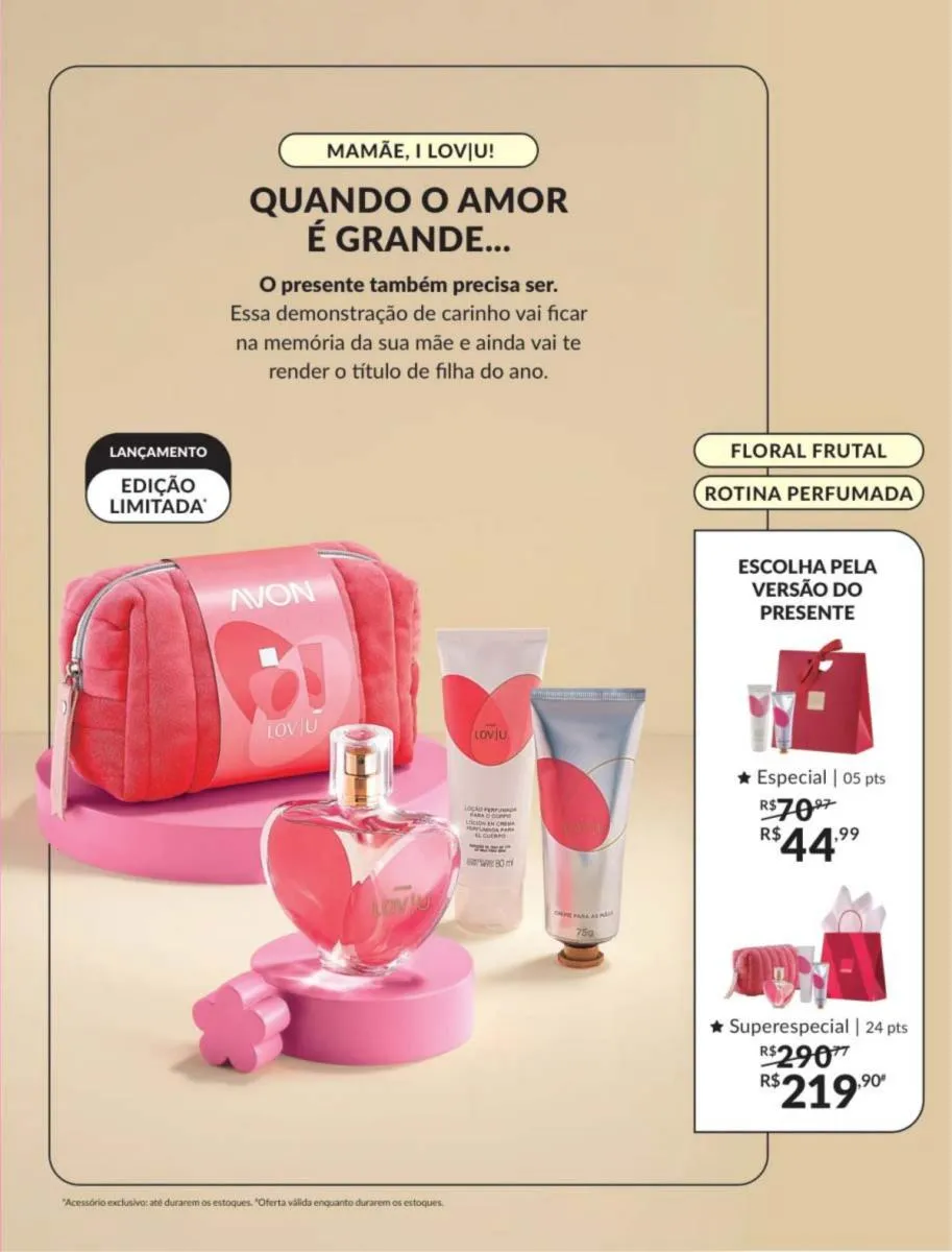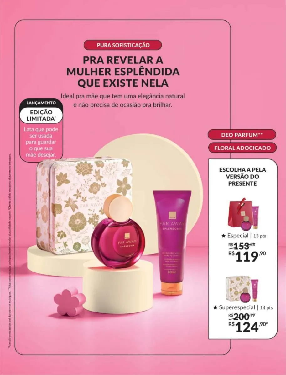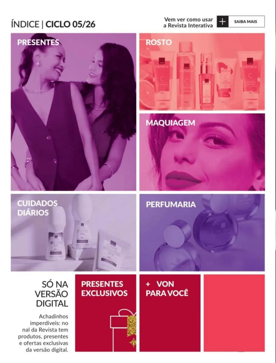 É sempre um bom momento para mostrar todo aquele amor puro e autêntico por aquela pessoa especial; é por isso que no revista Avon ciclo 5 2026 PDF Brasil lhe oferecemos uma seleção de itens para o cuidado de sua pele e de seu ente querido acompanhado com um aroma requintado inspirado na natureza.
