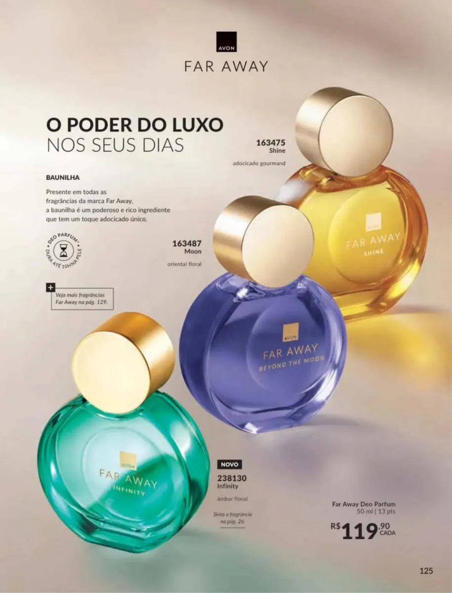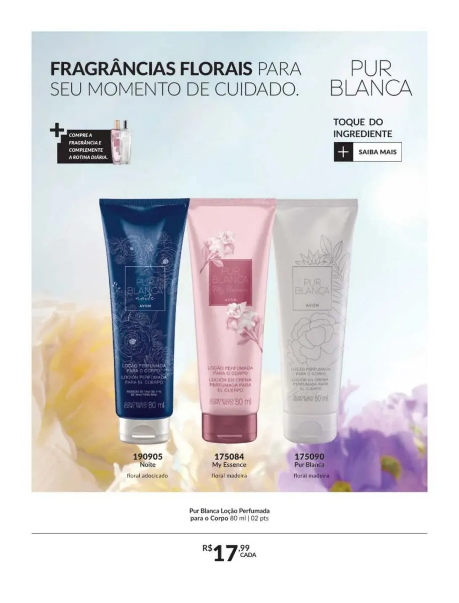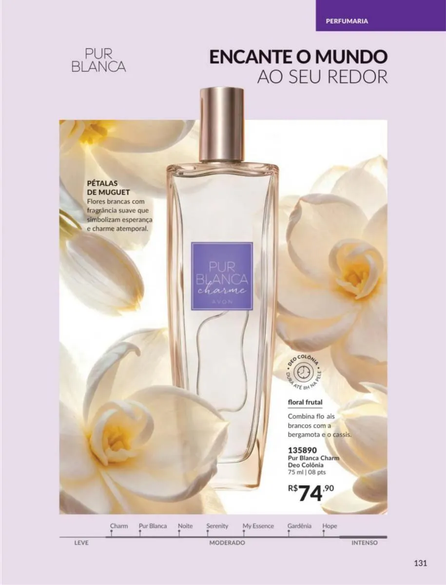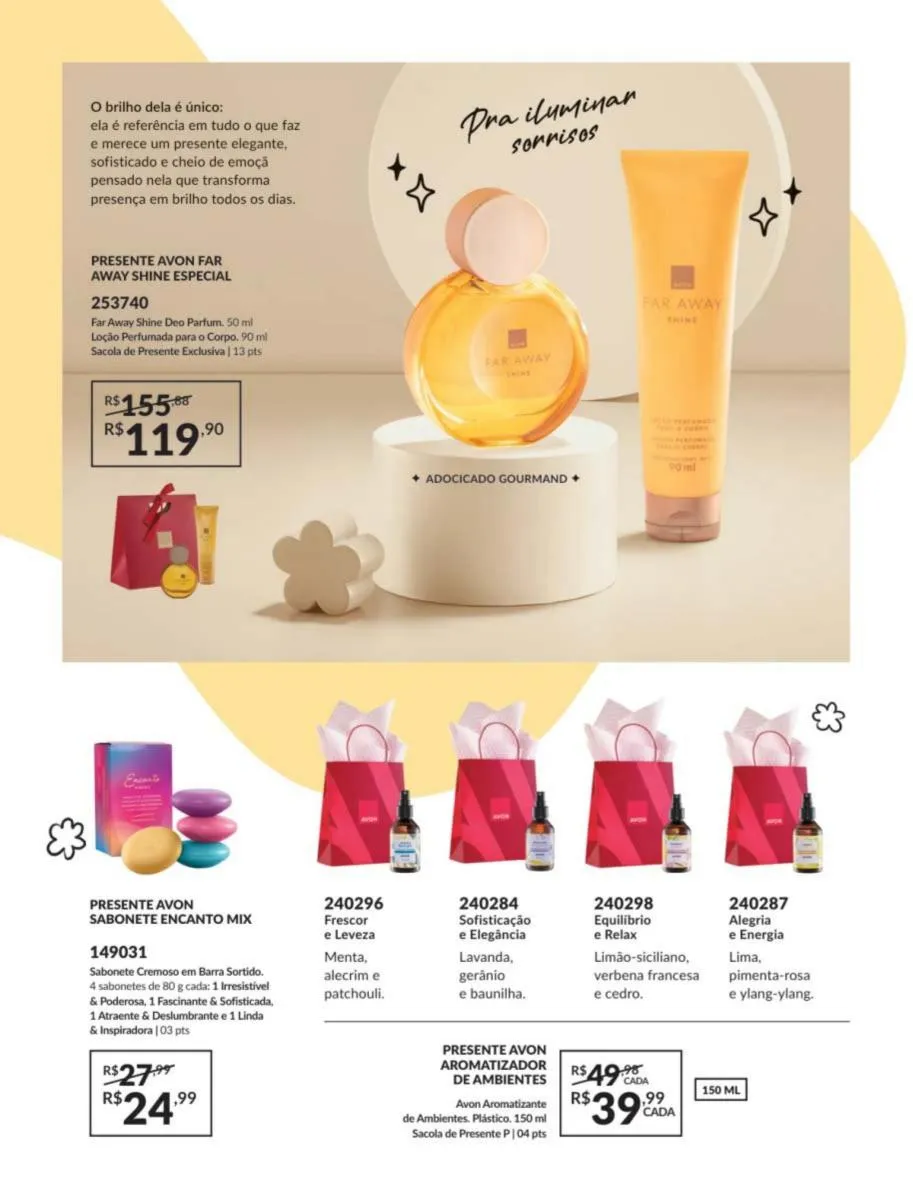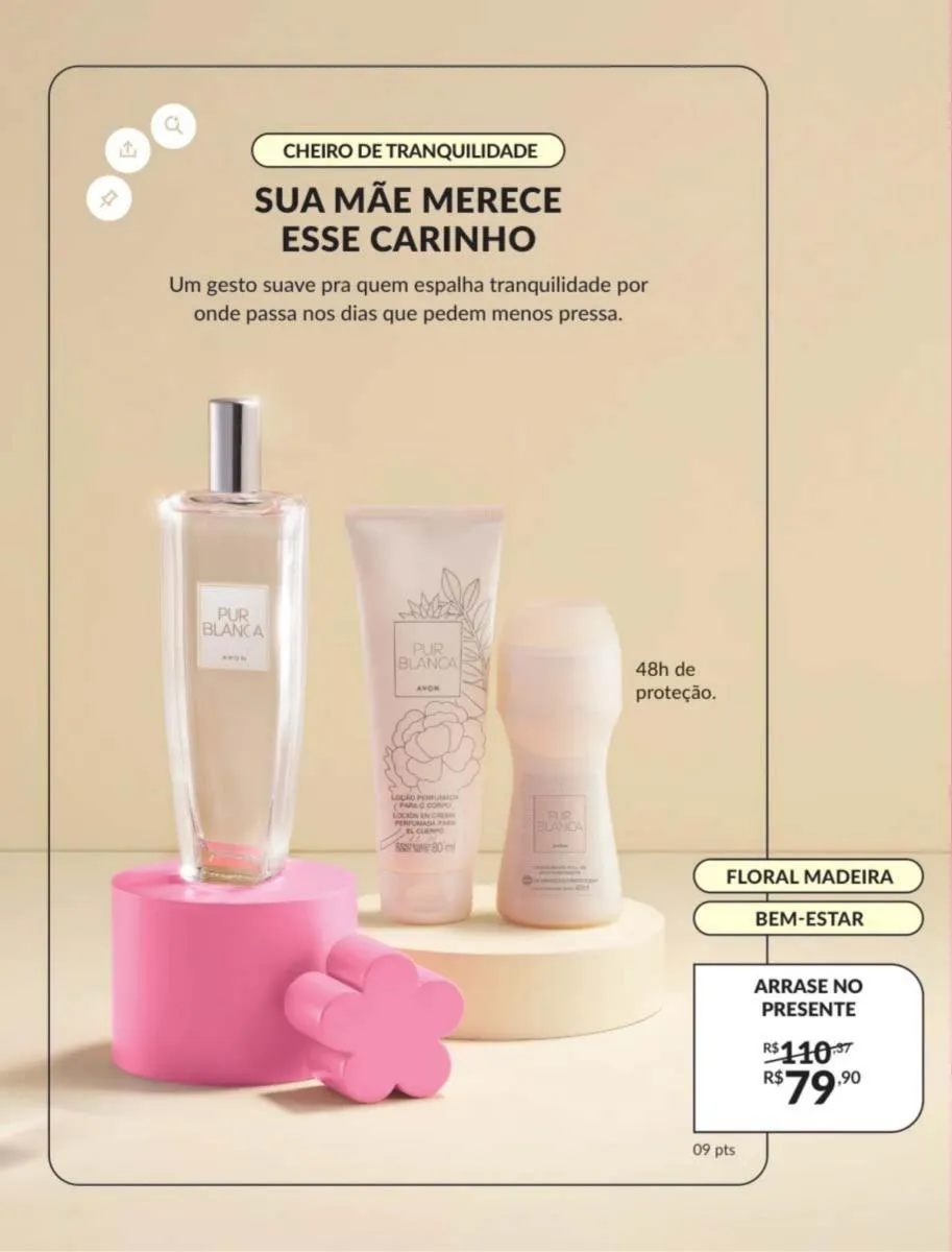 No revista Avon ciclo 5 Brasil 2026 trazemos às suas mãos uma delicada e requintada fragrância inspirada nas flores e frutas do campo, assim como notas reconfortantes de sândalo trazidas a você para mostrar toda sua doçura e carinho.