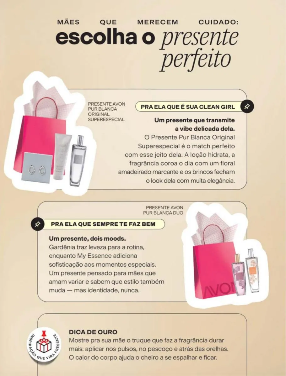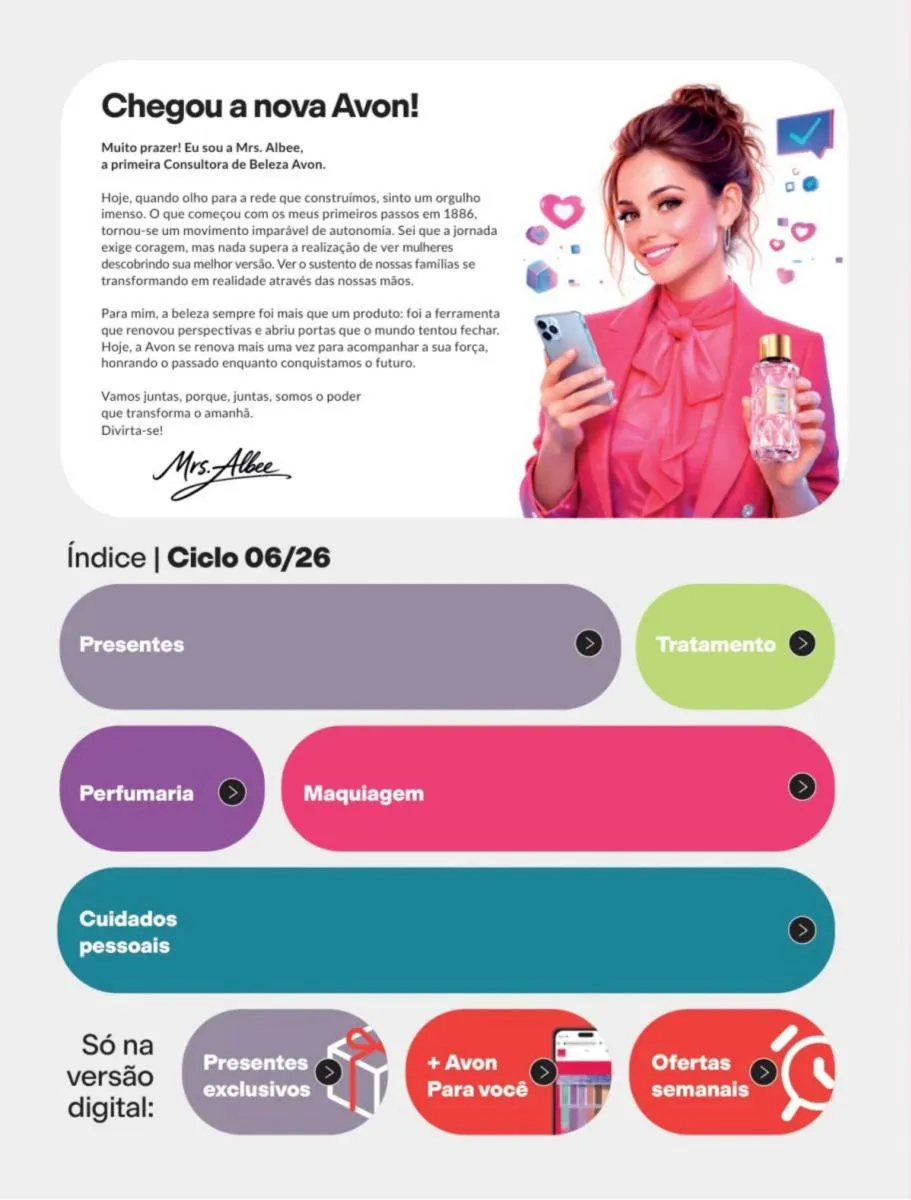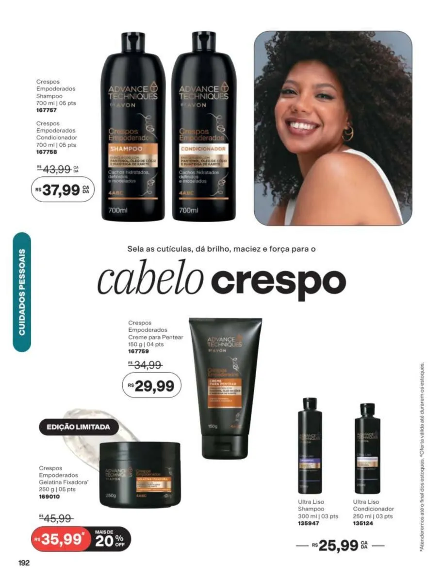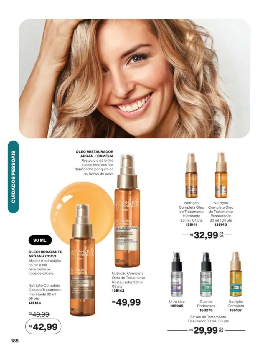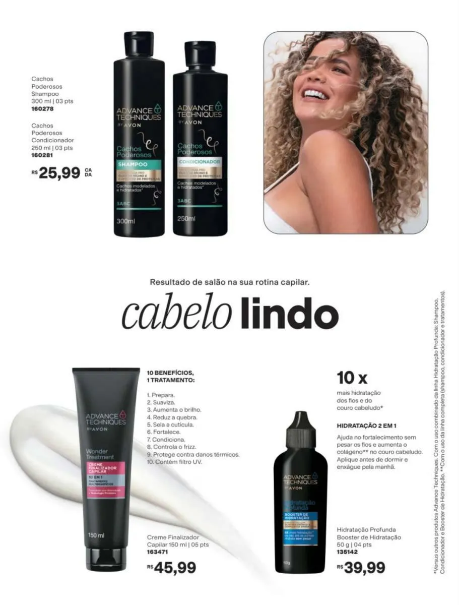 Como passo final para um cabelo mais saudável e hidratado, trazemos tratamentos especializados que dão nutrição e brilho ao seu cabelo; disponível no Avon ciclo 6 2026 pdf. Obtenha um olhar irresistível a qualquer momento com: