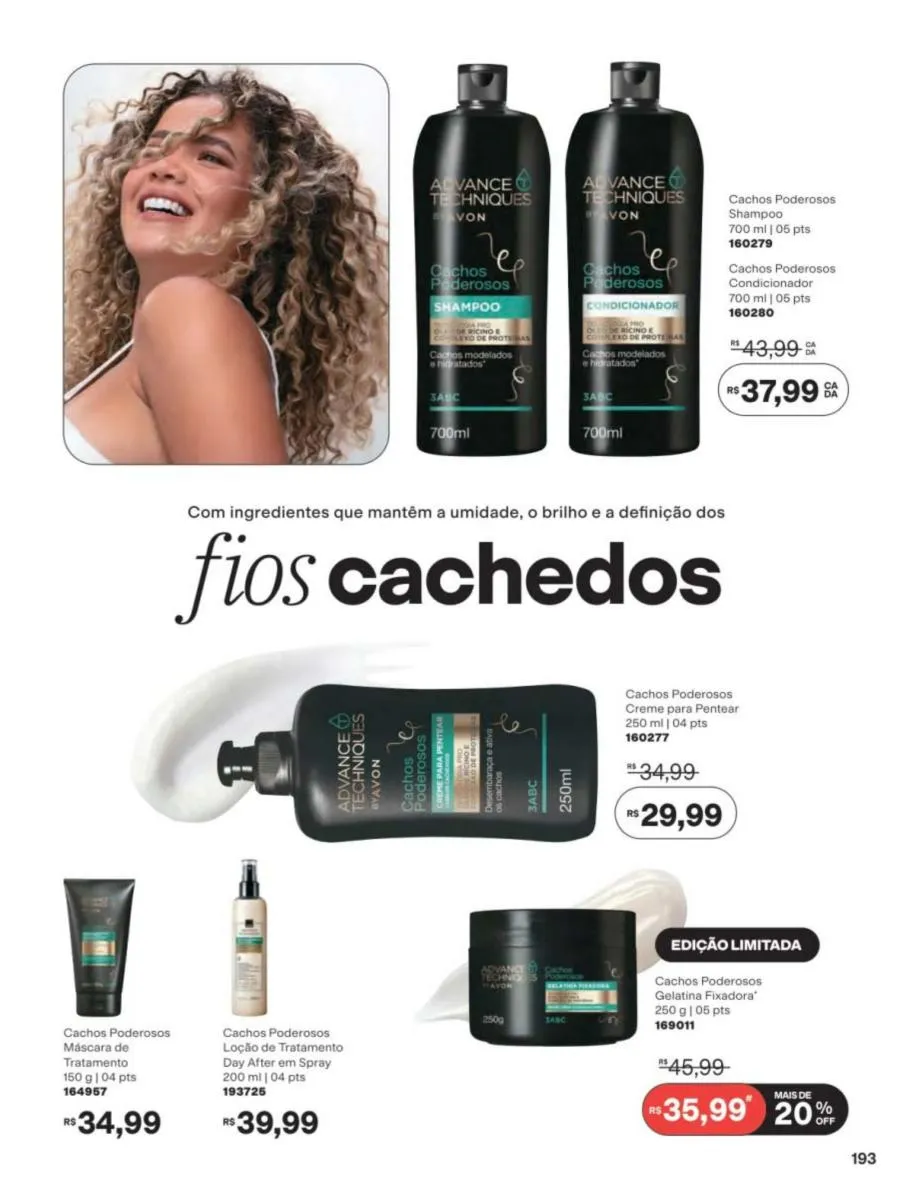 - Uma onda mais definida e manejável com o Kit da linha Avon Advance Techniques em sua apresentação Cachos fabulosos, hidrata e dá vida a suas ondas, desfrute de suas múltiplas apresentações: