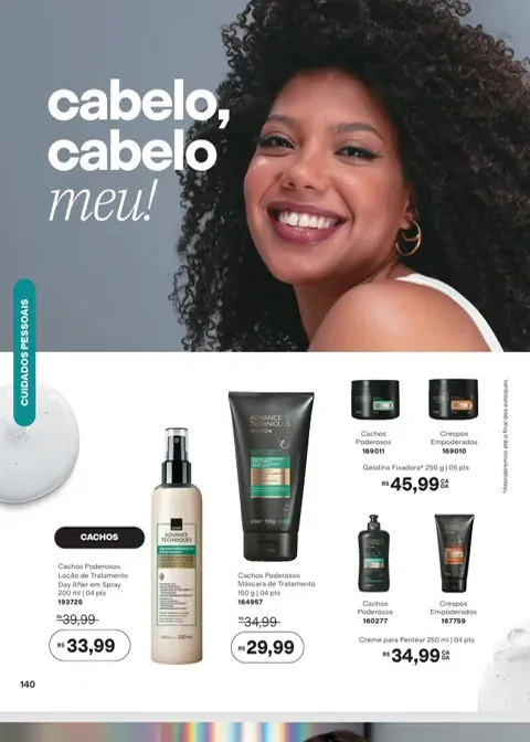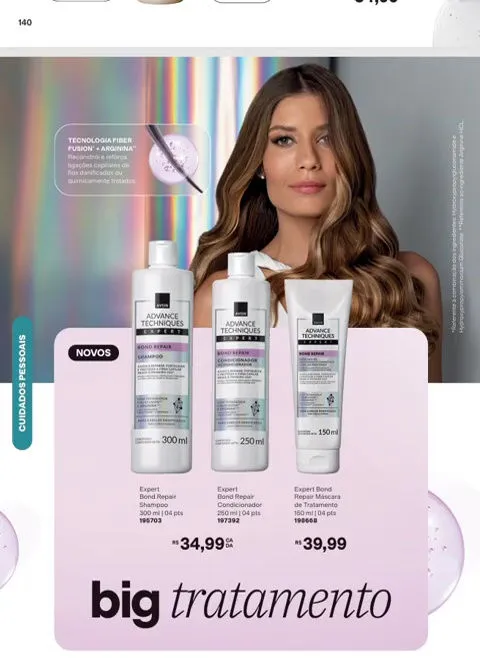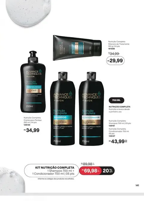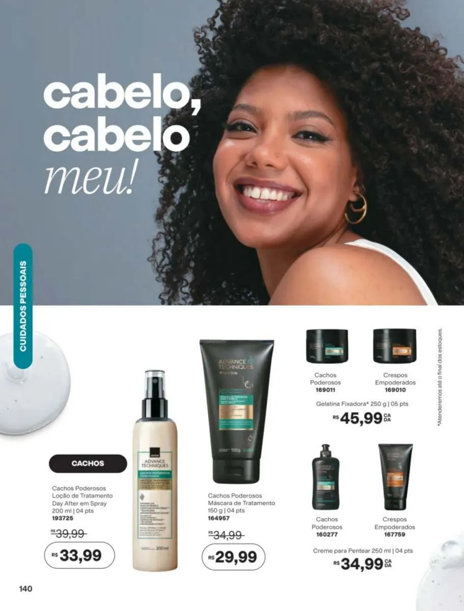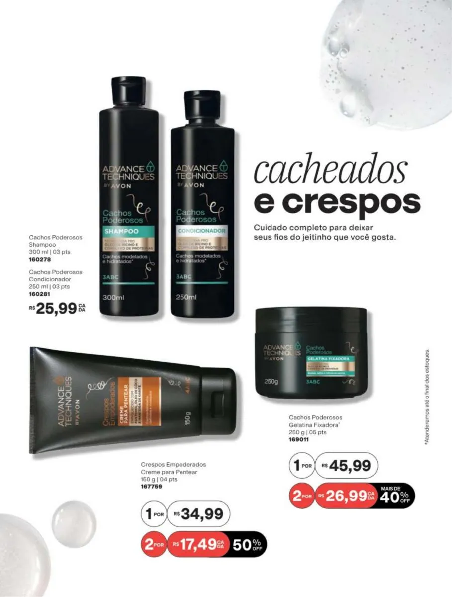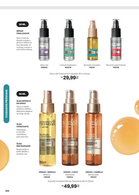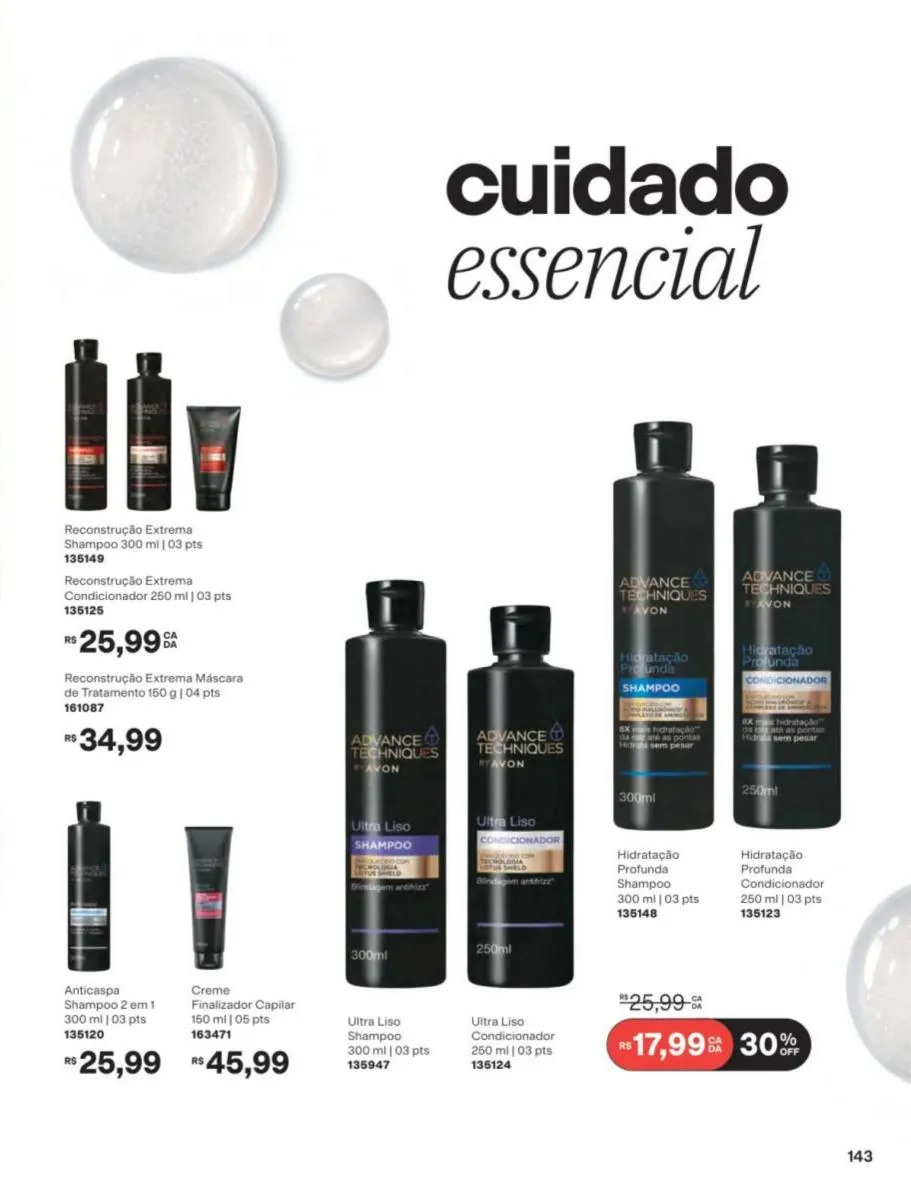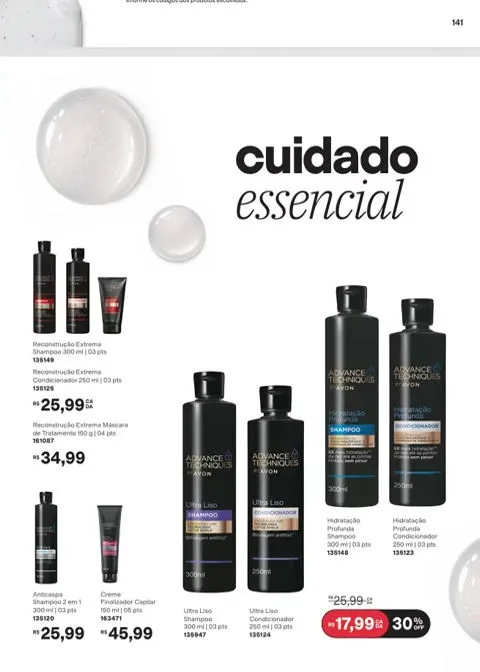 Mantenha os cabelos sedosos e maleáveis com os produtos que você encontrará a partir da páginas no revista Avon ciclo 7 2026 PDF Brasil. Dê nova vida ao seu couro cabeludo, desfrute das propriedades hidratantes, restauradoras e de manejo dos cabelos com a linha Advance Techniques.