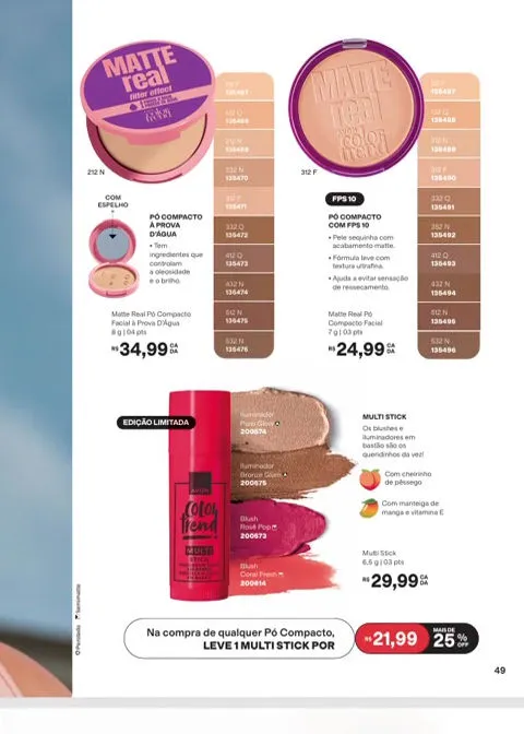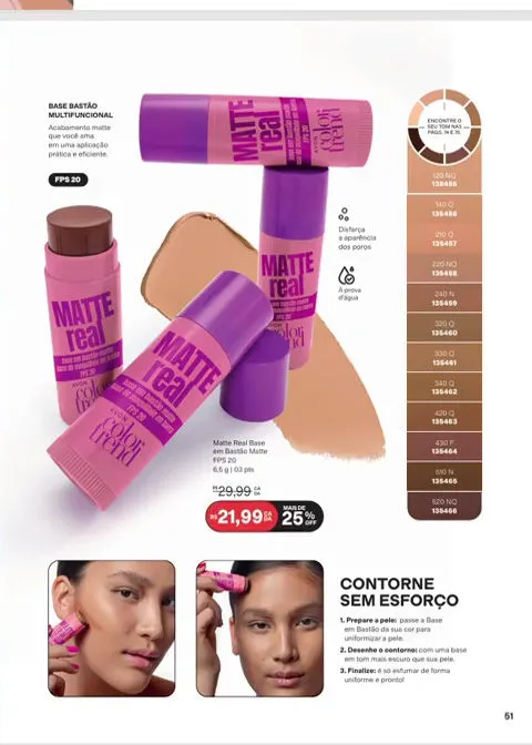 Sua apresentação em Creme permite obter uma cobertura uniforme ao aplicar o produto, encontrá-los em uma grande variedade de tonalidades, o Kit vem acompanhado:
