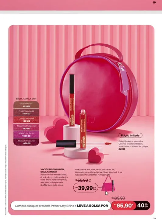 No revista Avon ciclo 8 Brasil 2026, você encontrará uma seleção de cosméticos feitos com pigmentos intensos, intransferíveis, ideais para uma maquiagem de 24 horas.