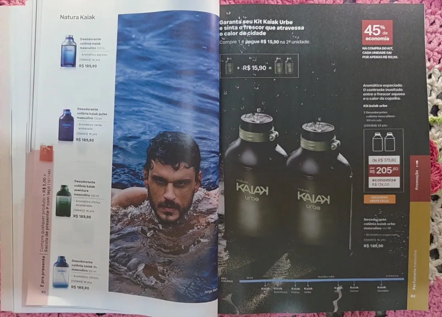Permanecer forte e viril com fragrâncias concebidas para si que pode encontrar no nosso revista Natura ciclo 6 2026 Brasil, agora faz com que todos os olhos estejam fixos em si quando entra em qualquer lugar, porque as fragrâncias que colocamos à sua disposição são concebidas exatamente assim. Saia e domine o mundo à maneira da Natura.