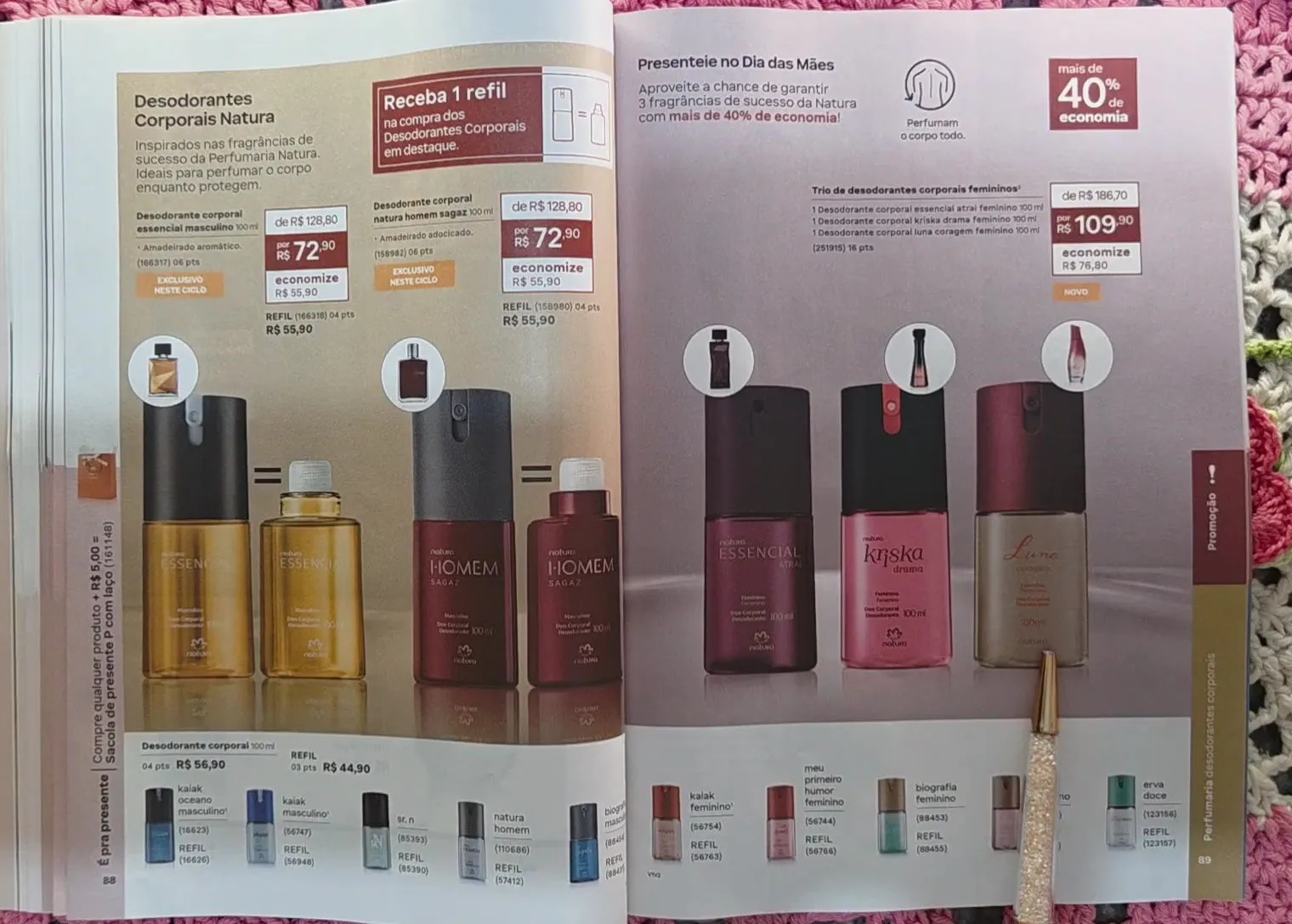 Fragrâncias que transmitem segurança e força, fabricadas de uma forma amiga do ambiente, não são apenas fortes, são sustentáveis, nada melhor do que parecer e cheirar bem e ajudar o ambiente ao mesmo tempo com estas grandes fragrâncias que a Natura lhe oferece no revista Natura ciclo 6 2026 Pdf: