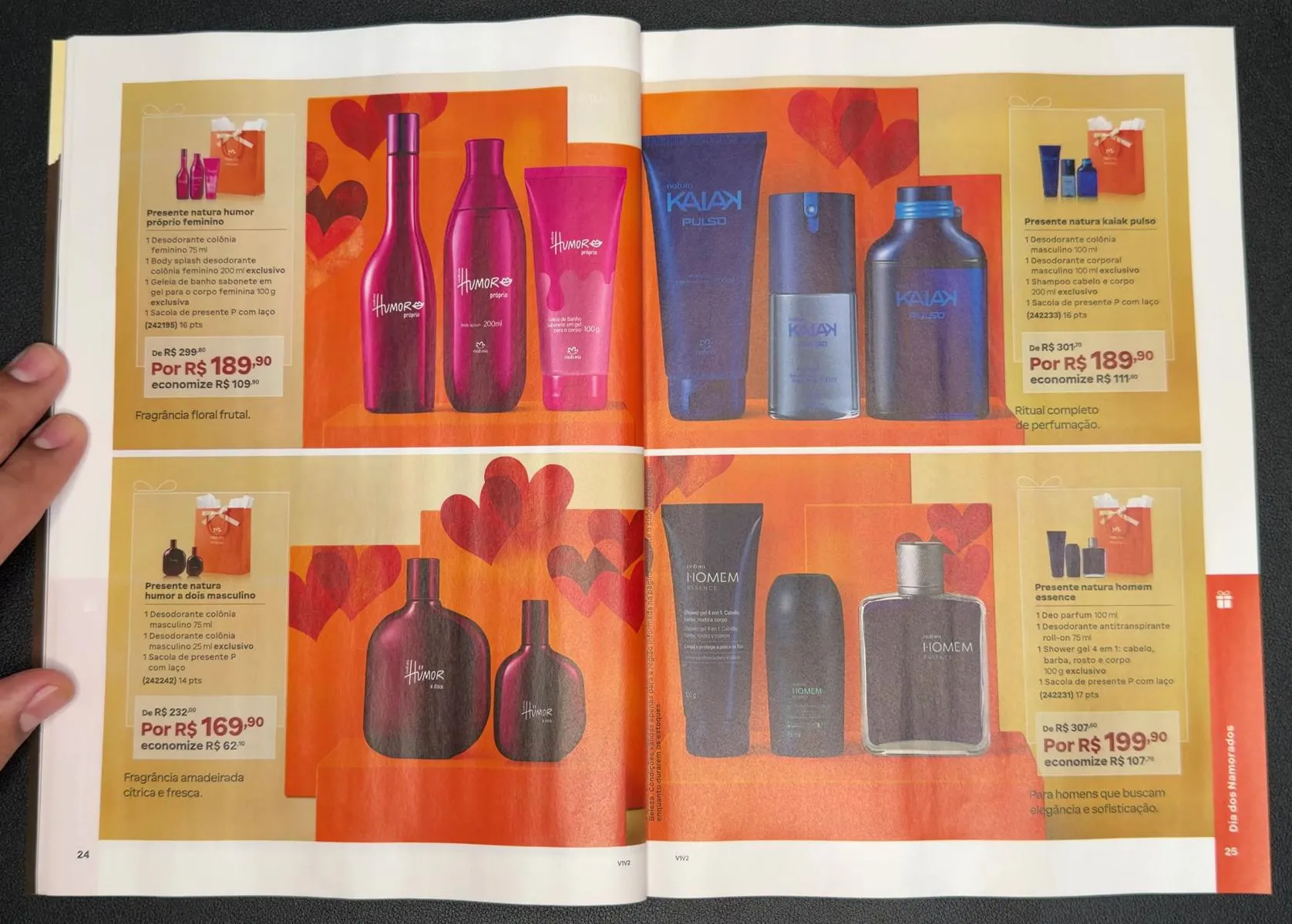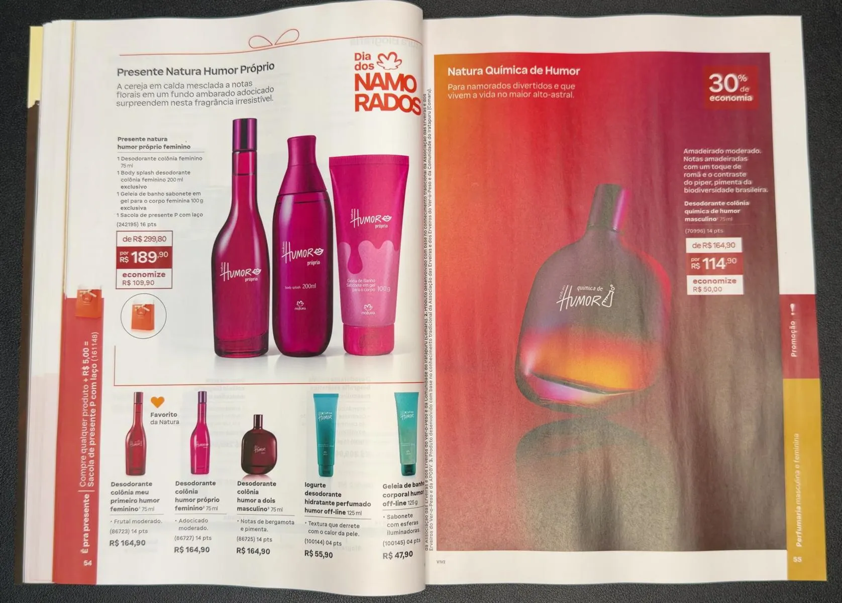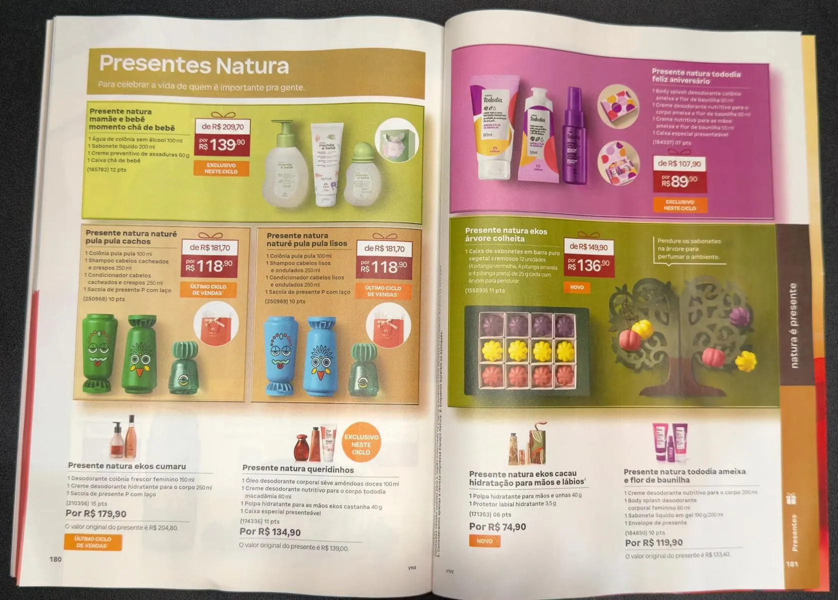 Encontrar no revista Natura ciclo 8 2026 Pdf Brasil os melhores presentes para ele e para ela compostos por fragrâncias e produtos de cuidado pessoal. Também as melhores promoções, ofertas e descontos sazonais, tudo organizado especialmente para si.