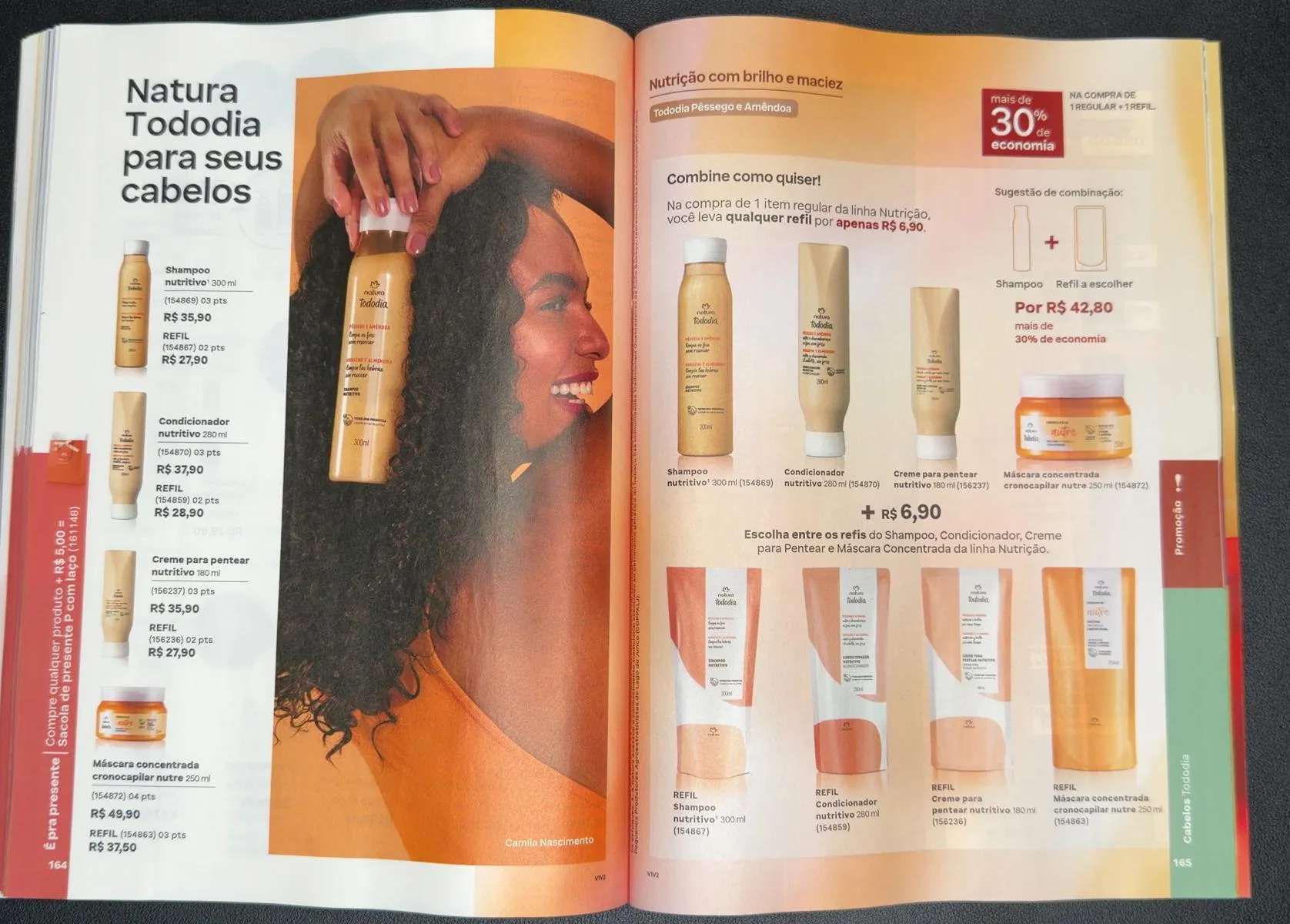 - Presente natura Tododia noz pecã e cacau com necessaire disponível no revista Natura ciclo 8 2026 Brasil e composto por: