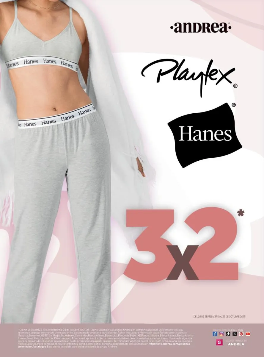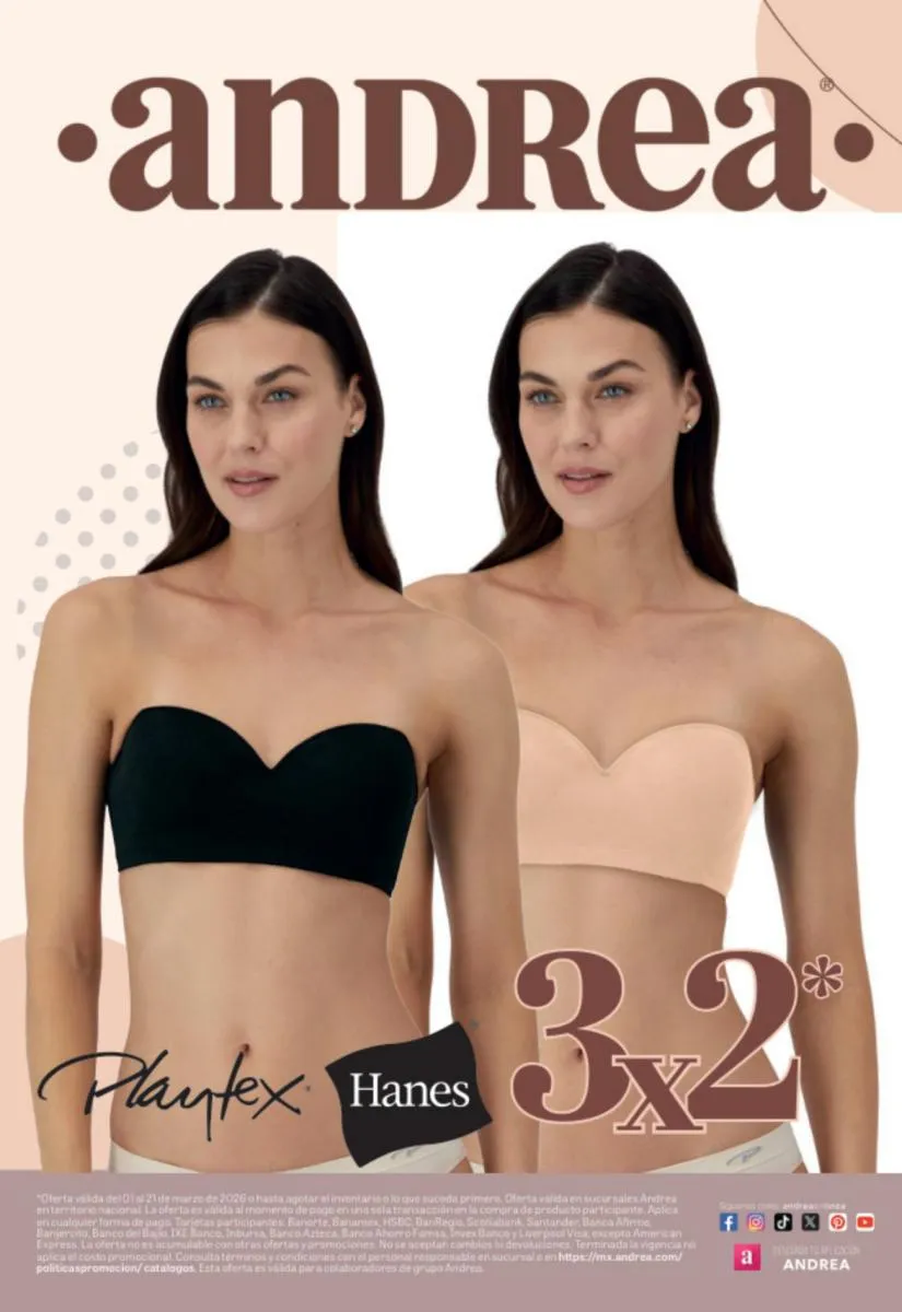 En este catálogo Andrea Lo Mejor de Playtex 2025 puedes conseguir los colores más bellos para estar a la moda este 2025, y además un ¡30% de descuento en tu segundo producto!