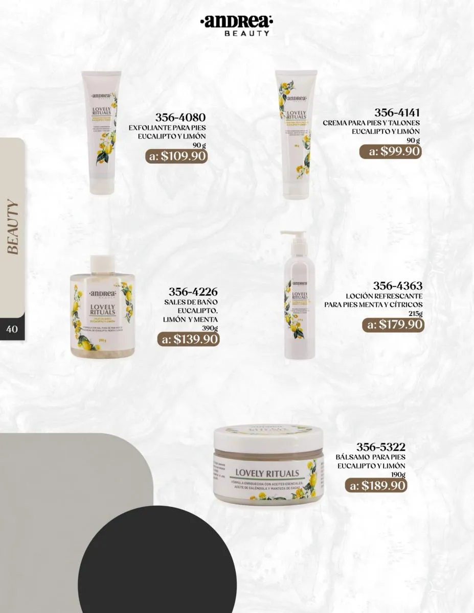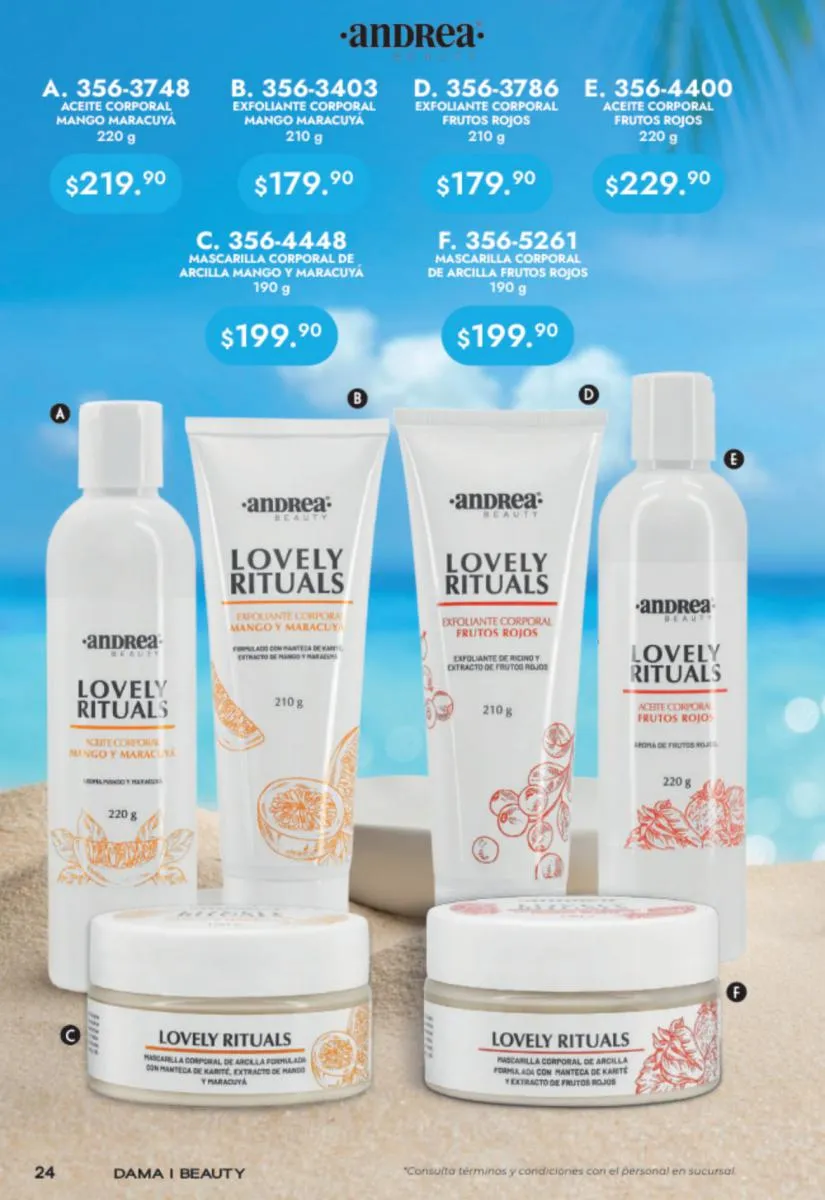 Además, aprovecha las ofertas de sets de cuidados para distintas partes del cuerpo que Andrea te invita a probar: tus pies, piernas y manos nunca se sentirán tan suaves.