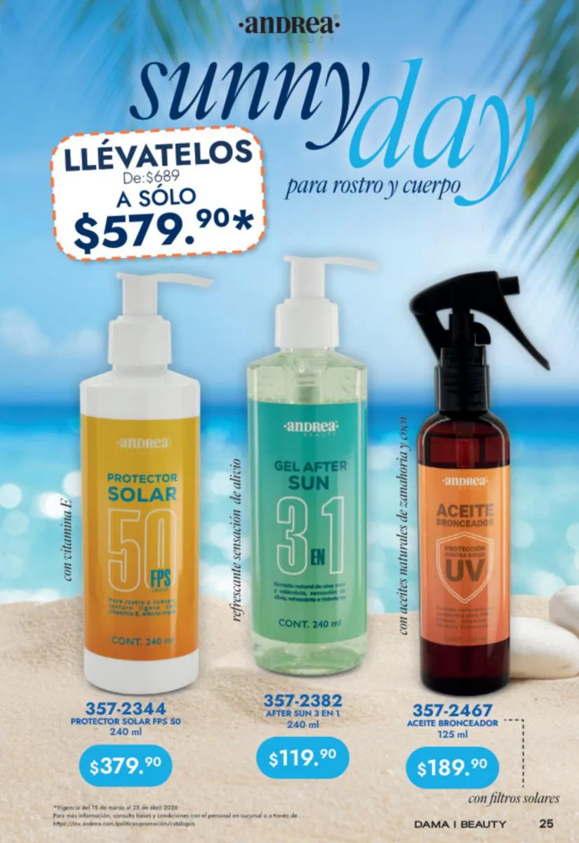 Llegó el Primavera y con Andrea Imperdibles de Vacaciones de Primavera conseguirás todo los elementos esenciales para poder disfrutar al máximo estas vacaciones: ¡protectores solares, gel humectante, autobronceadores, y más!