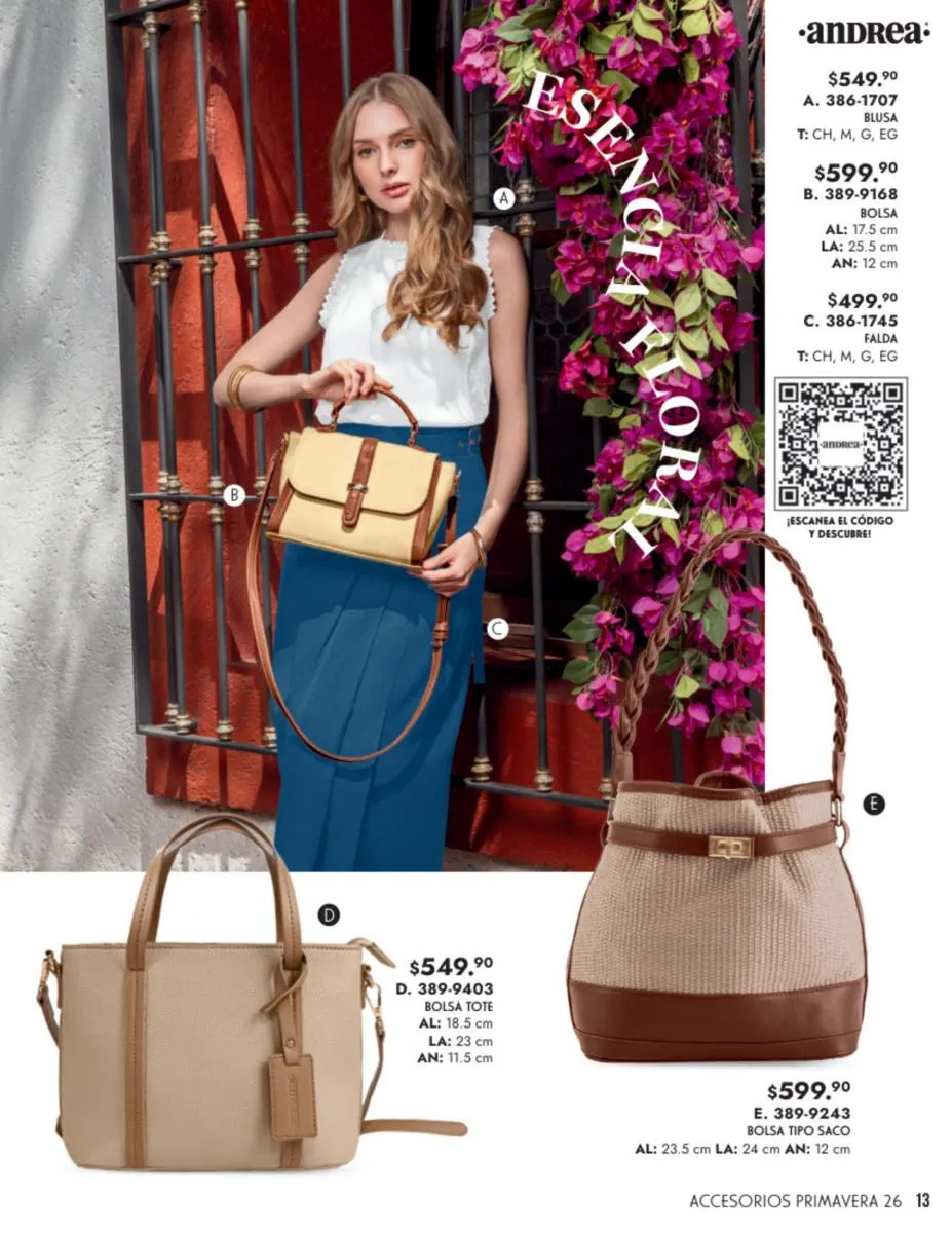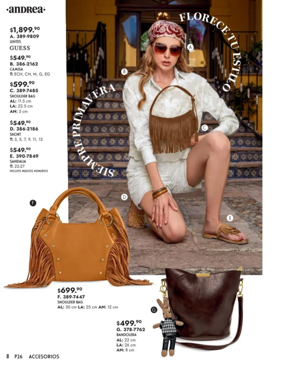 Los mejores bolsos y accesorios para esta temporada los encuentras en catálogo Andrea Bolsos Accesorios Primavera 2026 México.