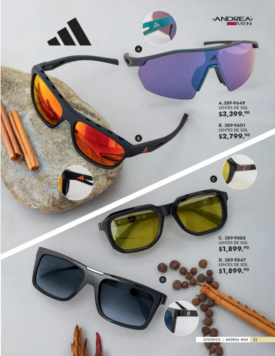 Los lentes de sol que Andrea tiene para que te luzcas son ideales. Marcas como York Team Polo Club, Guess, Skechers te acompañarán en los días de sol. También Andrea Under the Sun contiene opciones polarizadas para estar super cómoda.