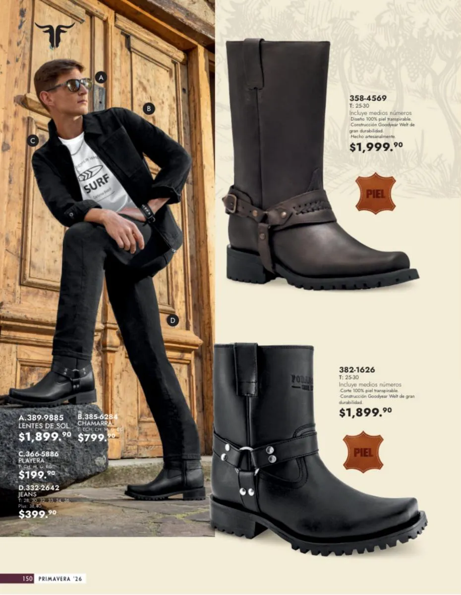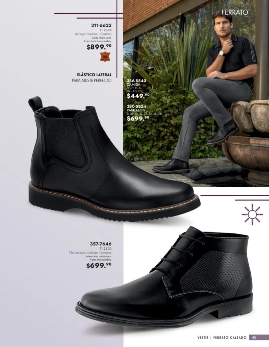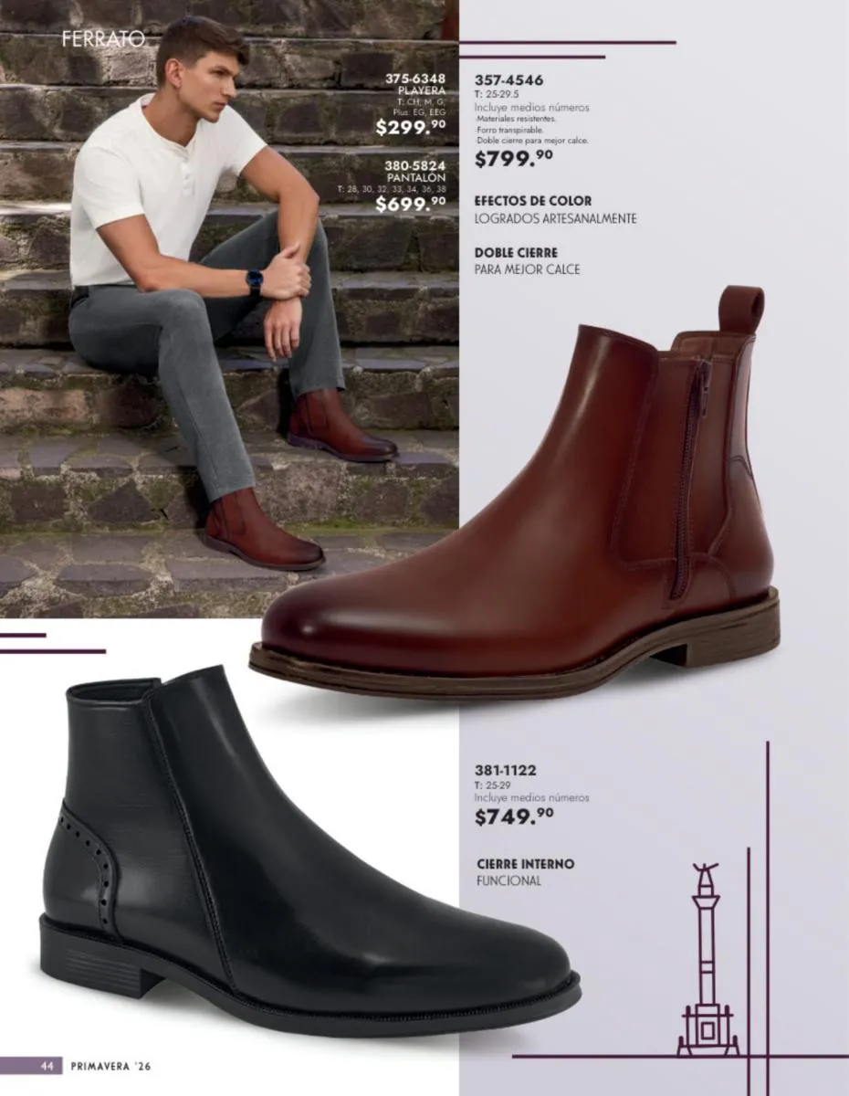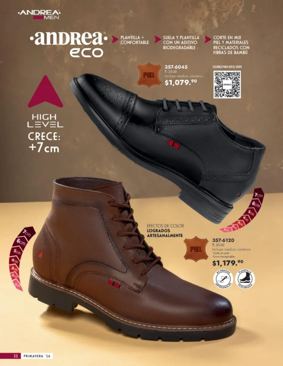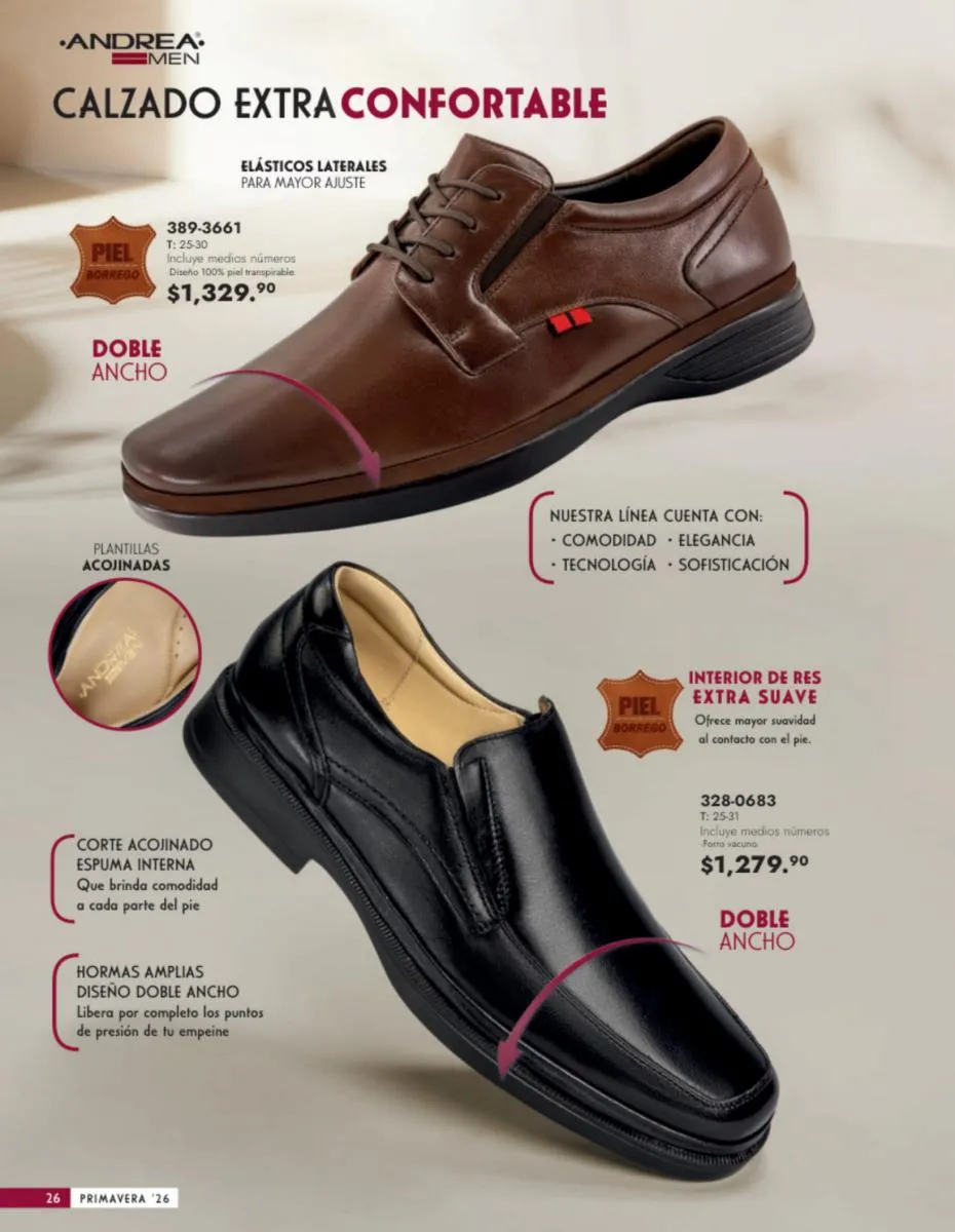 El calzado de vestir en catálogo Andrea Calzado Caballero Primavera 2026 México es primordial y no escatima en ningún elemento que mejore tu postura y tus caminatas. Además, ofrece texturas y colores únicos ya que son logrados artesanalmente para tener los modelos más destacados en este Primavera. Si deseas lucirte al máximo, utiliza la línea Ferrato High Level para alcanzar los mejores looks en todo momento.