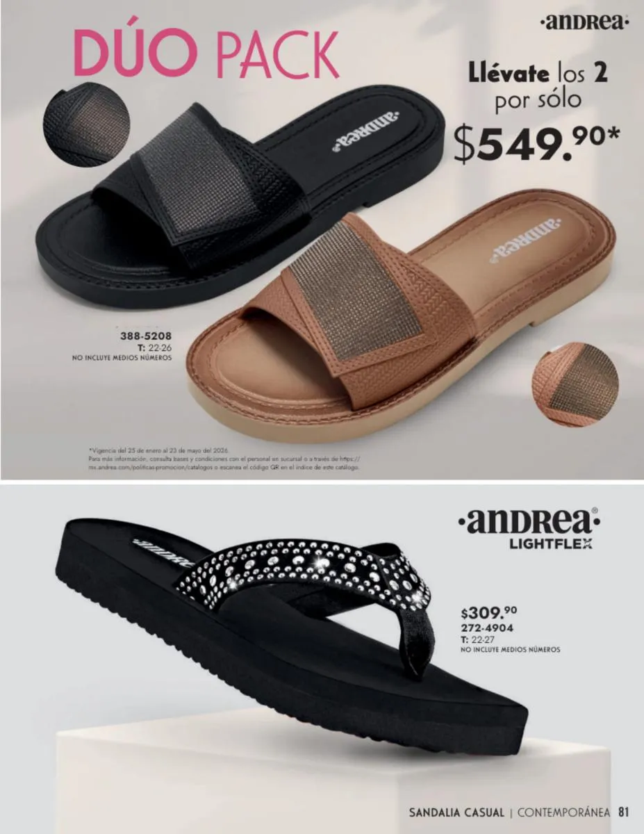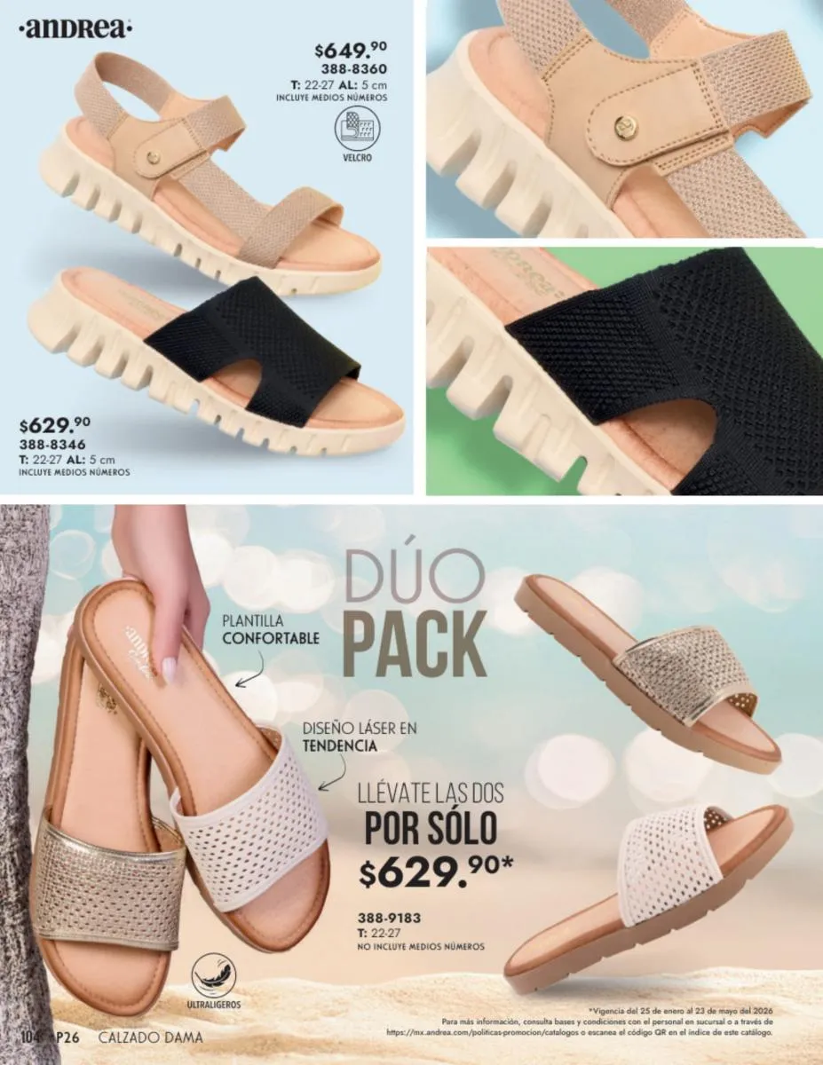 Andrea te ofrece los mejores modelos para cada momento de esta catálogo Andrea Calzado Dama Primavera 2026 México.