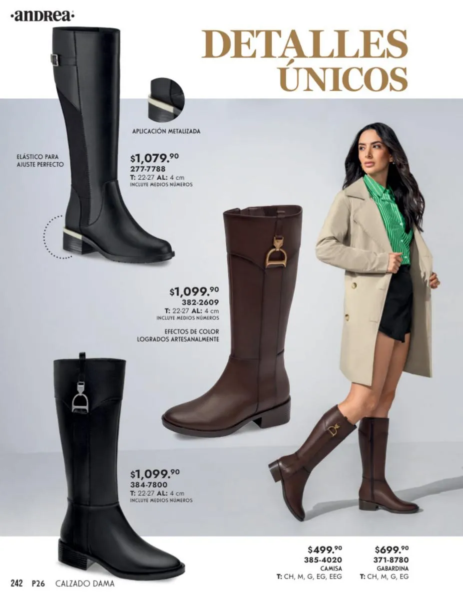Muchísimos modelos para la Mid-Season y la temporada de otoño los adquieres en este catálogo Andrea Calzado Dama Primavera 2026. Los colores más trendy de esta época, distintos diseños y las texturas más impresionantes.