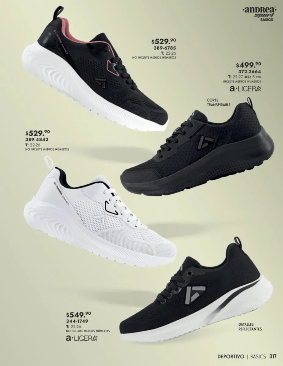 Andrea Sport tiene muchísimas variedad para que te mantengas en forma incluso en los días de calor. Mejora tu tracción, ligereza, estabiliza y flexibiliza tus pies para tener una mejor calidad de ejercicio. Estas zapatillas tienen piso de suela de hule, detalle reflejante, y malla suave y transpirable. Elige los colores que más te gusten y haz ejercicio siempre a la moda.