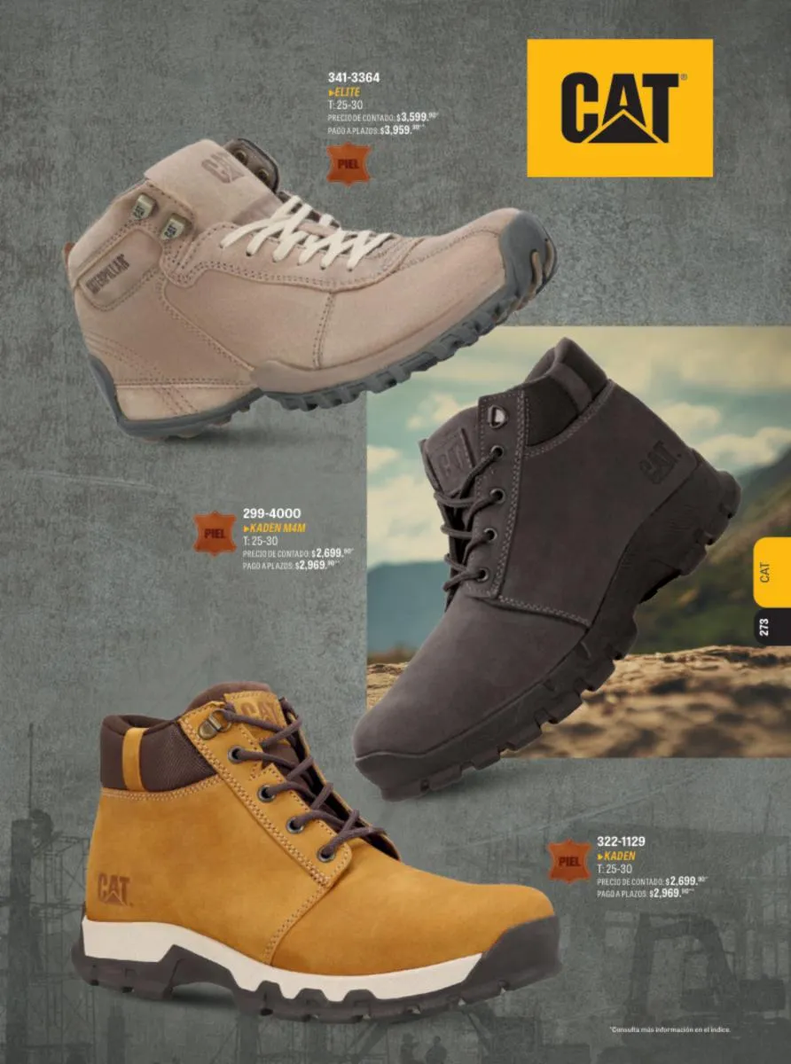 Cat, Reebok, Jeep, Discovery, Natiobal Geographic son los llamados para acompañarte a explorar esos nuevos destinos. Y si requieres un modelo robusto para tareas exigentes en tu trabajo, como la construcción, por ejemplo, nada mejor que este tipo de calzado que solo Andrea sabe lo necesario y útil que es para ti.