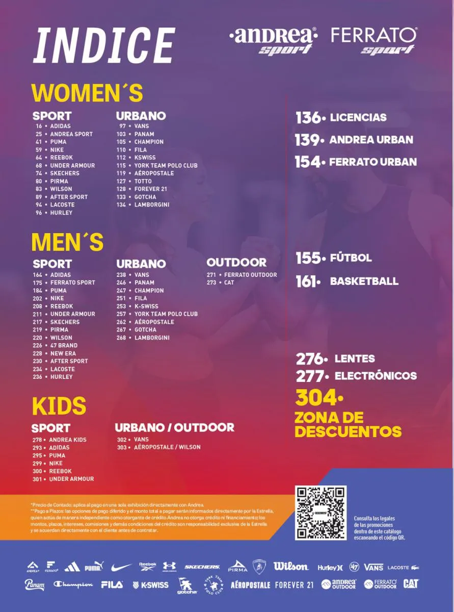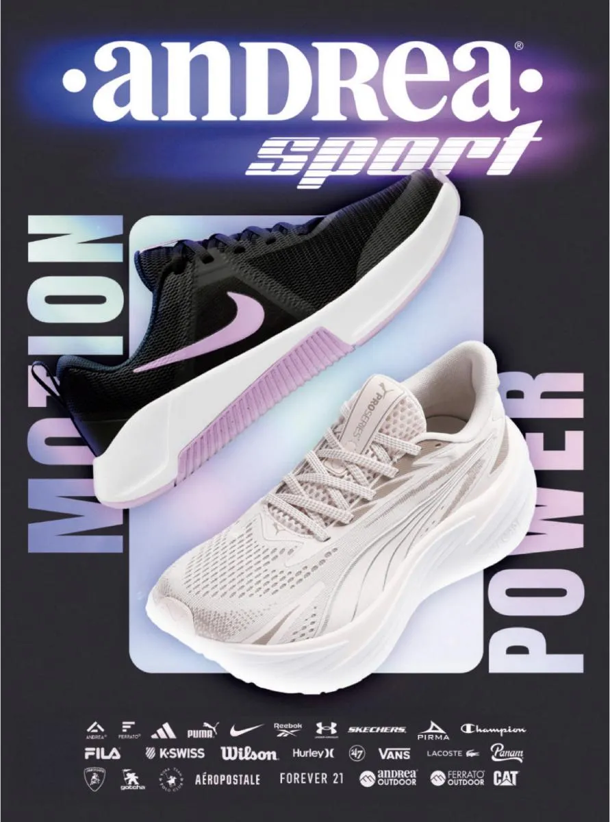 Para mujeres, hombres y niños, todos los calzados deportivos y los accesorios los tiene Andrea.