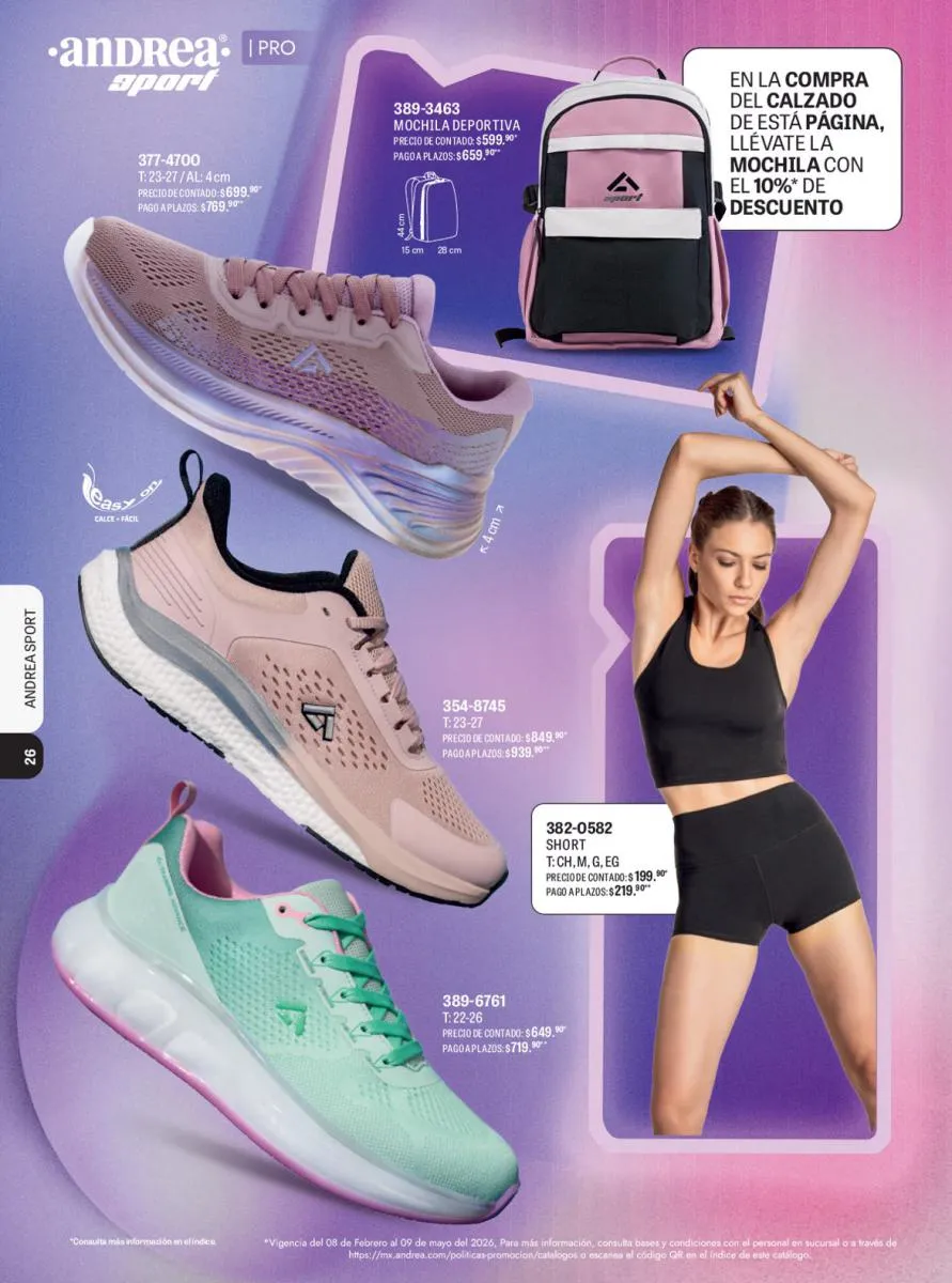 Para las mujeres, este catálogo Andrea Deportivo Completo 2026 México ofrece productos ligeros y frescos con tecnología de vanguardia para que los días calurosos no sean una excusa en esta temporada.