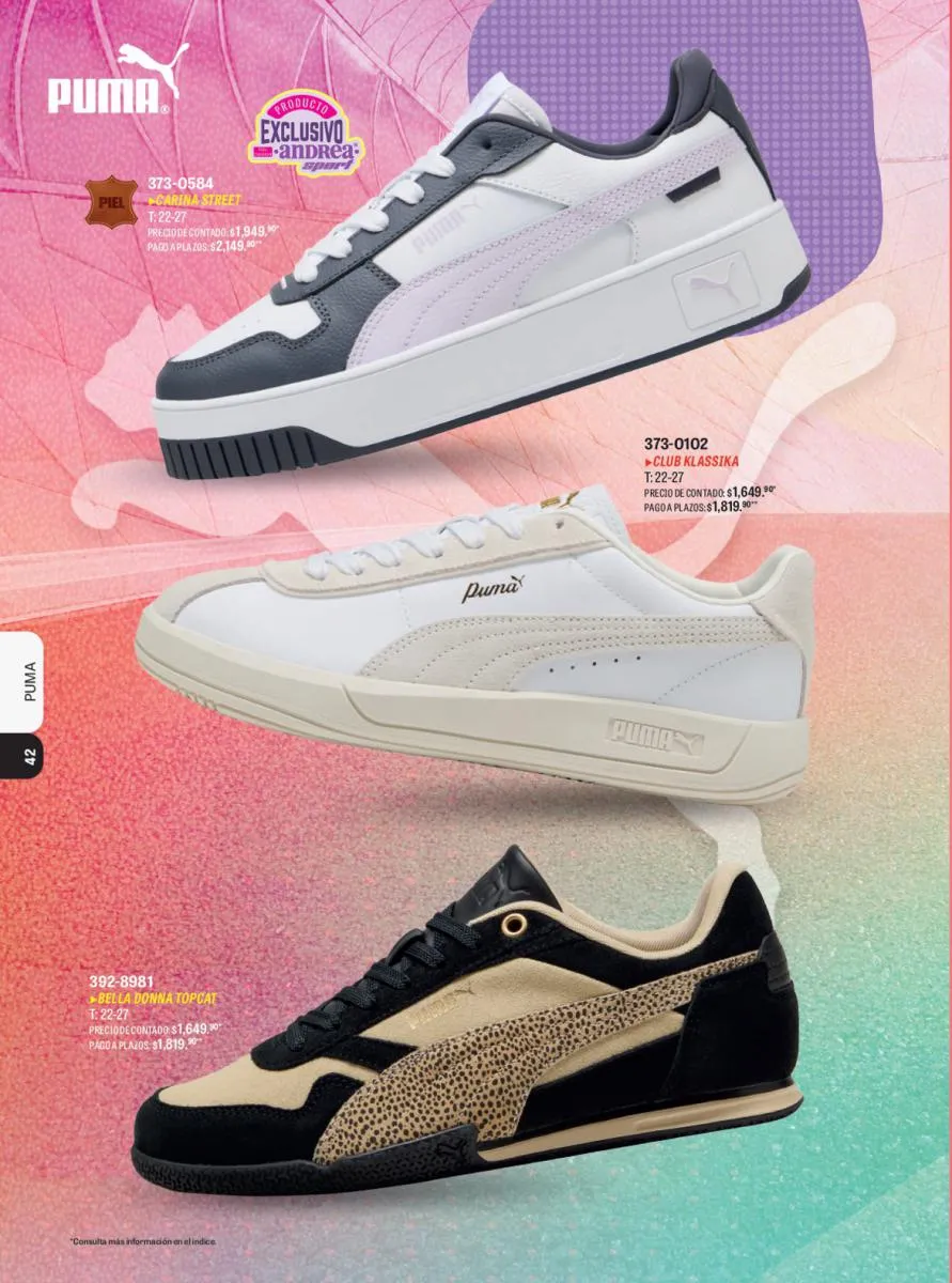 Encuentra tu estilo con el calzado deportivo que Andrea tiene para tí. Las mejores marcas y los diseños más inteligentes para que puedas destacarte en tu deporte lo puedes conseguir aquí.