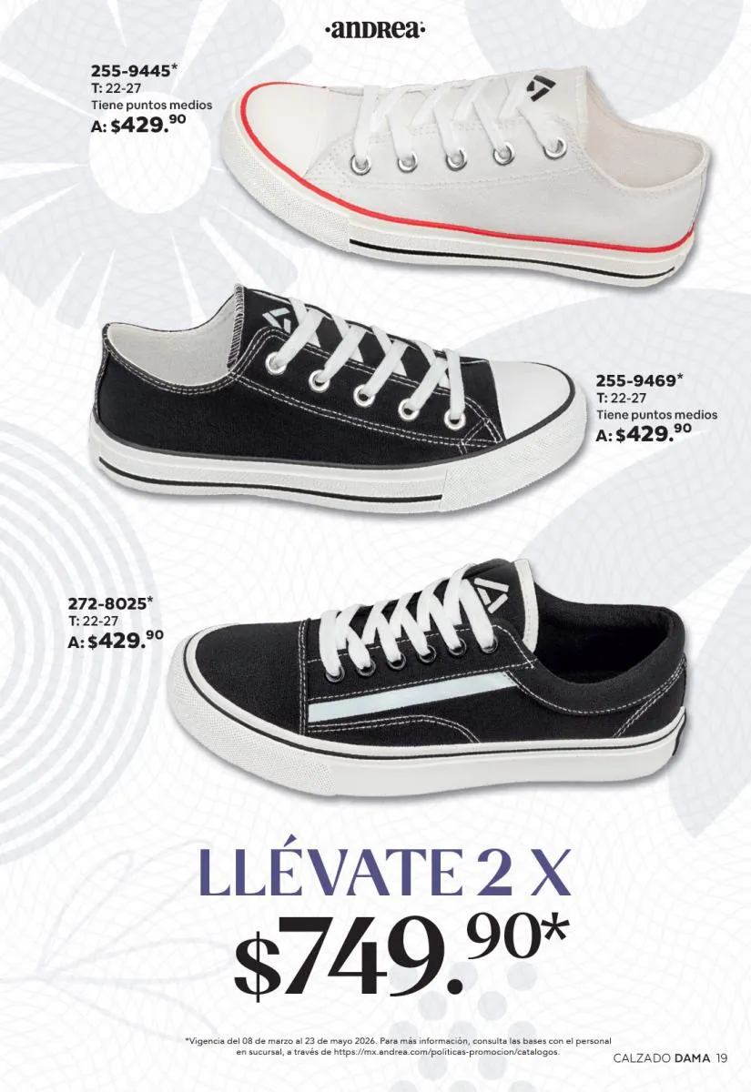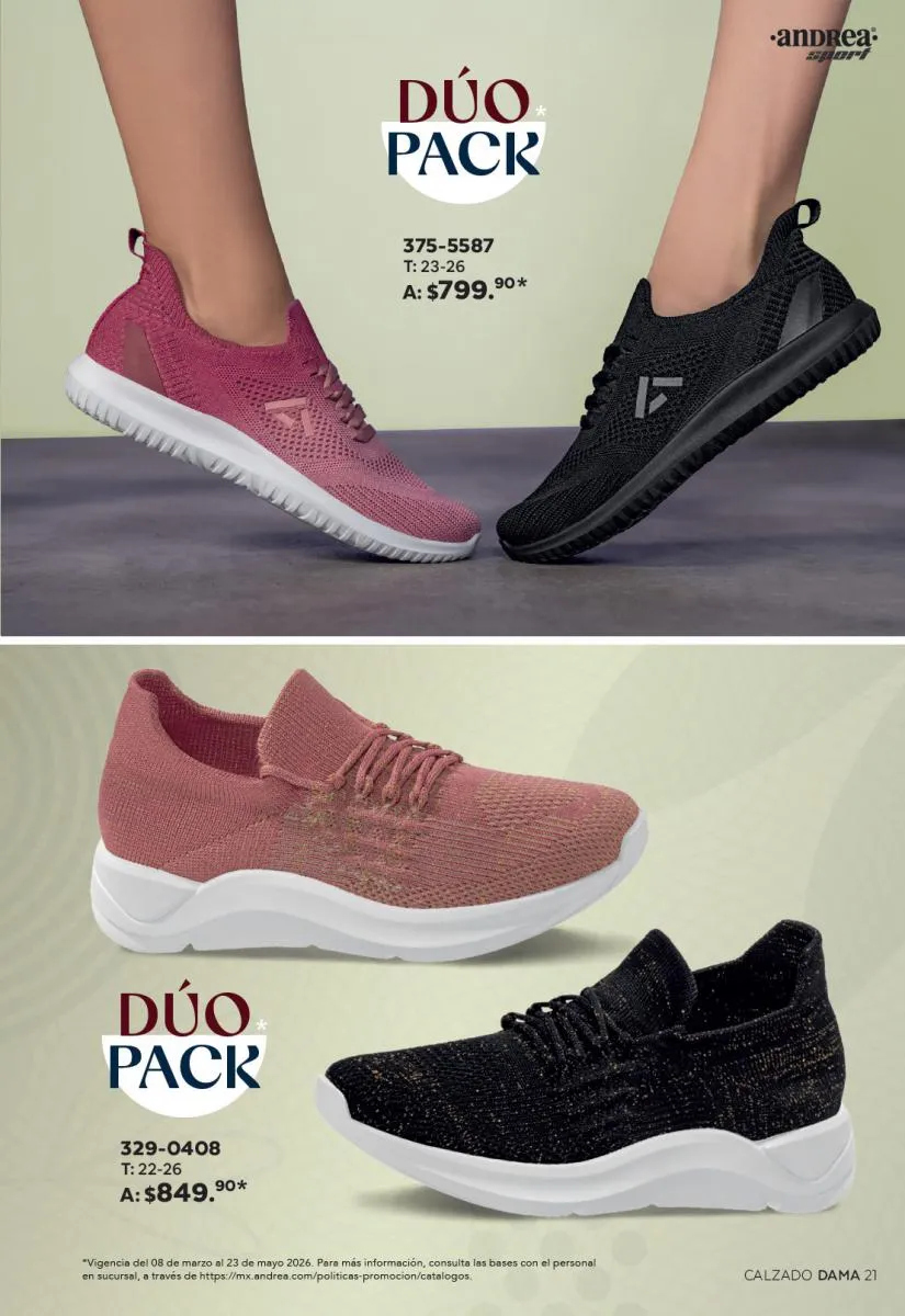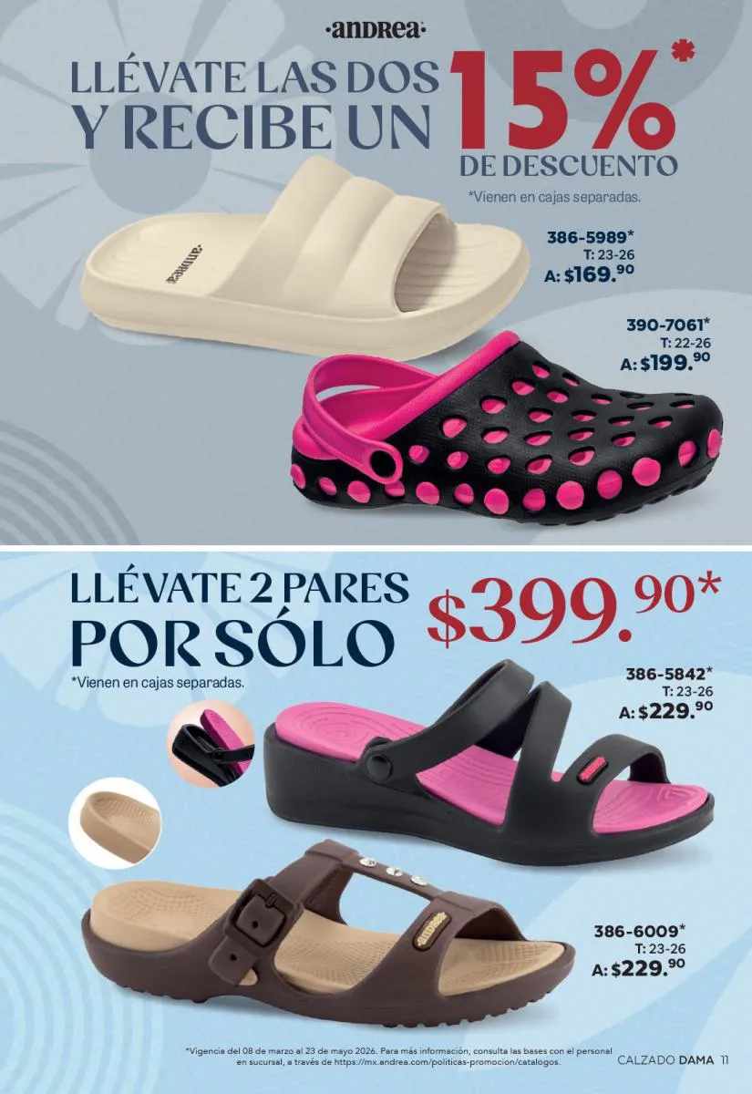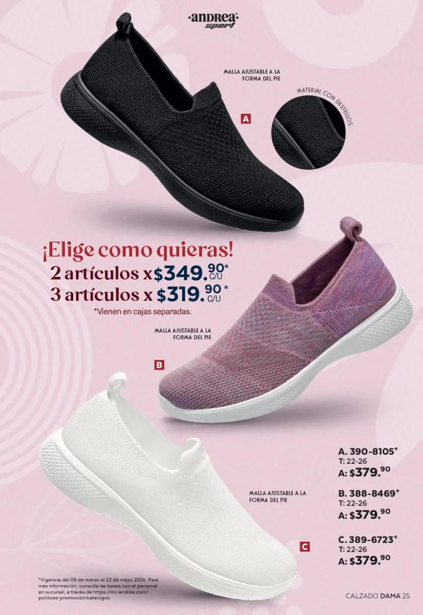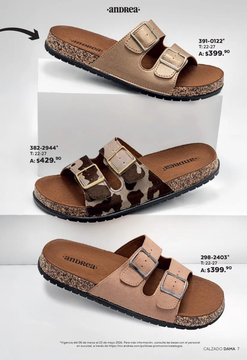 Cada modelo mantiene la calidad que caracteriza a Andrea: materiales resistentes, diseños ergonómicos y tallas que se adaptan a distintos tipos de pie. Además, los descuentos especiales hacen que sea el momento perfecto para adquirir más de un par.