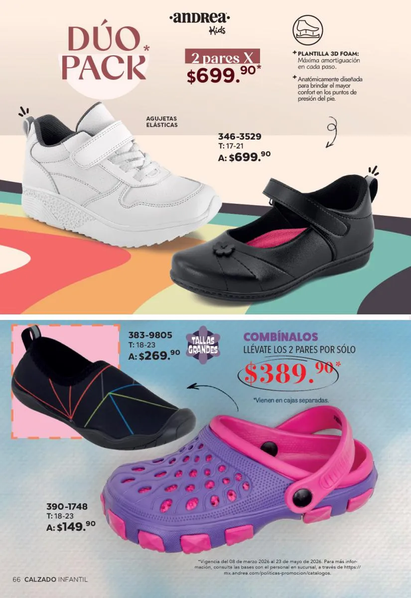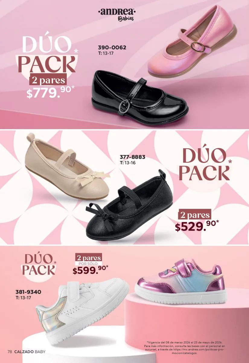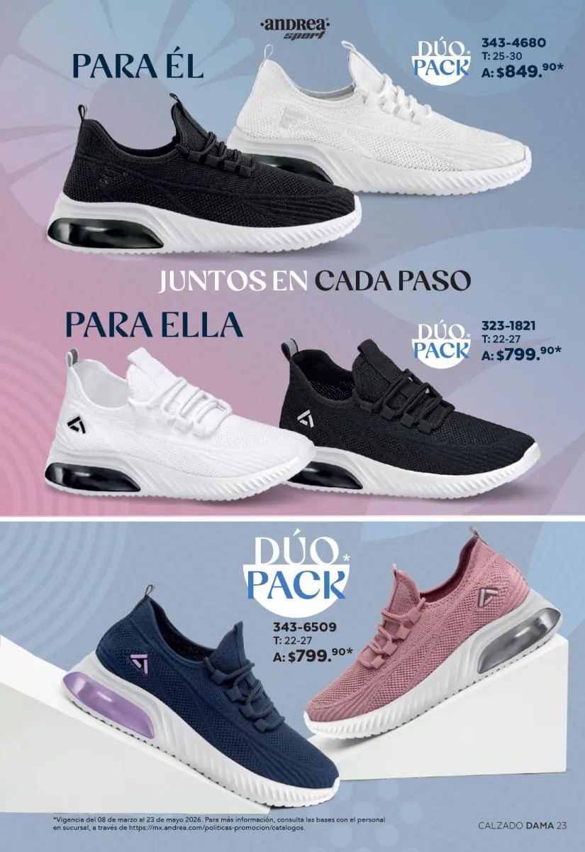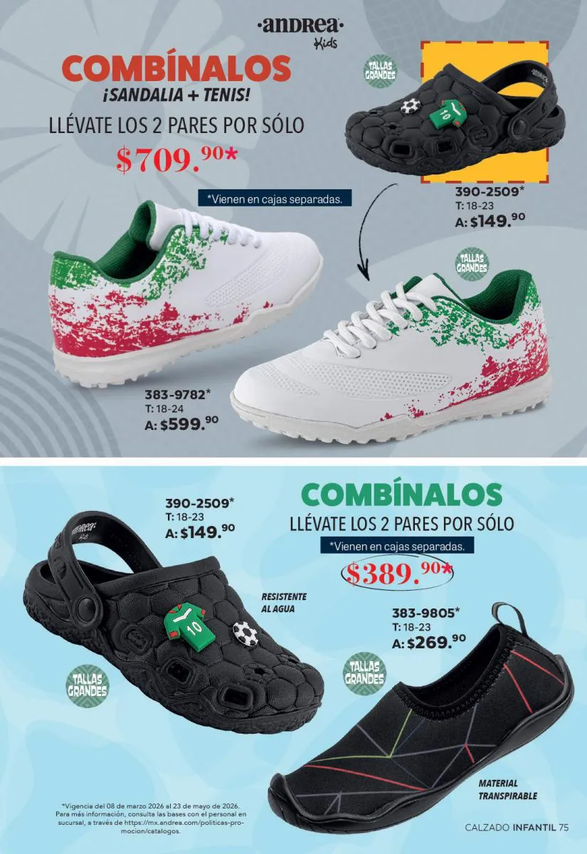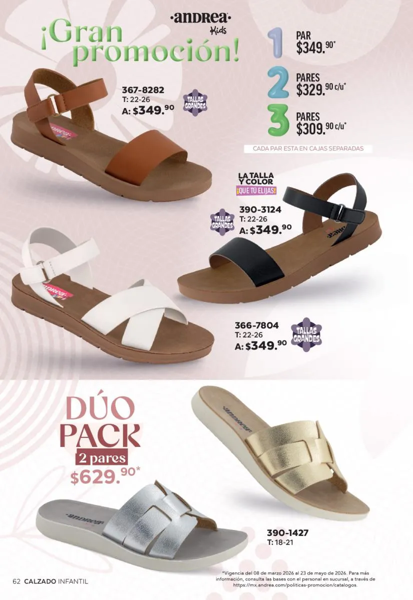Cada modelo mantiene la calidad que caracteriza a Andrea: materiales resistentes, diseños ergonómicos y tallas que se adaptan a distintos tipos de pie. Además, los descuentos especiales hacen que sea el momento perfecto para adquirir más de un par.