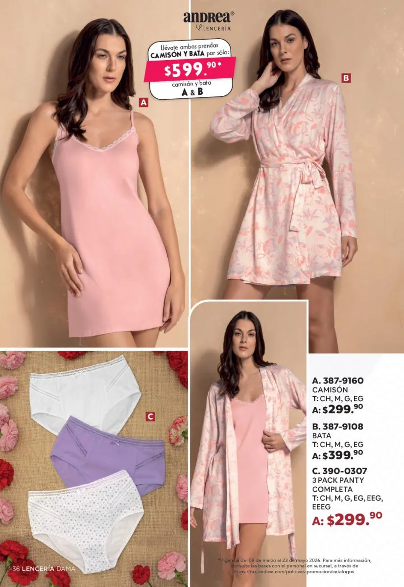 El Catálogo Andrea Combos de Primavera 2026 no solo incluye calzado; también presenta una amplia selección de ropa para dama, que va desde atuendos casuales hasta looks más elegantes.