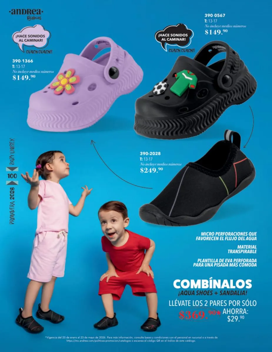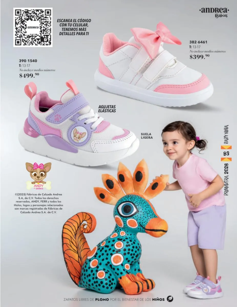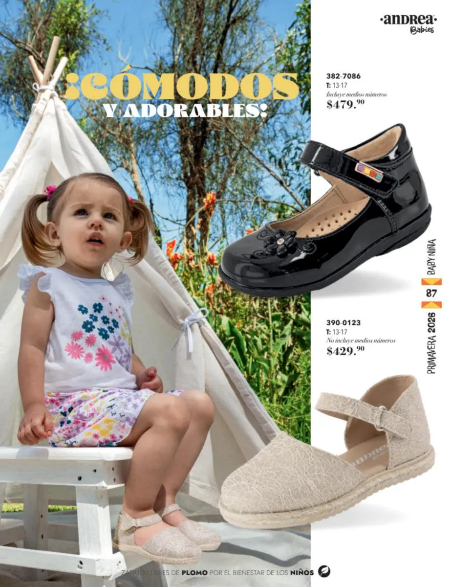 Recuerda que todos nuestros productos en este catálogo Andrea Infantil Baby Primavera 2026 son libres de plomo, de materiales súper flexibles para mayor flexibilidad y con suelas ligeras para que nunca se cansen de jugar y reír.