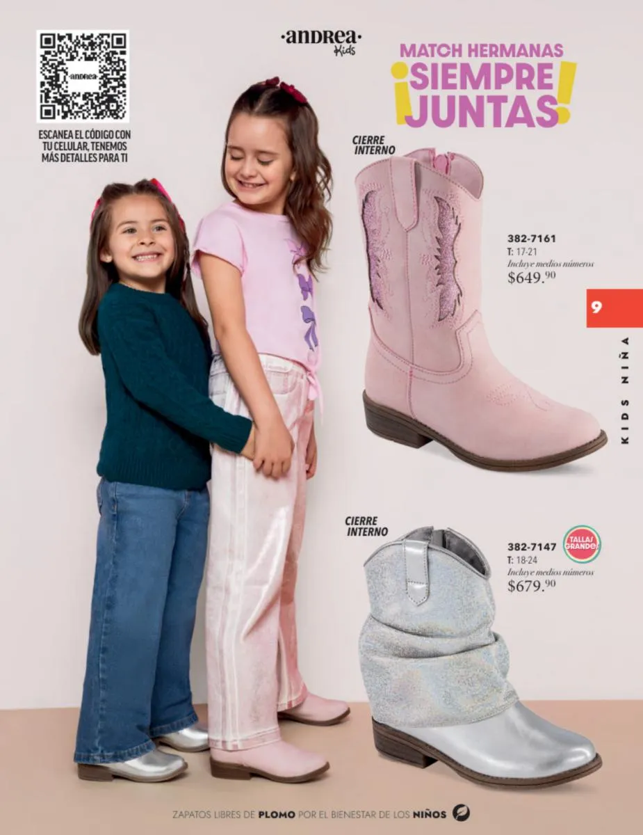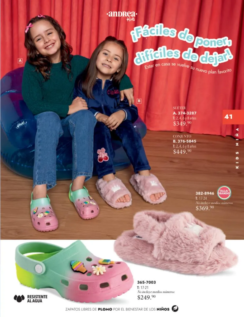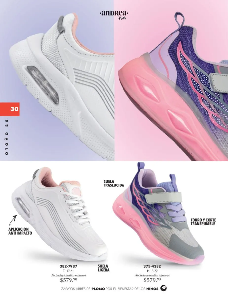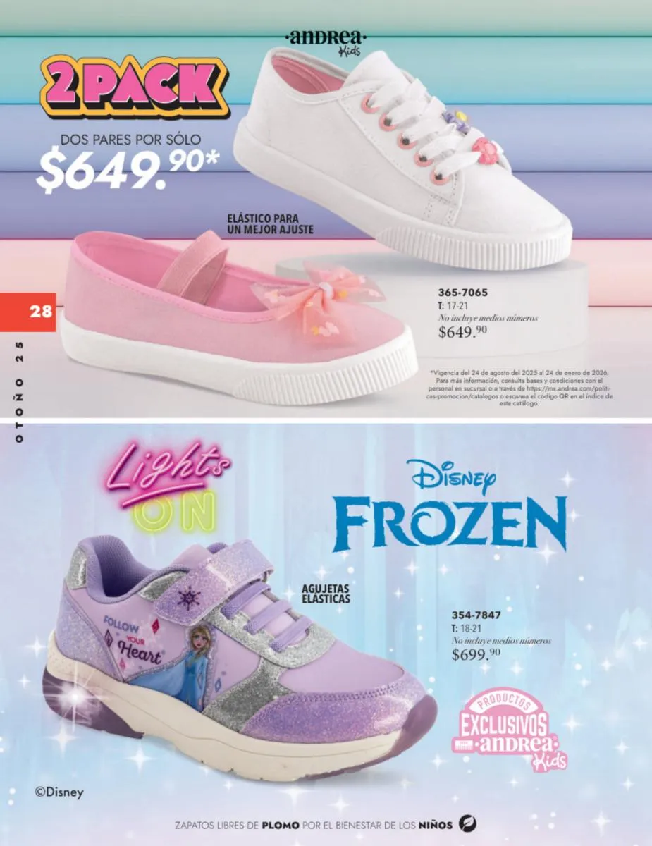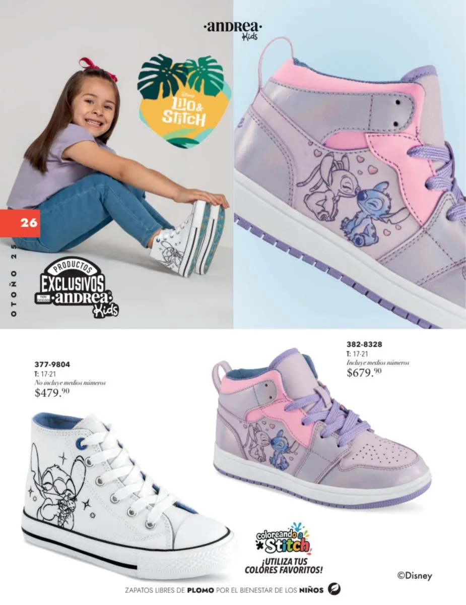 El calzado deportivo para los niños no podía dejar de tener su excelente presencia en esta catálogo Andrea Infantil otoño 2025 México. Modelos muy trendy, resistentes y con diseños –y hasta luces- que van con todo tipo de atuendos.