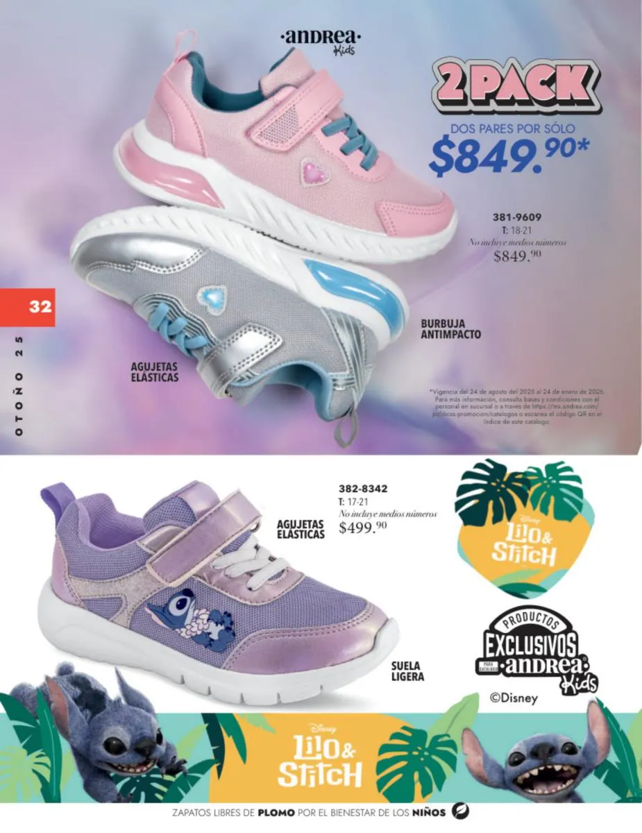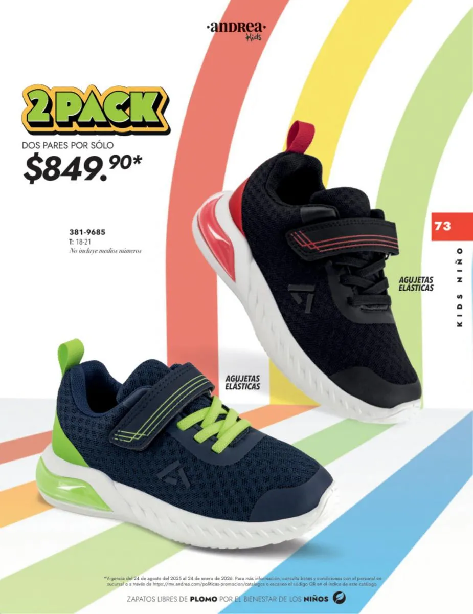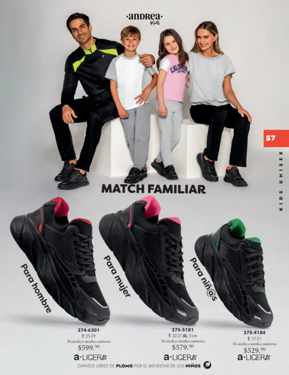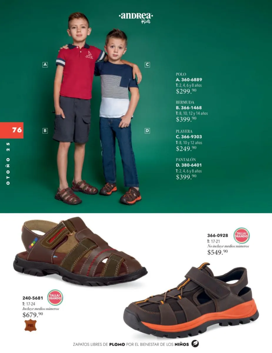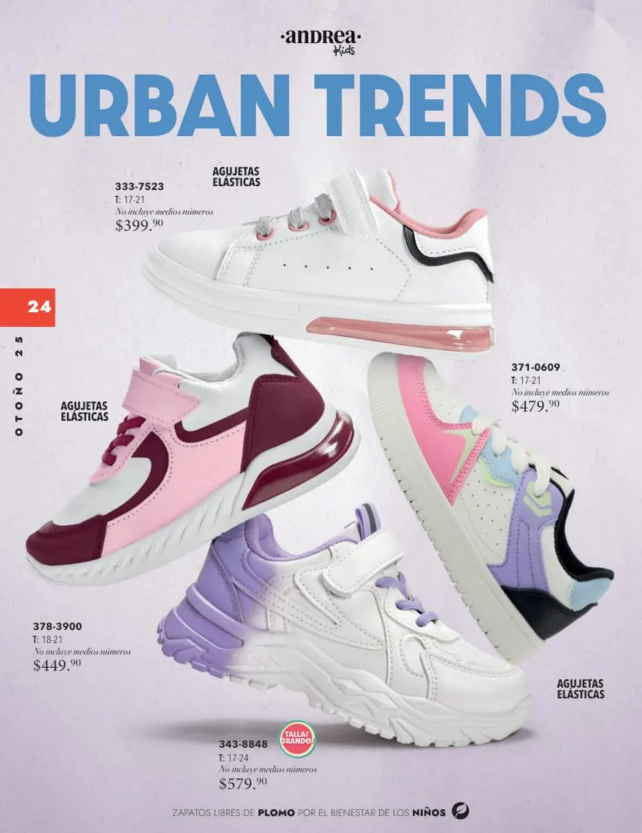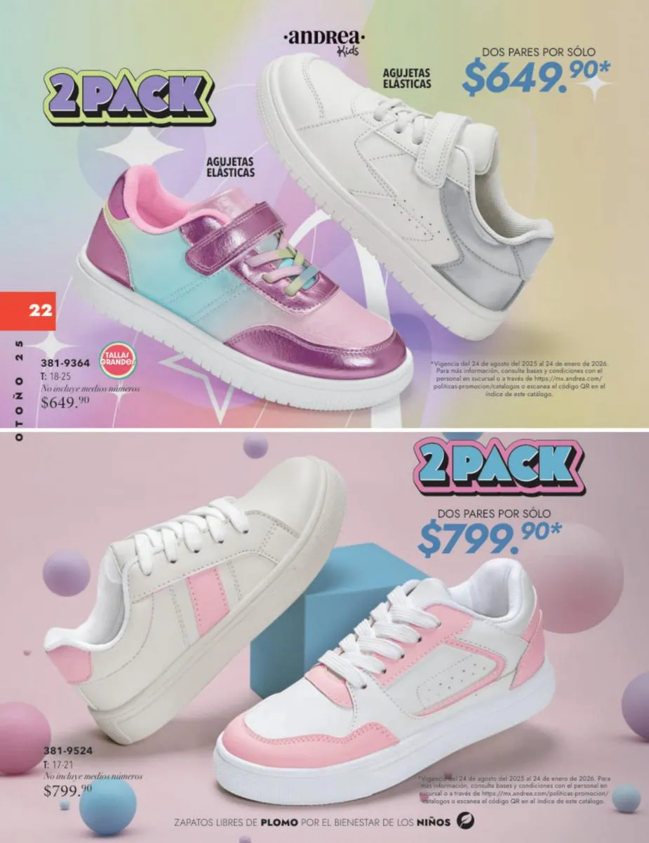 El calzado deportivo para los niños no podía dejar de tener su excelente presencia en esta catálogo Andrea Infantil otoño 2025 México. Modelos muy trendy, resistentes y con diseños –y hasta luces- que van con todo tipo de atuendos.