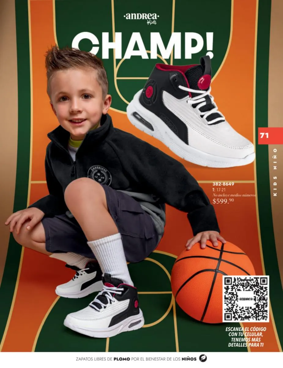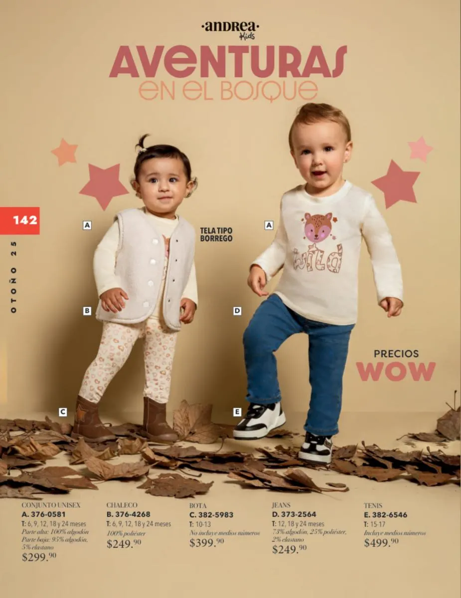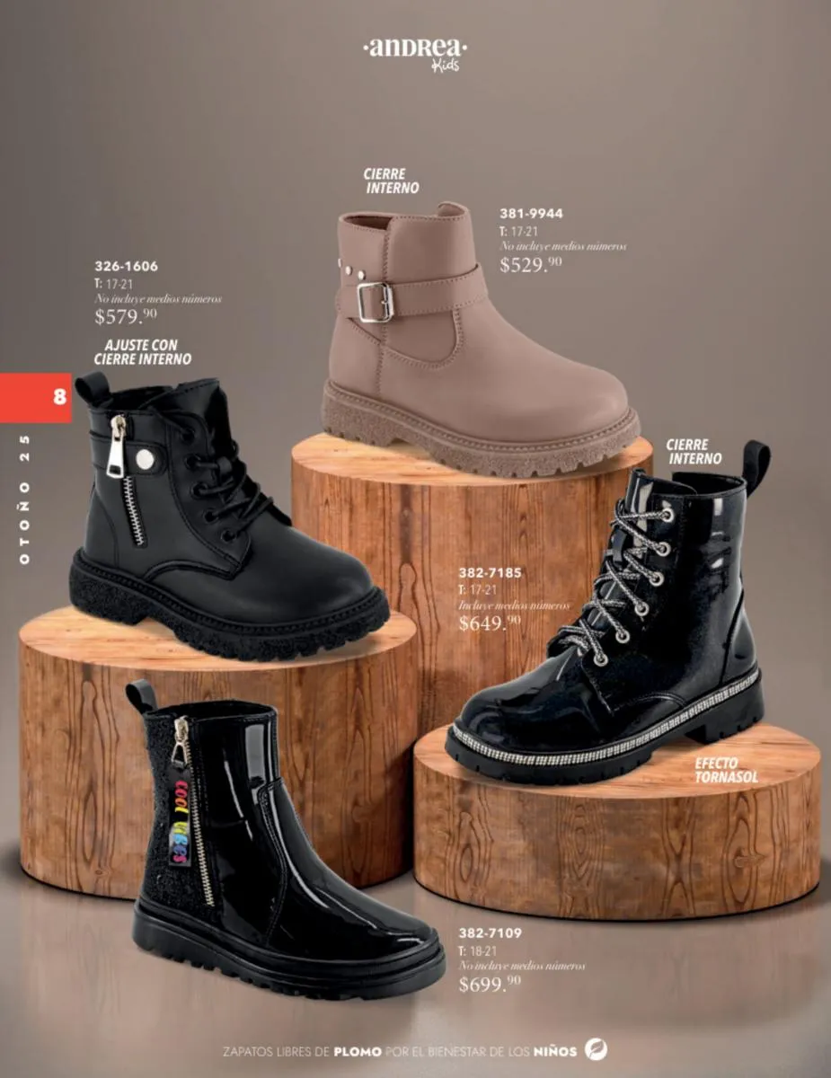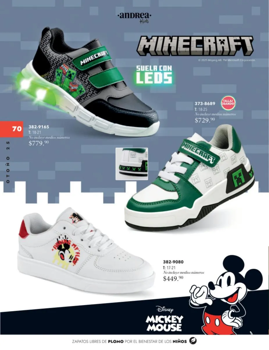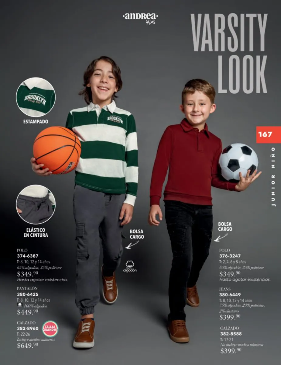 El calzado deportivo para los niños no podía dejar de tener su excelente presencia en esta catálogo Andrea Infantil otoño 2025 México. Modelos muy trendy, resistentes y con diseños –y hasta luces- que van con todo tipo de atuendos.