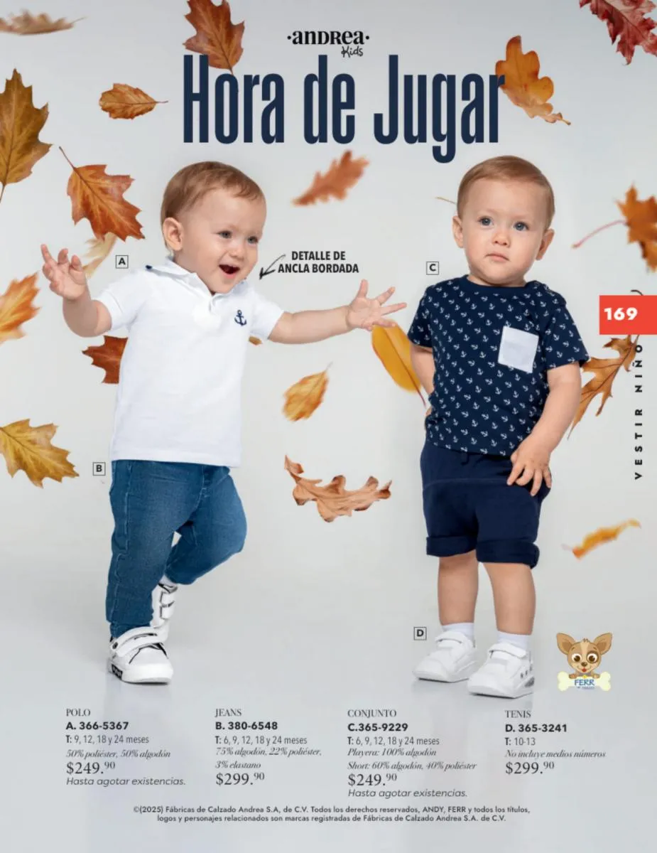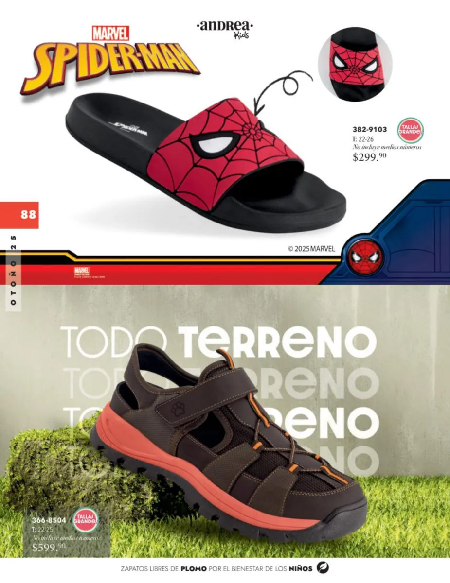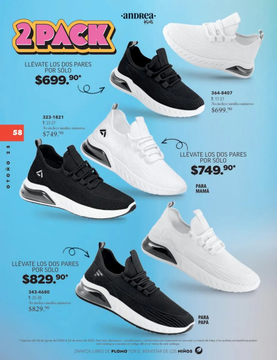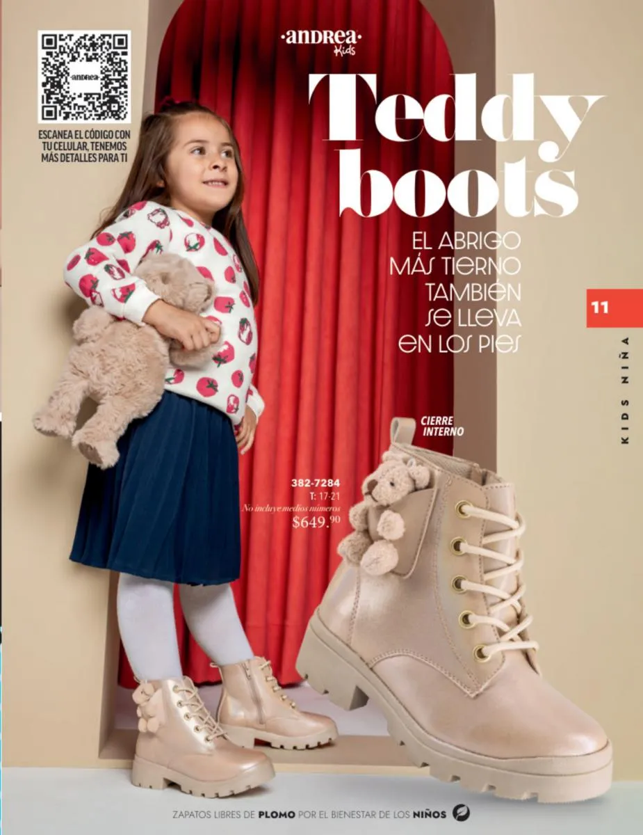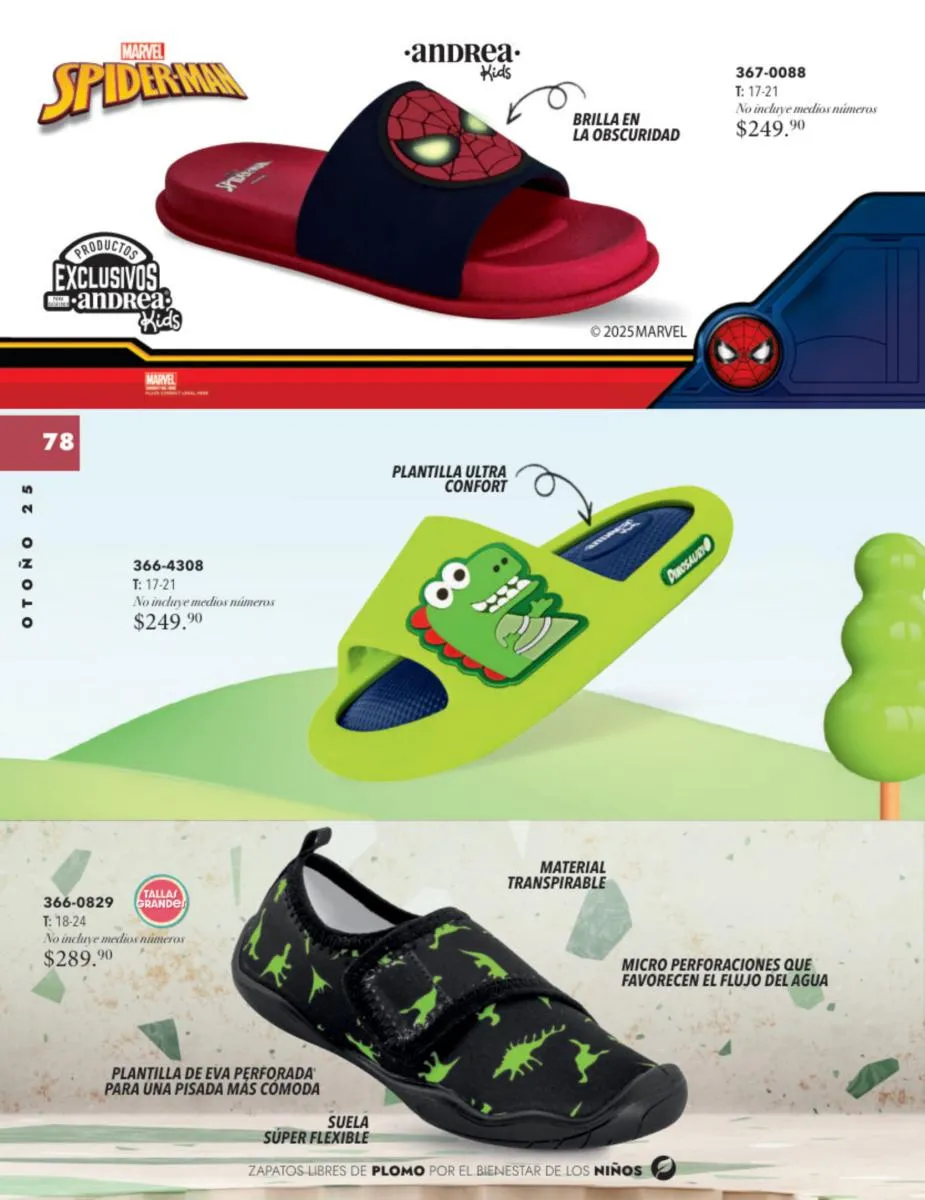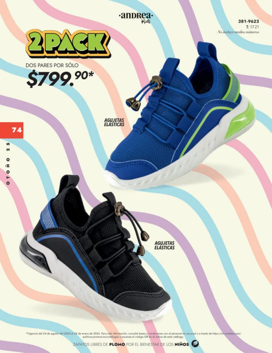 El calzado deportivo para los niños no podía dejar de tener su excelente presencia en esta catálogo Andrea Infantil otoño 2025 México. Modelos muy trendy, resistentes y con diseños –y hasta luces- que van con todo tipo de atuendos.