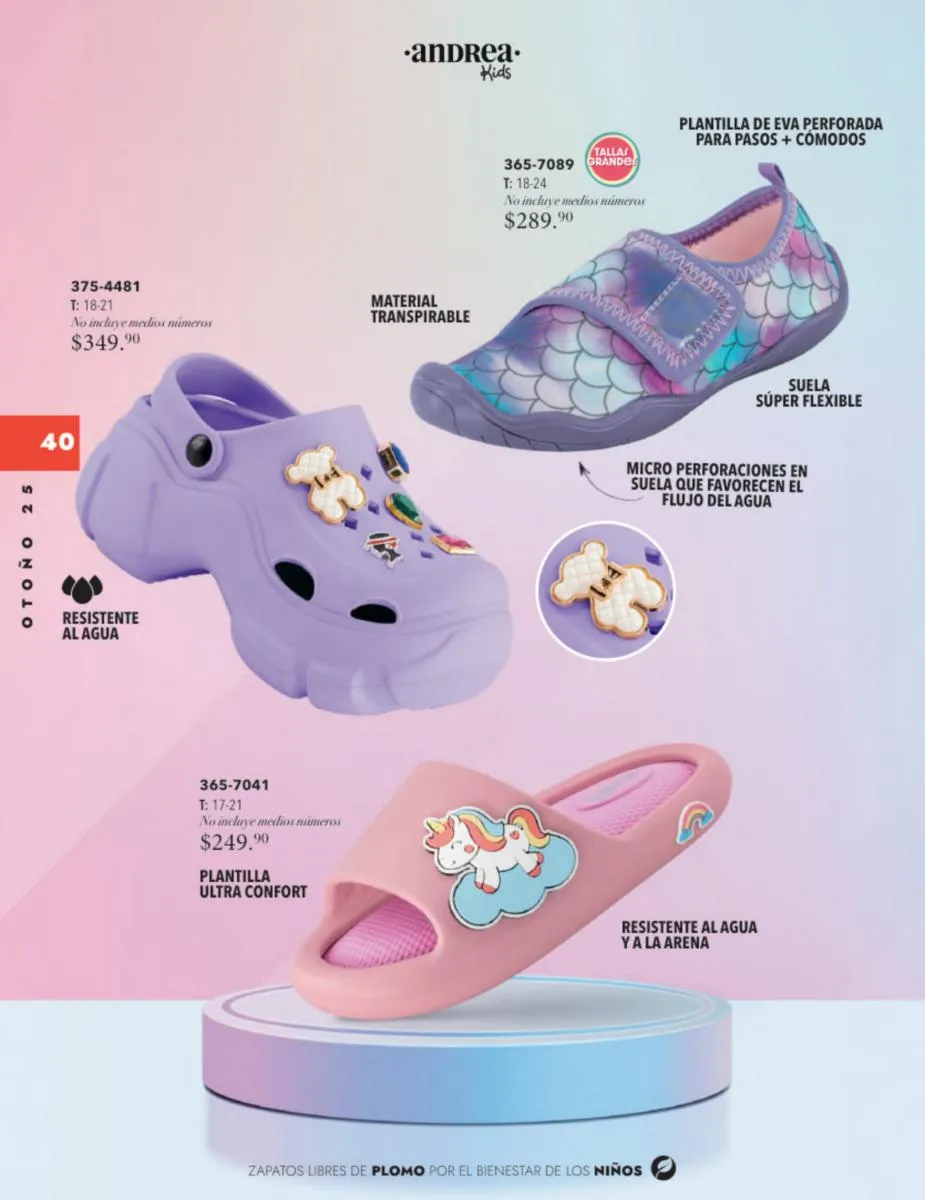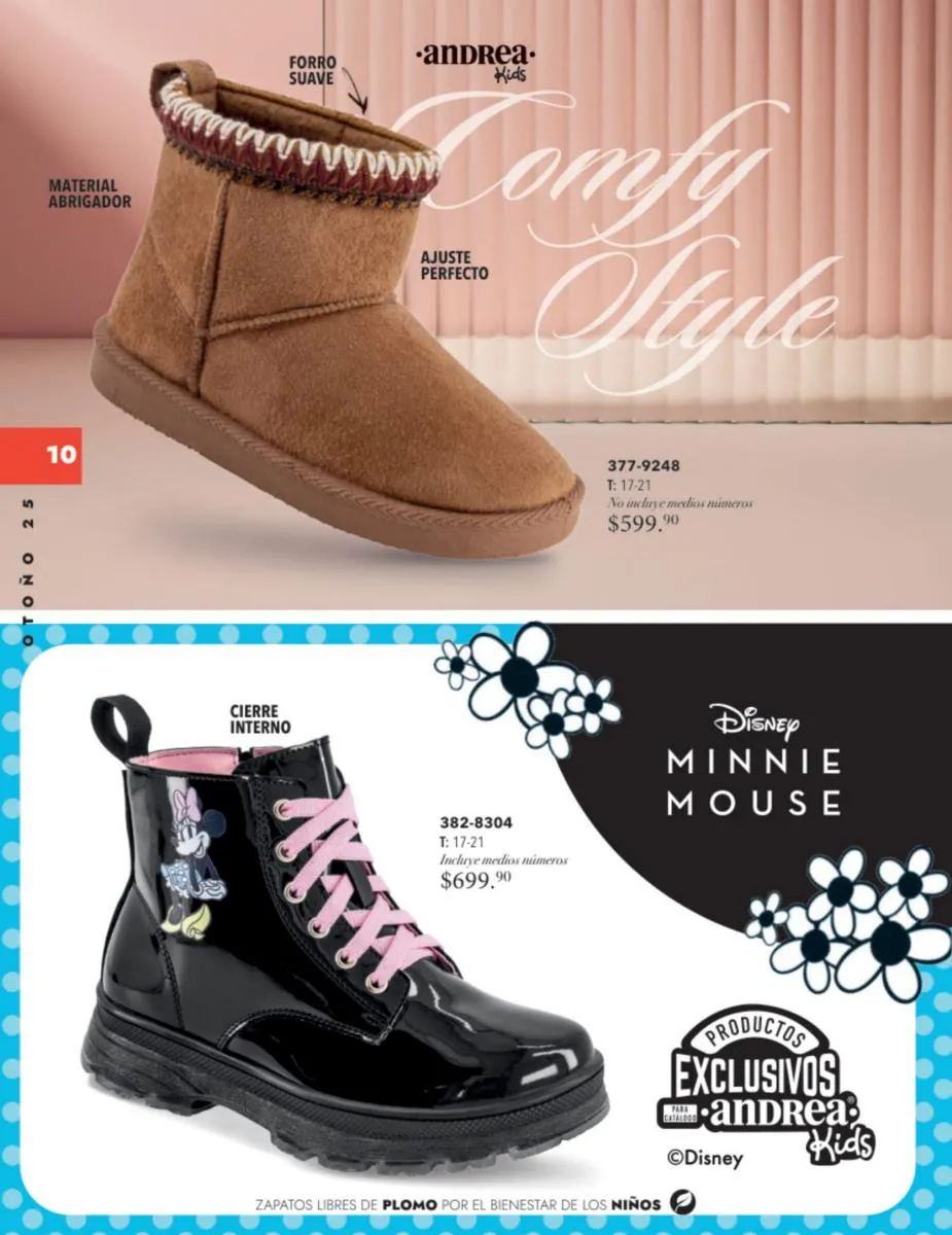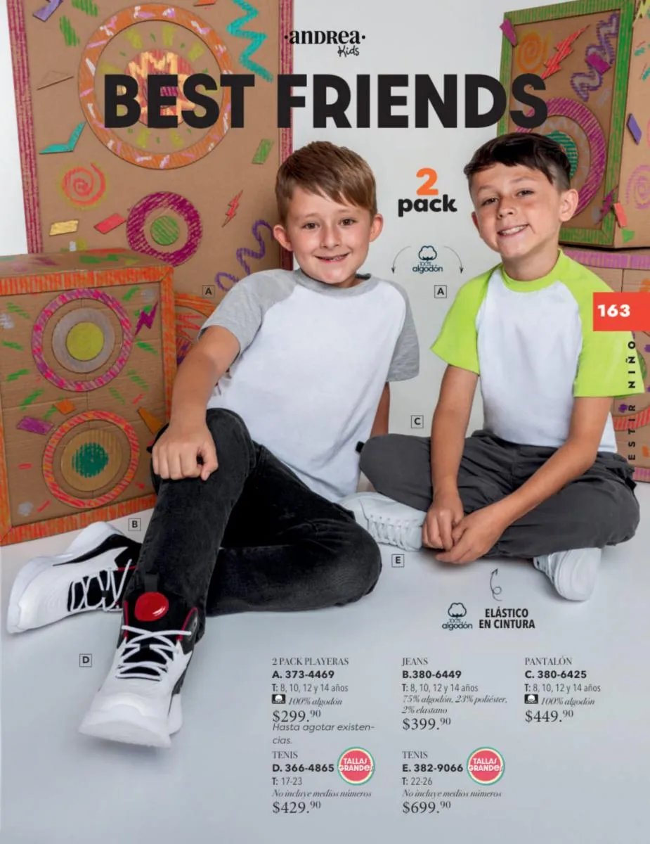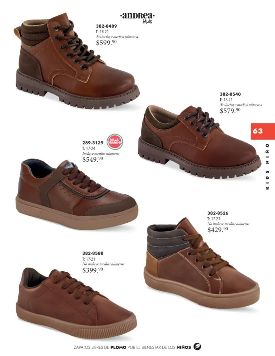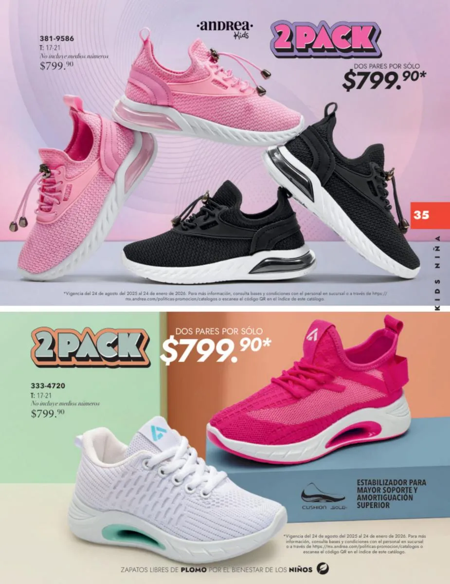 El calzado deportivo para los niños no podía dejar de tener su excelente presencia en esta catálogo Andrea Infantil otoño 2025 México. Modelos muy trendy, resistentes y con diseños –y hasta luces- que van con todo tipo de atuendos.