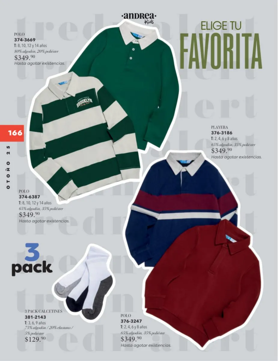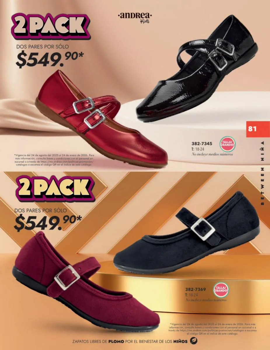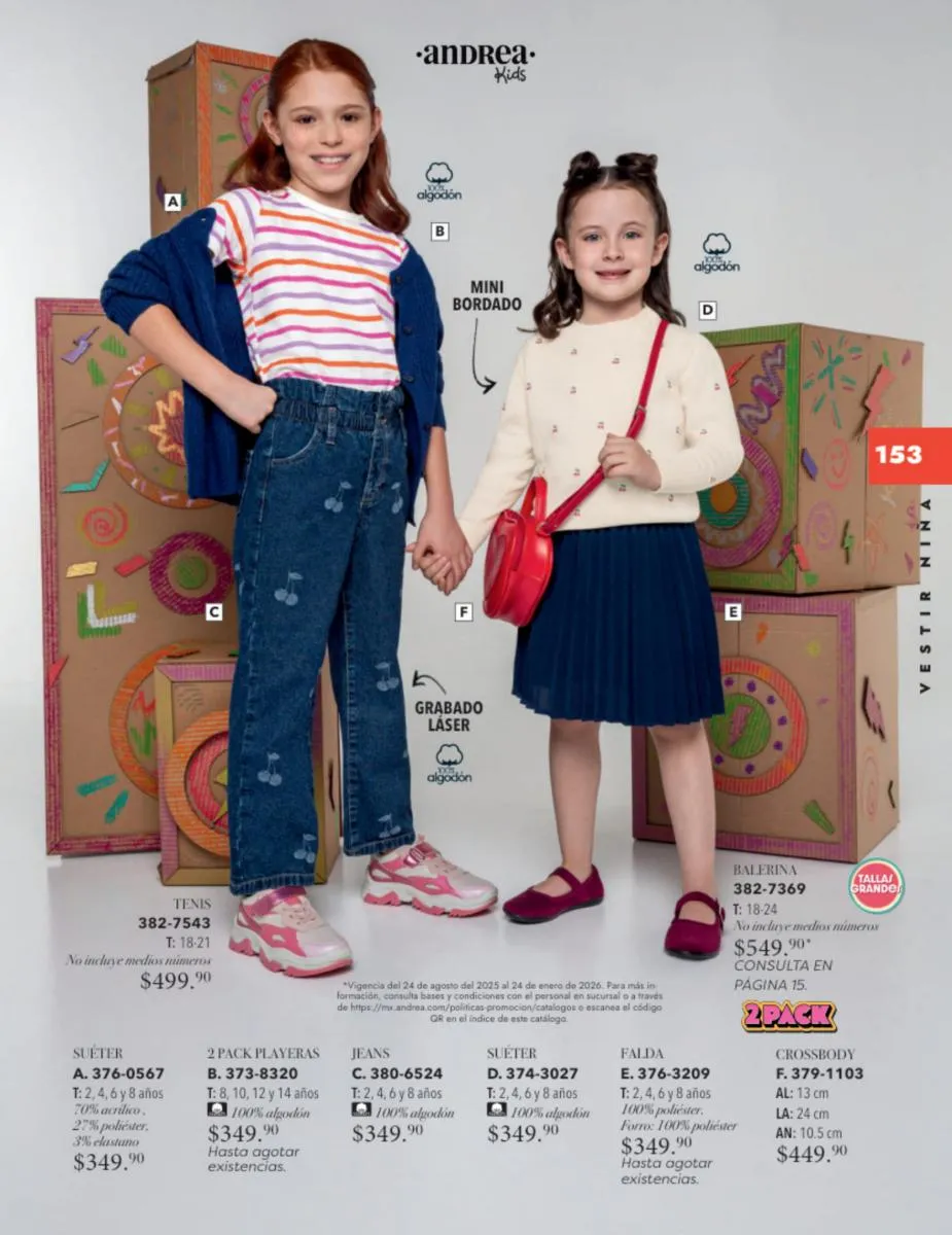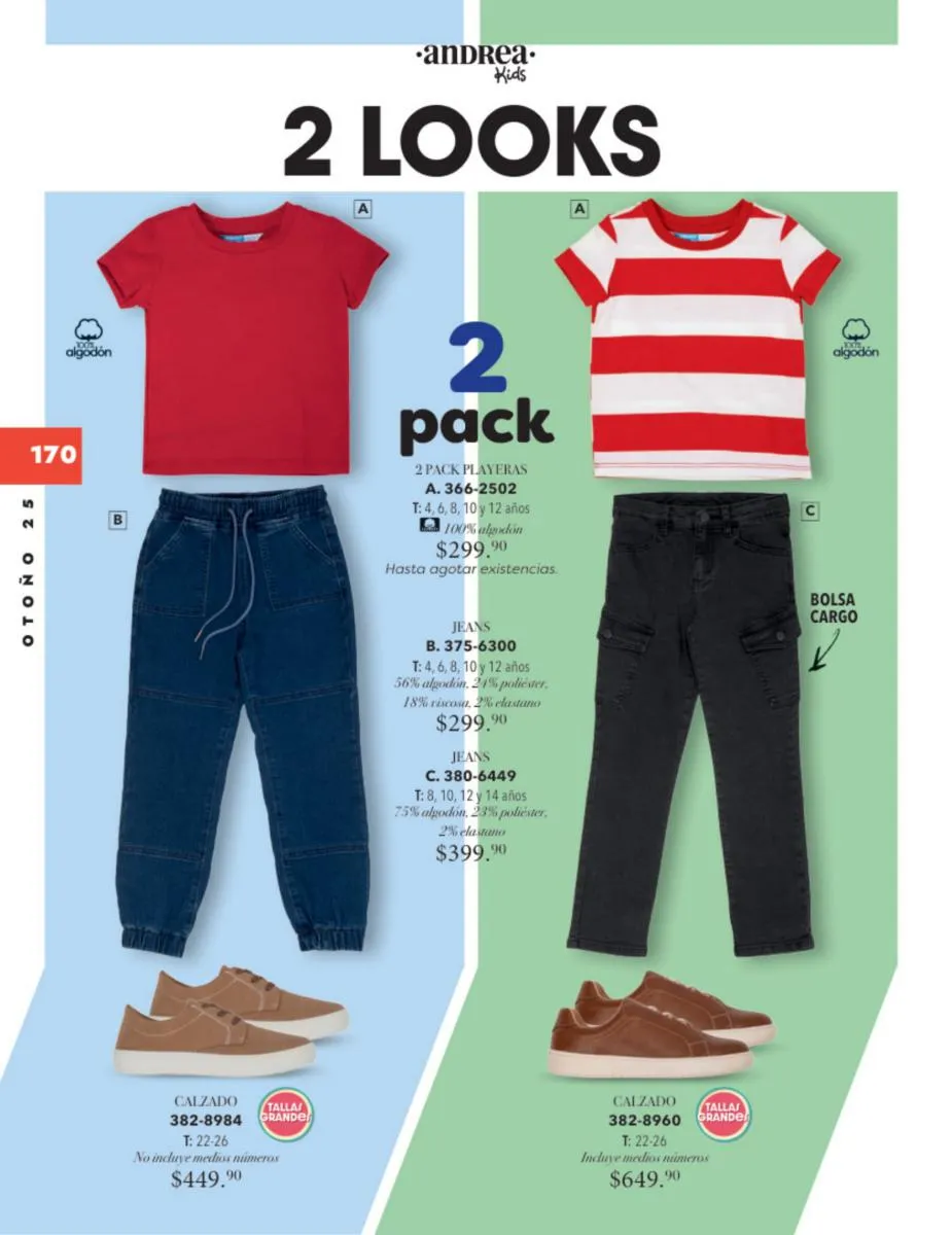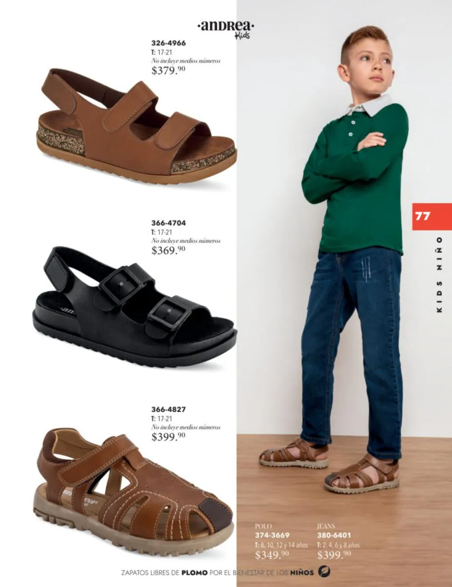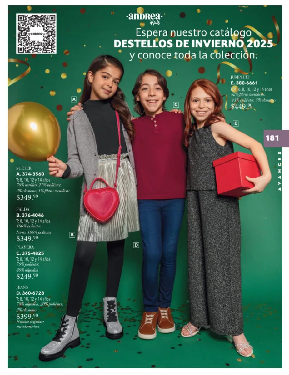 El calzado deportivo para los niños no podía dejar de tener su excelente presencia en esta catálogo Andrea Infantil otoño 2025 México. Modelos muy trendy, resistentes y con diseños –y hasta luces- que van con todo tipo de atuendos.