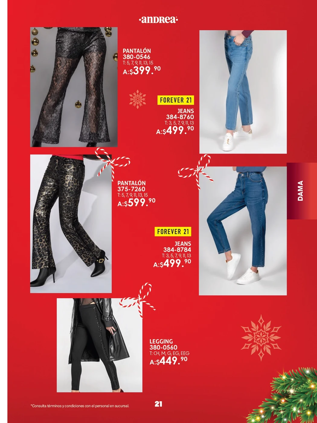 Los jeans acampanados son un must que cada vez se hace más fuerte. Obtén este modelo y muchos otros en este catálogo Andrea Regala esta Navidad 2025. Haz que combinen con todas tus blusas y camisas para sentirte con confianza y estilo en salidas con amigas o en una cita.