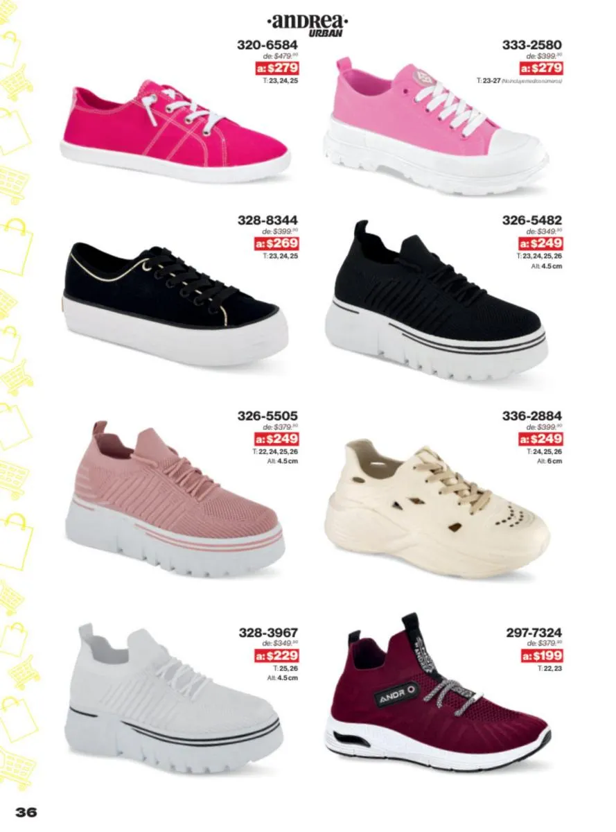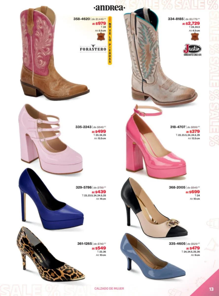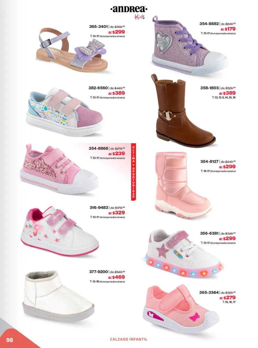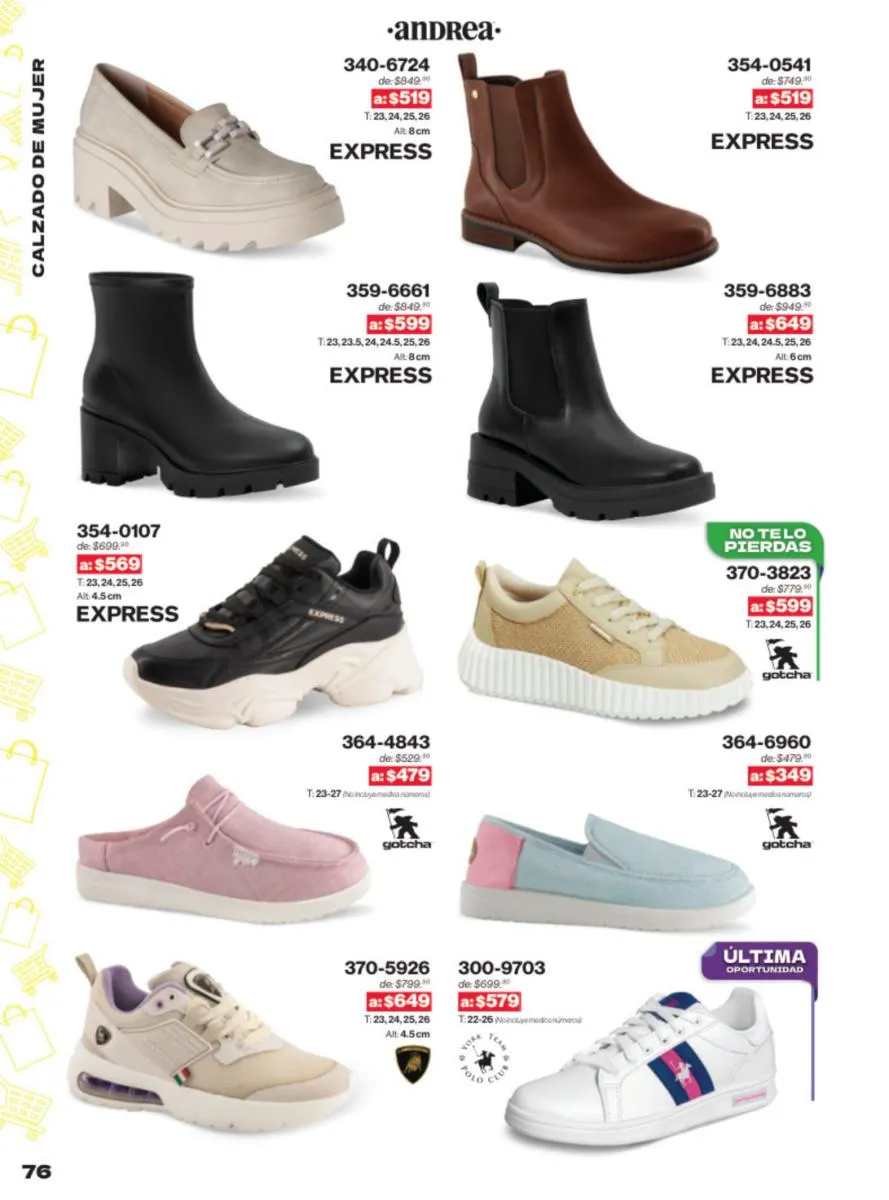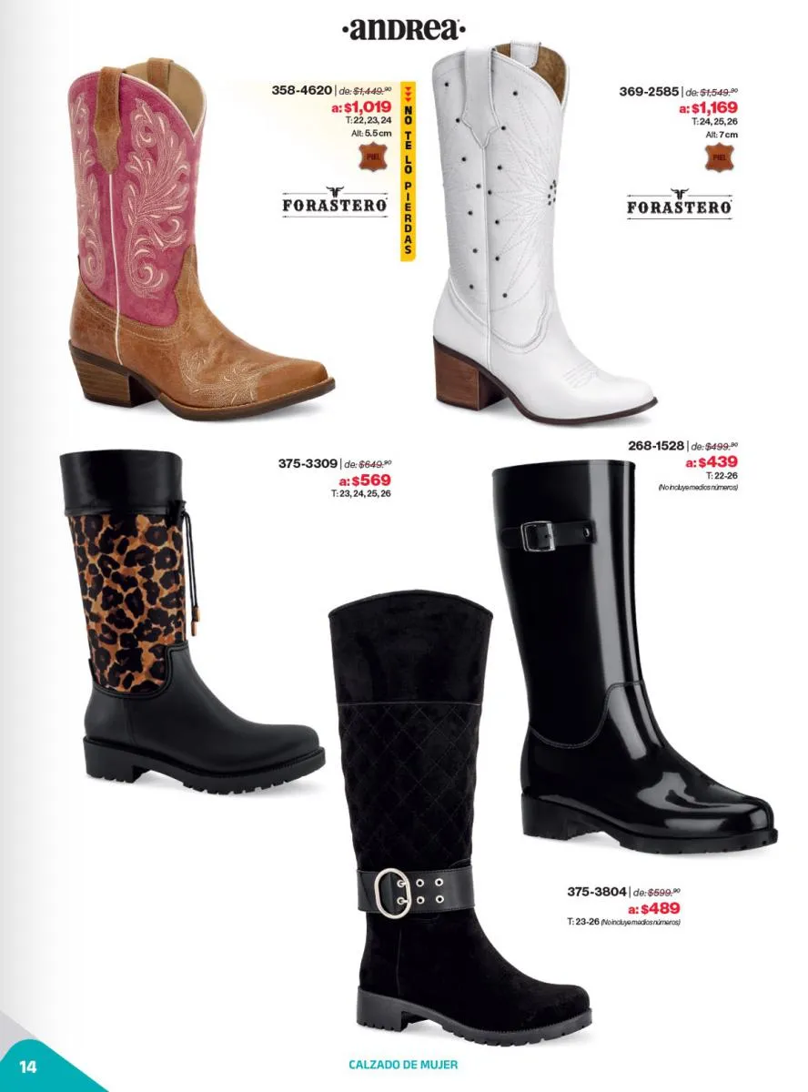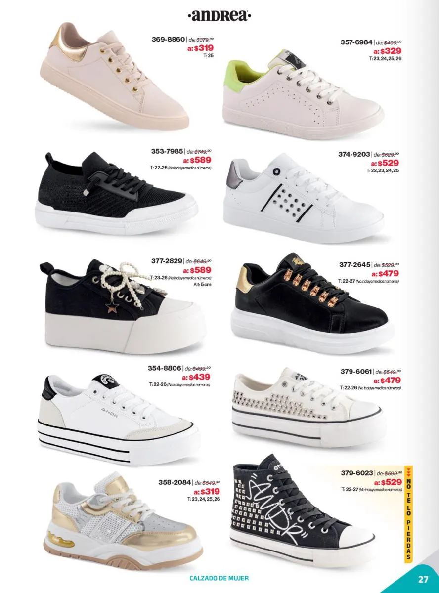Las sandalias son un elemento esencial en cualquier guardarropa, y Andrea lo sabe muy bien. Este catálogo presenta una selección de sandalias con tacón que combinan comodidad y estilo. Destacan las sandalias en tonos vibrantes como el fucsia y el verde limón, perfectas para darle un toque de color a tus outfits veraniegos. Con detalles de correas ajustables y tacones de diferentes alturas, estas sandalias aseguran un ajuste perfecto y un look sofisticado.