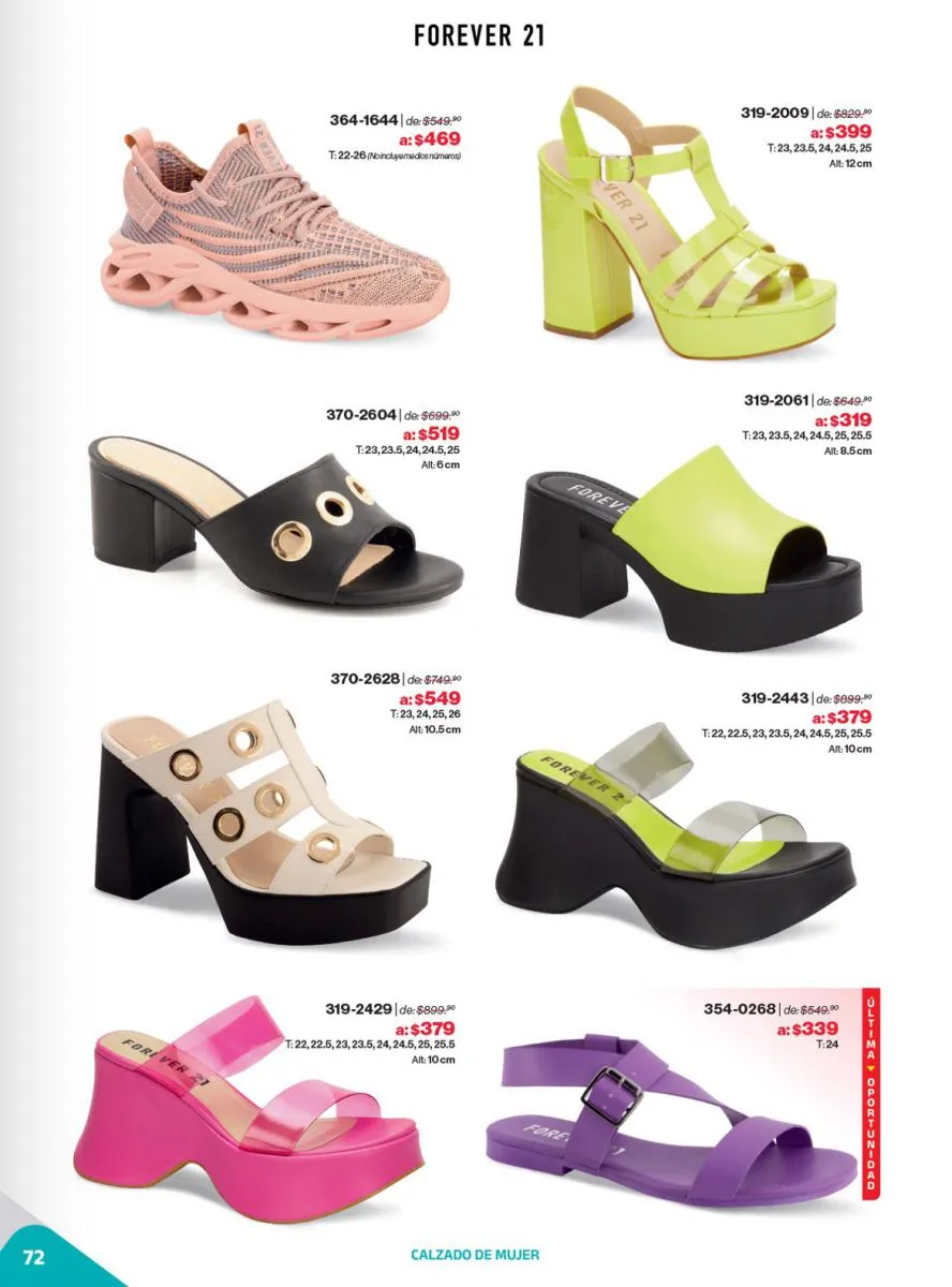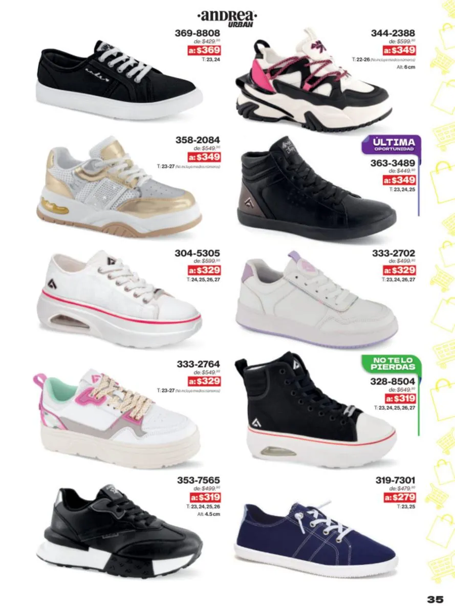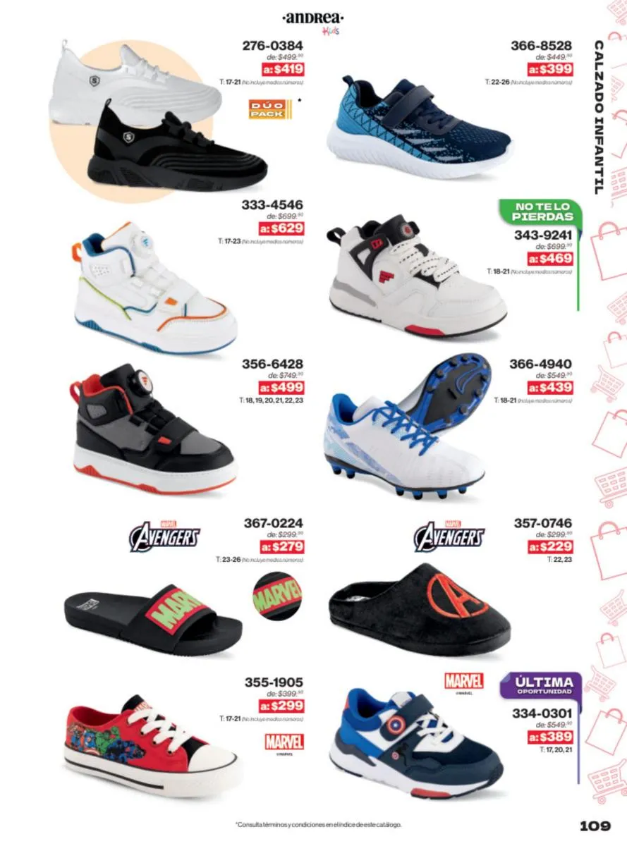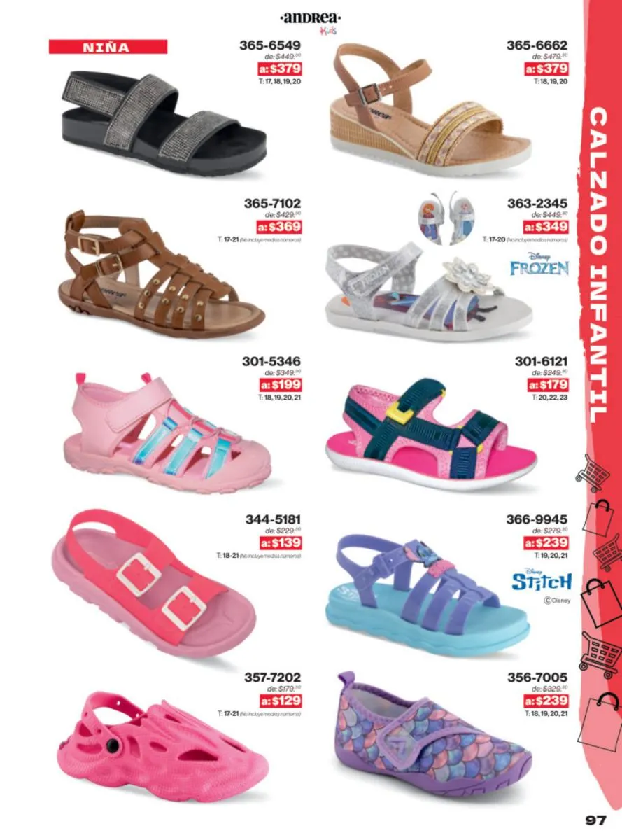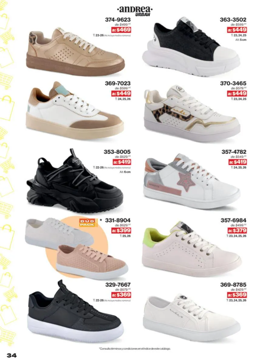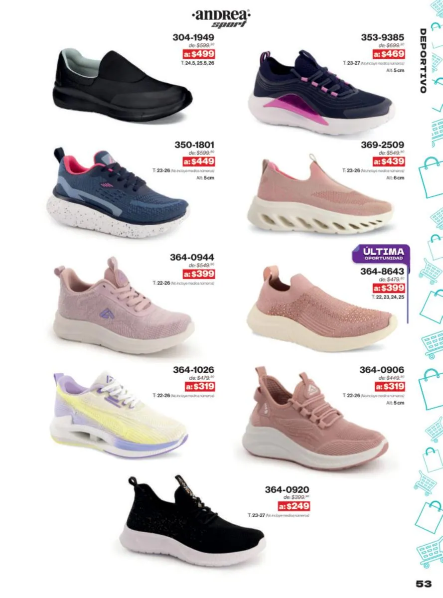 Las sandalias son un elemento esencial en cualquier guardarropa, y Andrea lo sabe muy bien. Este catálogo presenta una selección de sandalias con tacón que combinan comodidad y estilo. Destacan las sandalias en tonos vibrantes como el fucsia y el verde limón, perfectas para darle un toque de color a tus outfits veraniegos. Con detalles de correas ajustables y tacones de diferentes alturas, estas sandalias aseguran un ajuste perfecto y un look sofisticado.