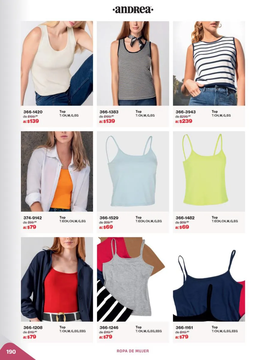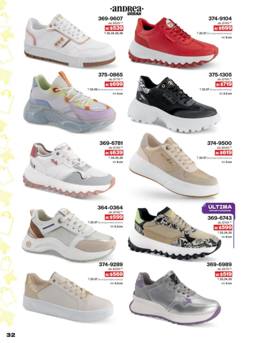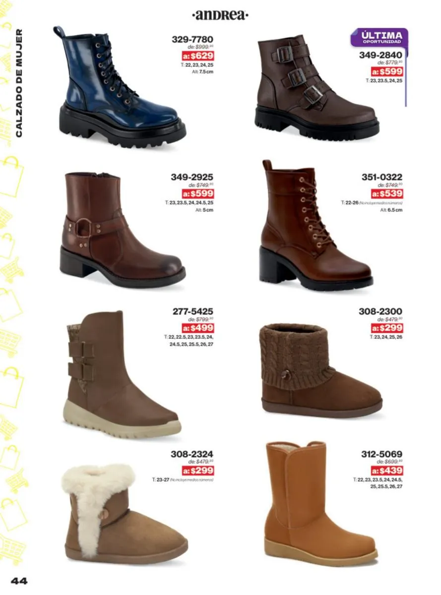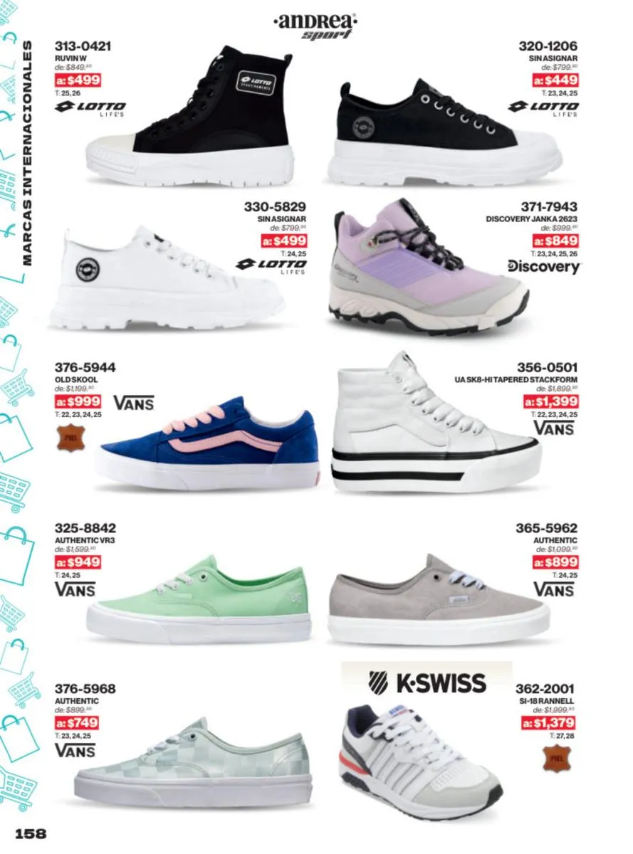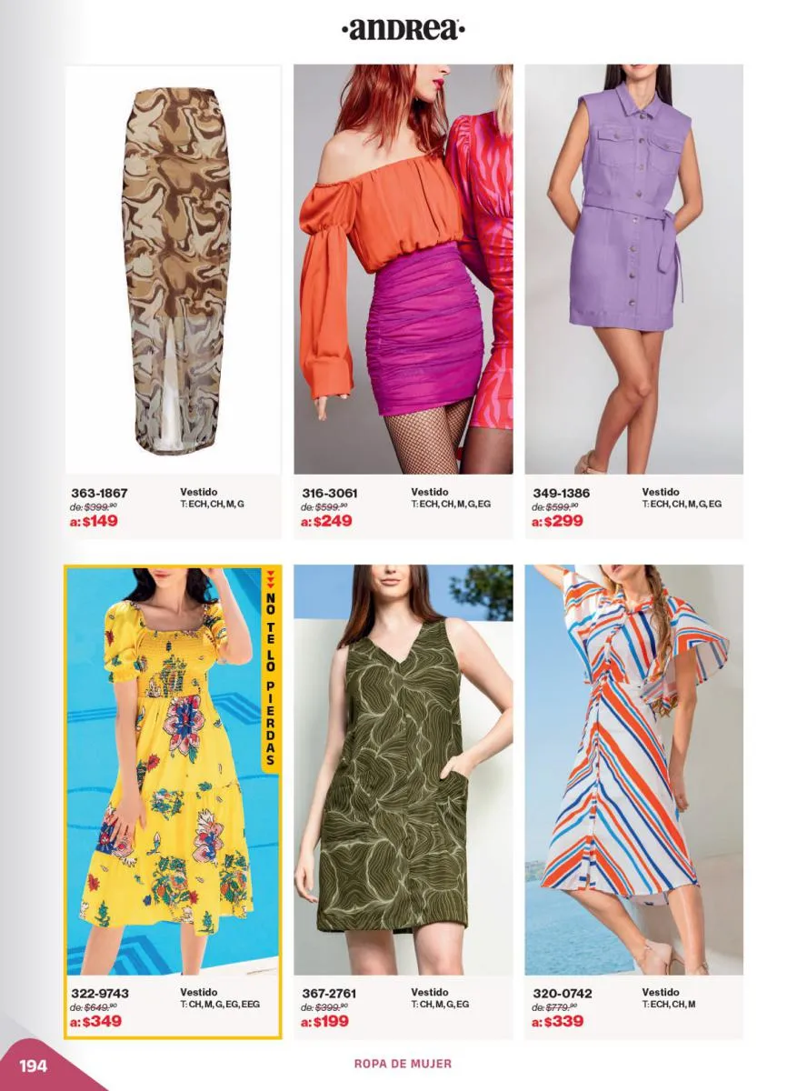 Las sandalias son un elemento esencial en cualquier guardarropa, y Andrea lo sabe muy bien. Este catálogo presenta una selección de sandalias con tacón que combinan comodidad y estilo. Destacan las sandalias en tonos vibrantes como el fucsia y el verde limón, perfectas para darle un toque de color a tus outfits veraniegos. Con detalles de correas ajustables y tacones de diferentes alturas, estas sandalias aseguran un ajuste perfecto y un look sofisticado.